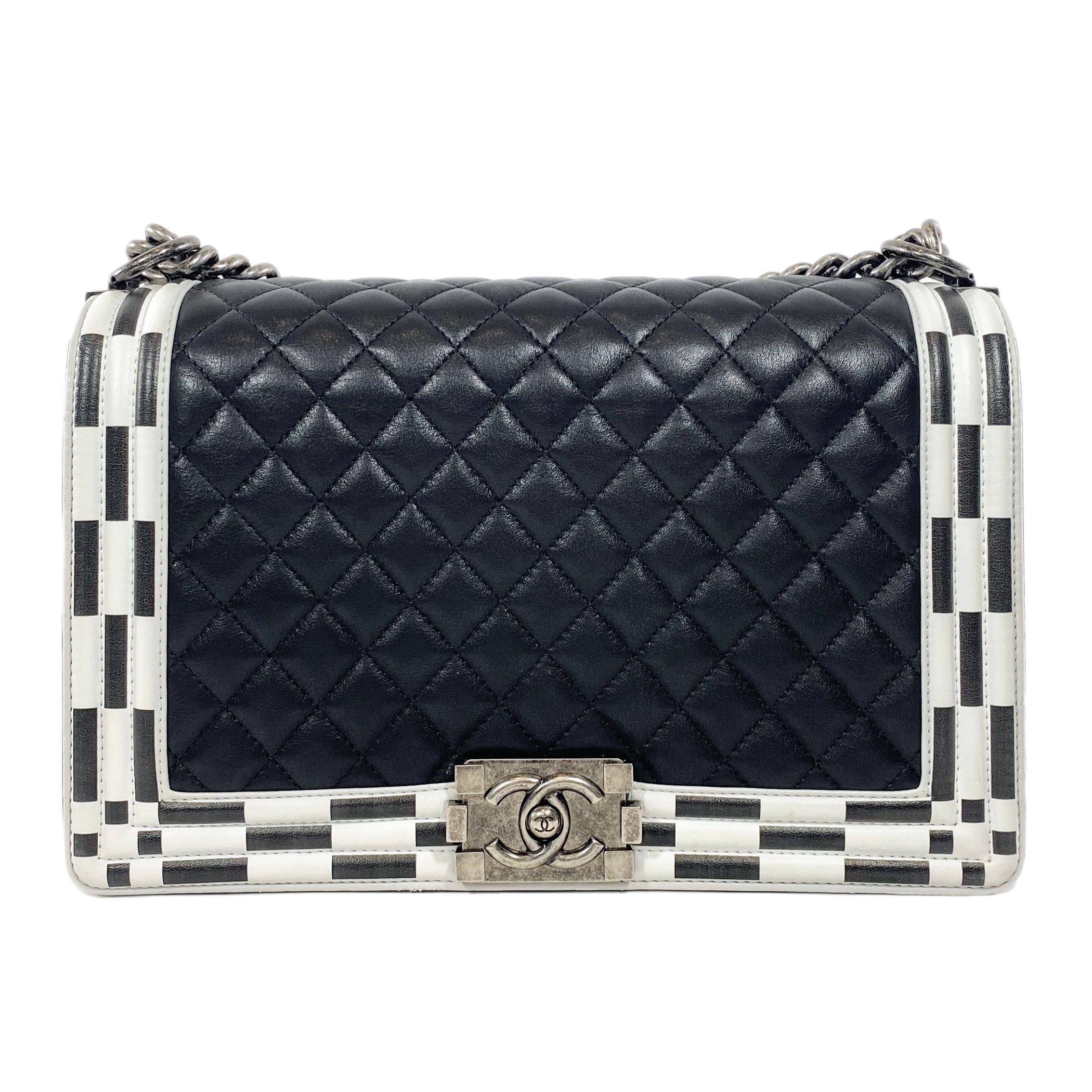Chanel Black and White Quilted Calfskin New Medium Checkerboard Boy Flap Bag