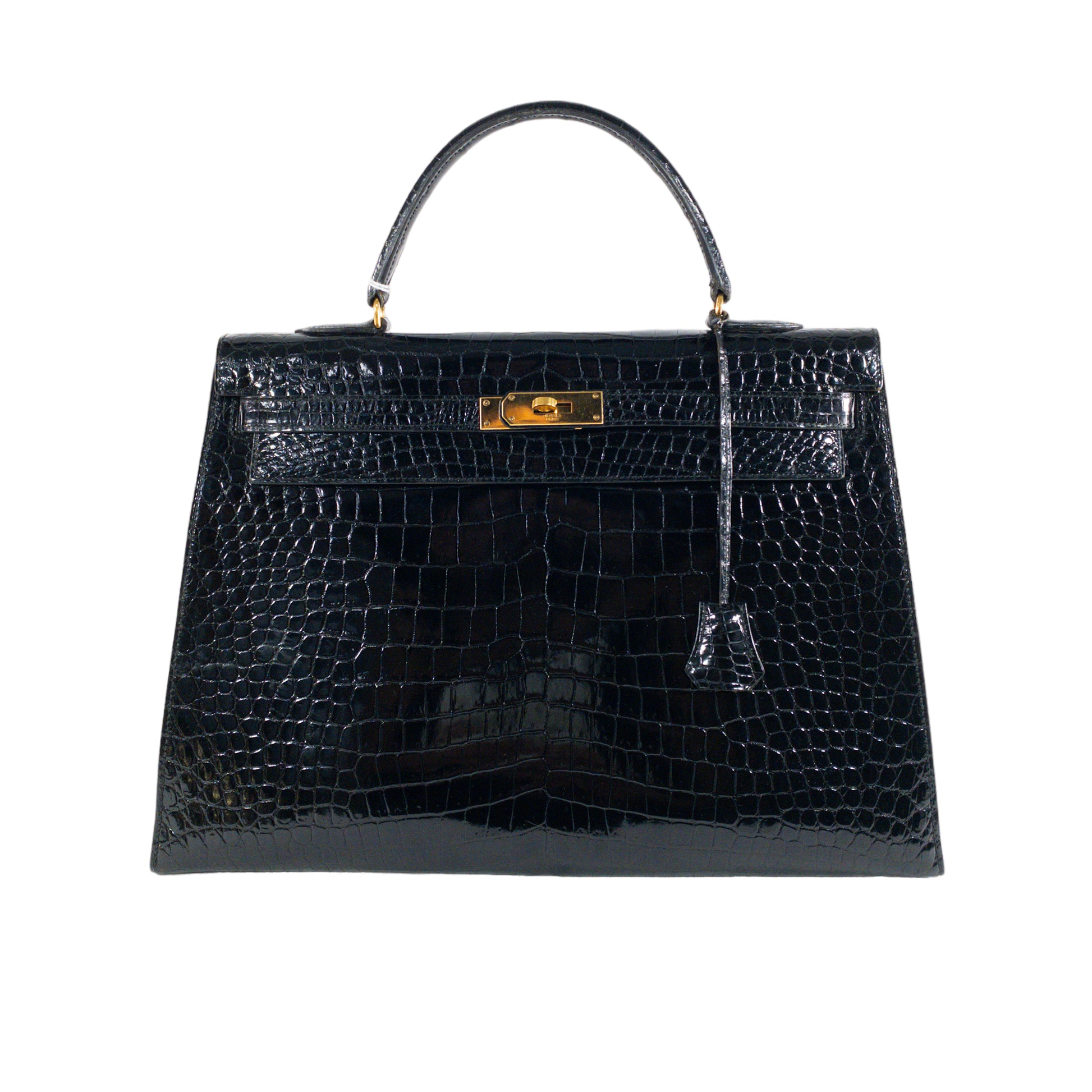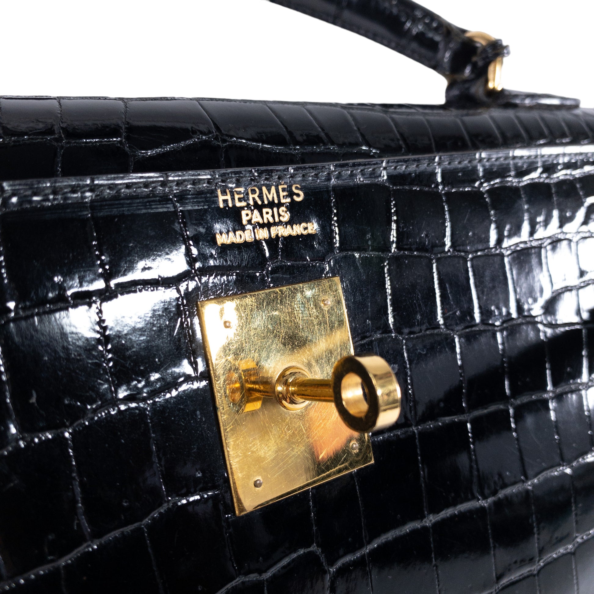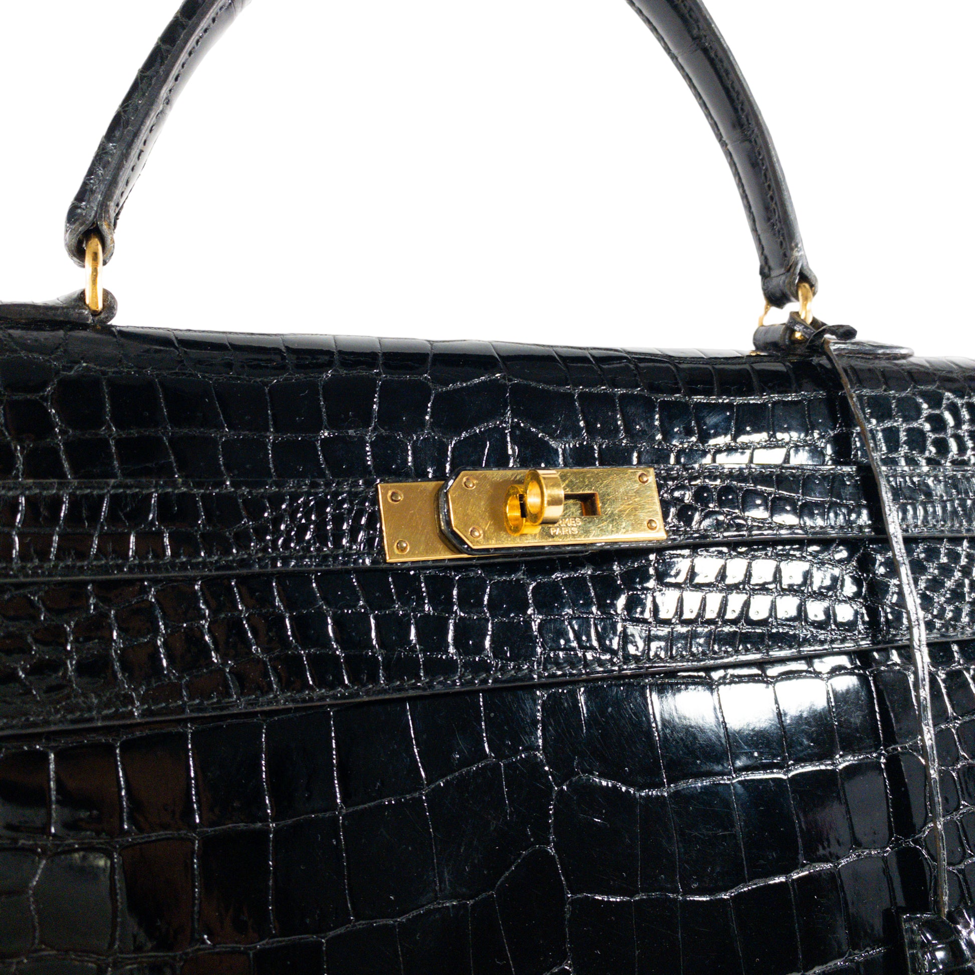 Hermes Vintage Crocodile Black Kelly 35cm GHW