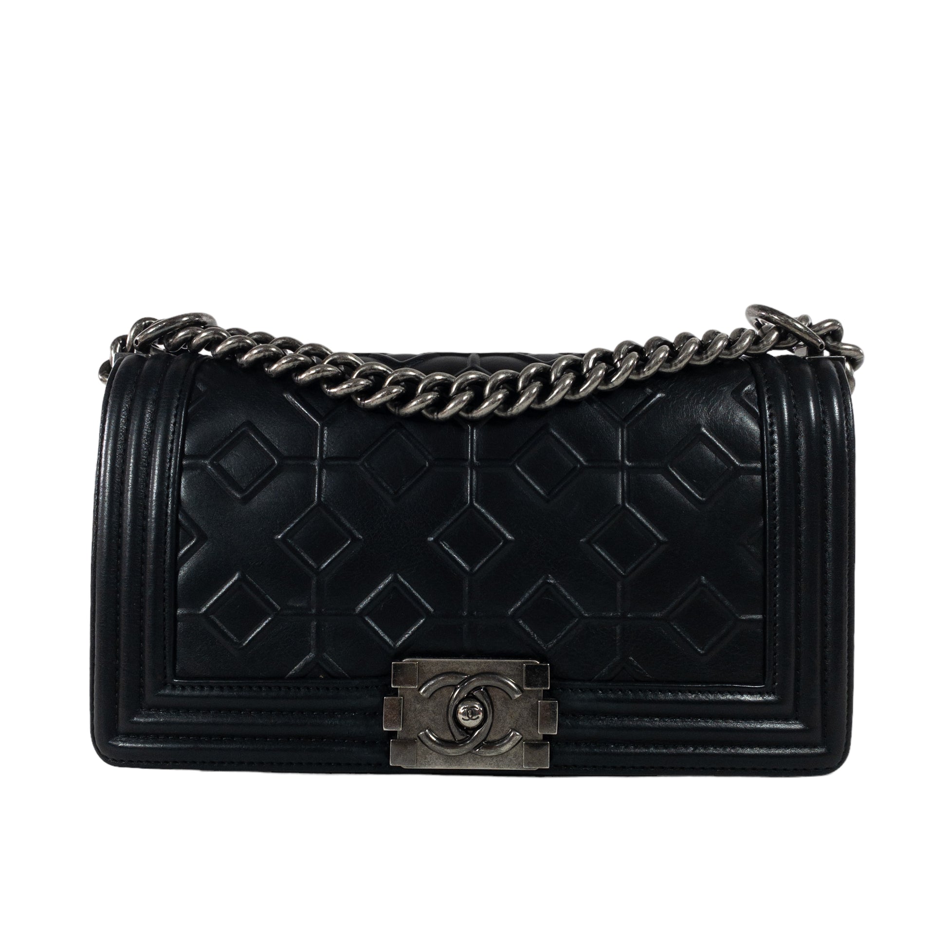 Chanel Black Arabesque Embossed Medium Boy Bag RHW