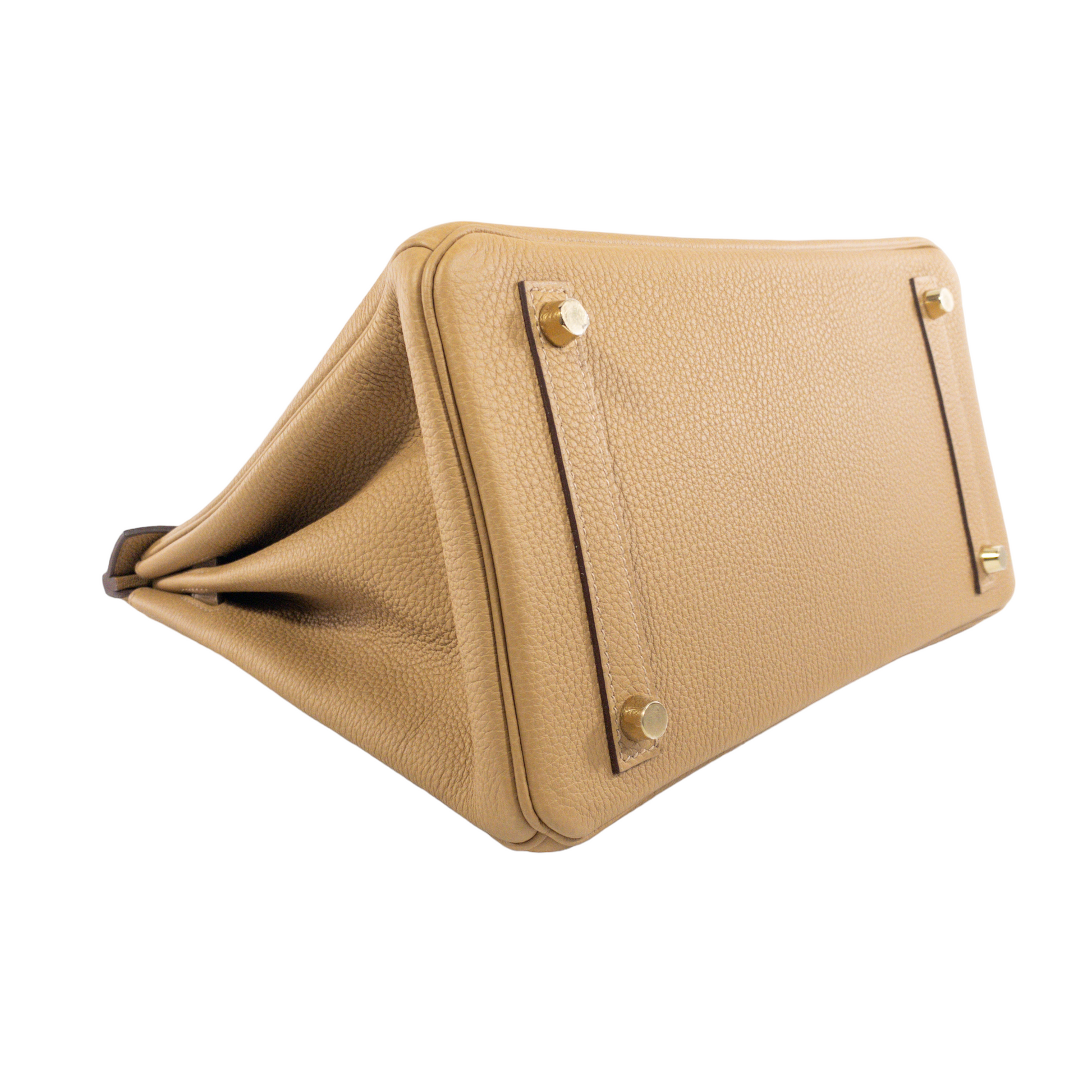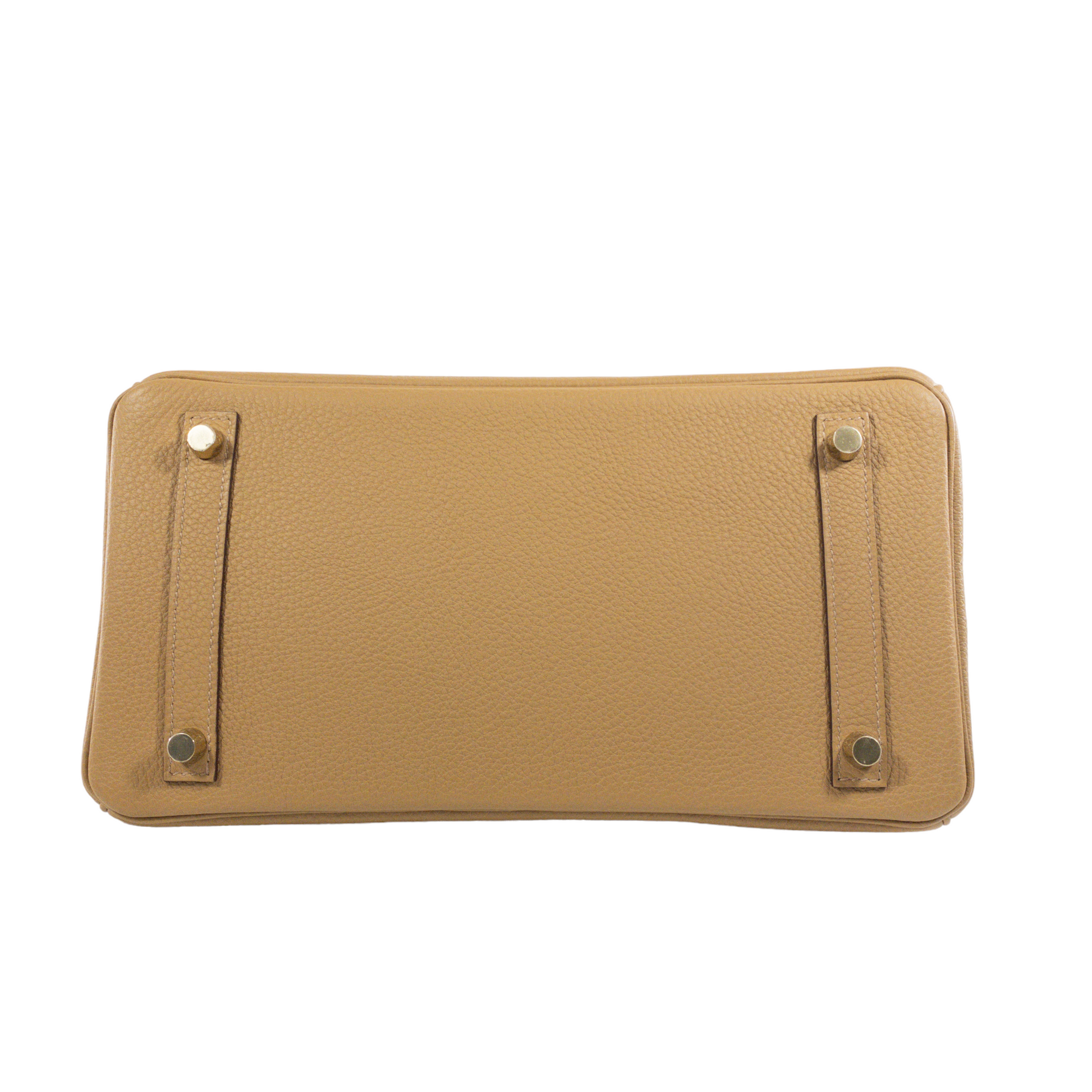 This is an authentic Hermes Birkin 30 cm . This bag features double rolled top handles with short flap closure. Opens with two leather straps and signature turn-lock closure. Four feet on bottom with leather interior
