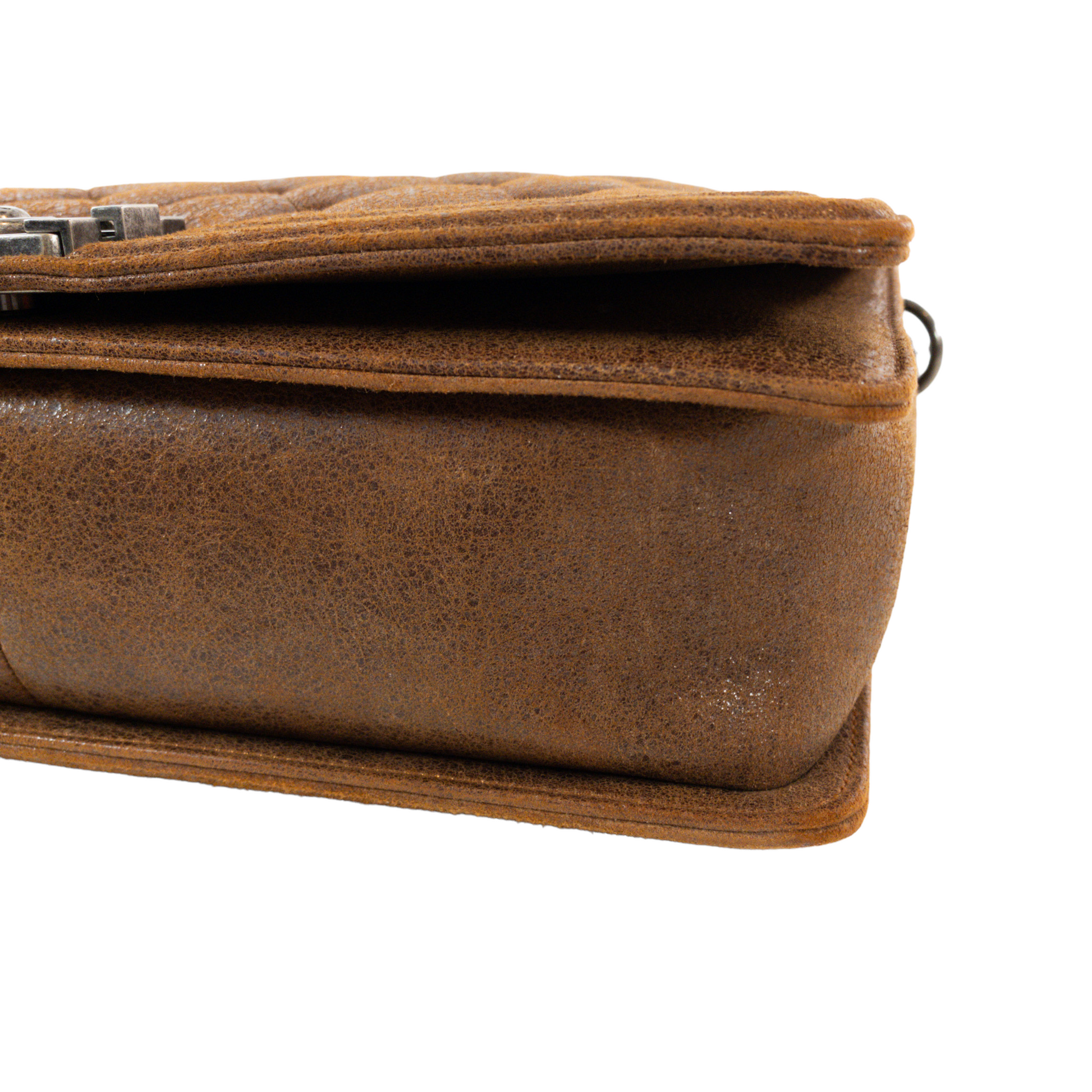 Chanel Diamond Tufted Brown Distressed Leather XL Boy RHW