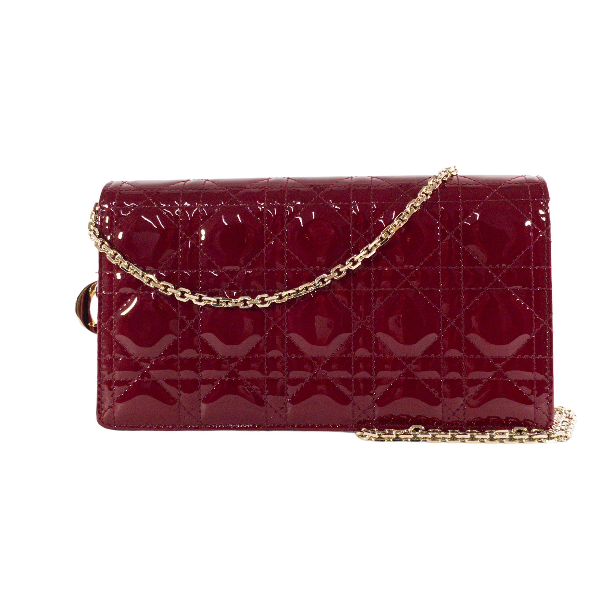 Dior Red Patent Lady Dior Chain Wallet