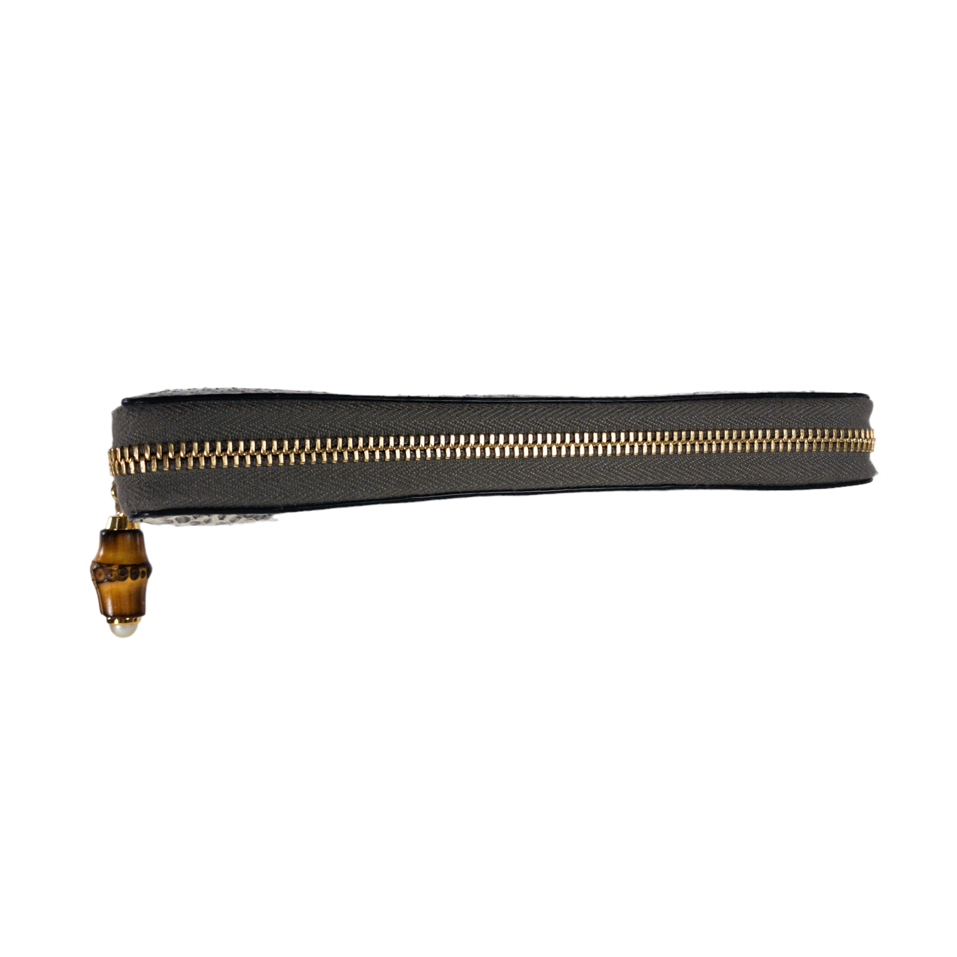 This is an authentic Gucci gray python Zip-around wallet with Bamboo zipper. Black interior leather.