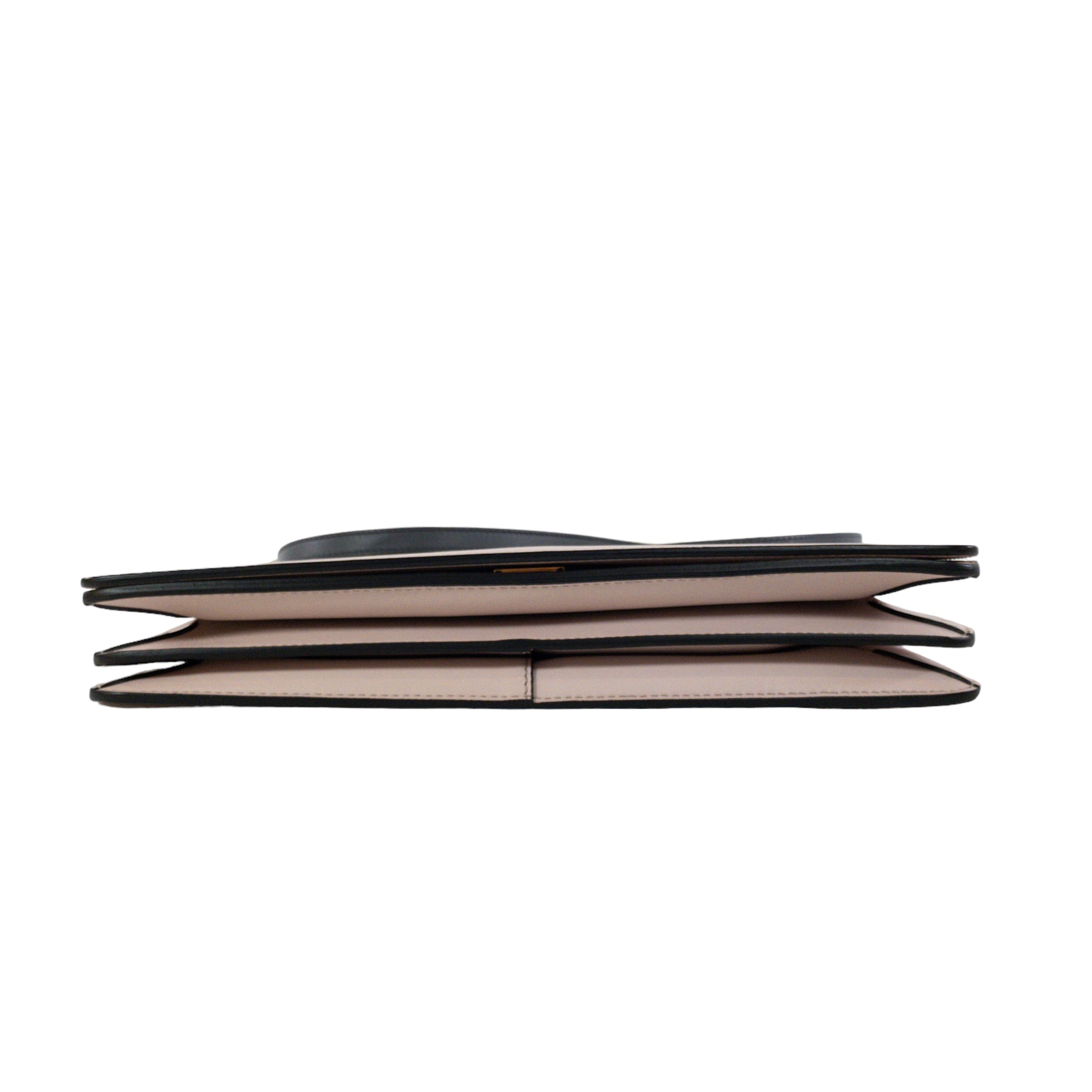 This is an authentic Givenchy Whip Bag in blush smooth leather. Large front flap with top handle and two leather shoulder straps. Push lock closure with two interior compartments inside. Lined in micro-suede.