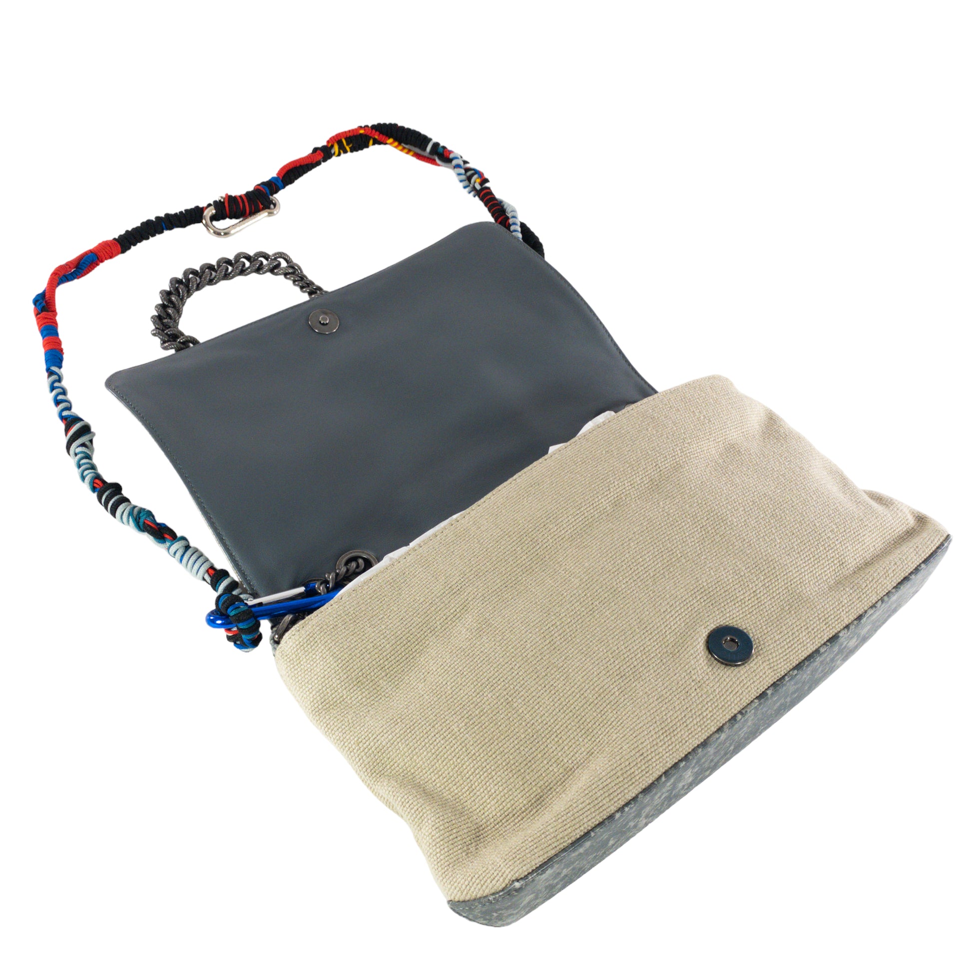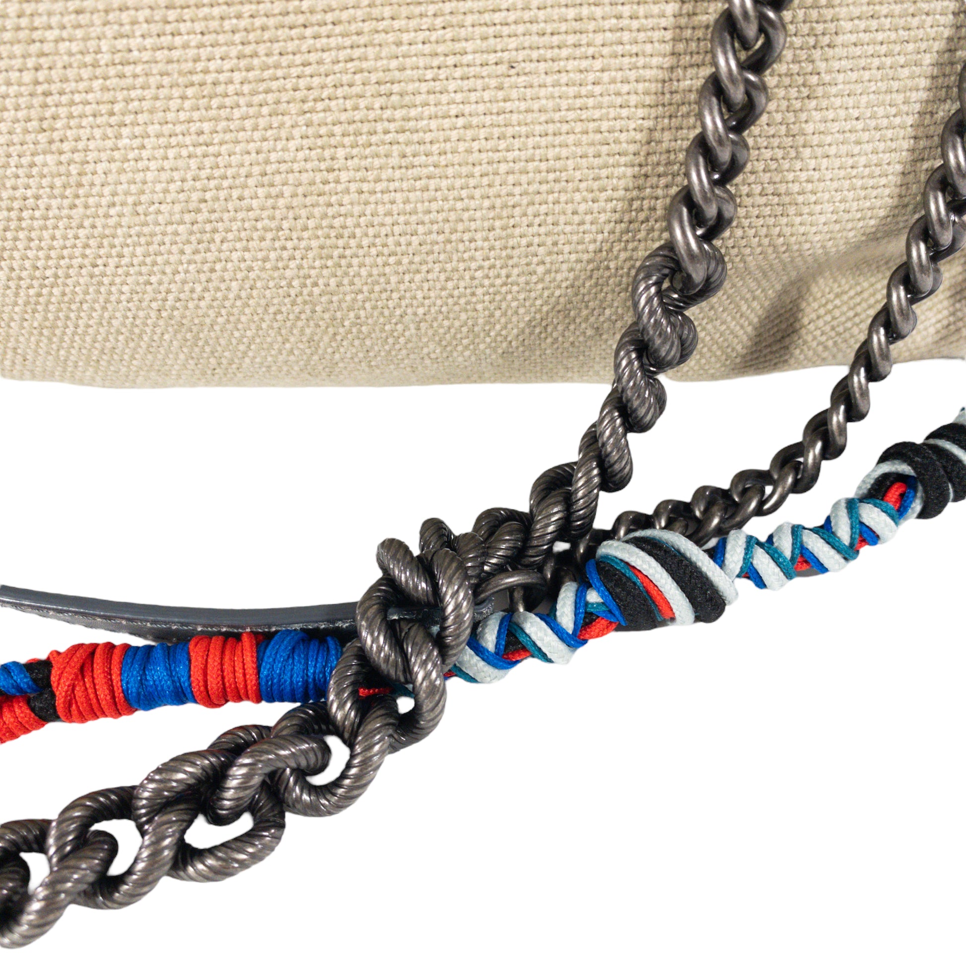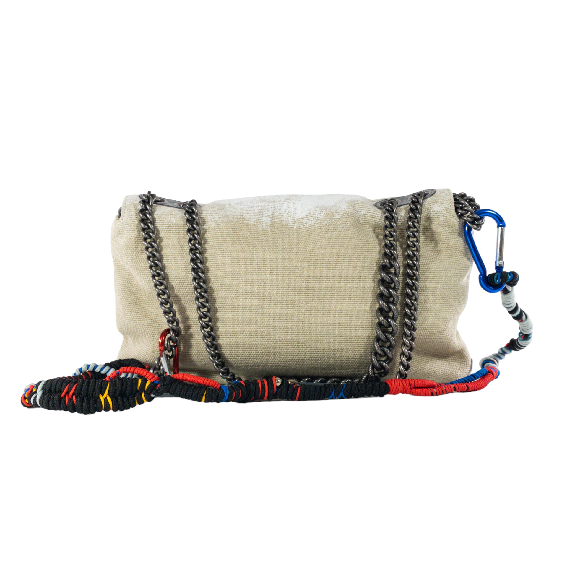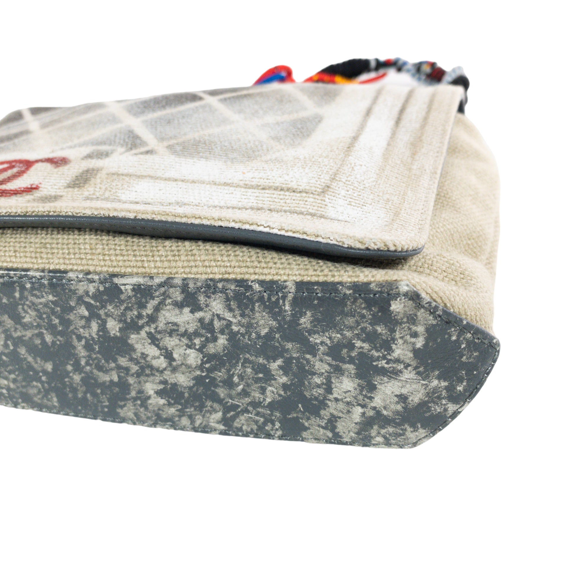 This is an authentic Chanel Oh My Boy Graffiti Flap Bag. Front flap painted canvas with textured chain strap and decorative braided extra strap. Magnetic snap button closure.