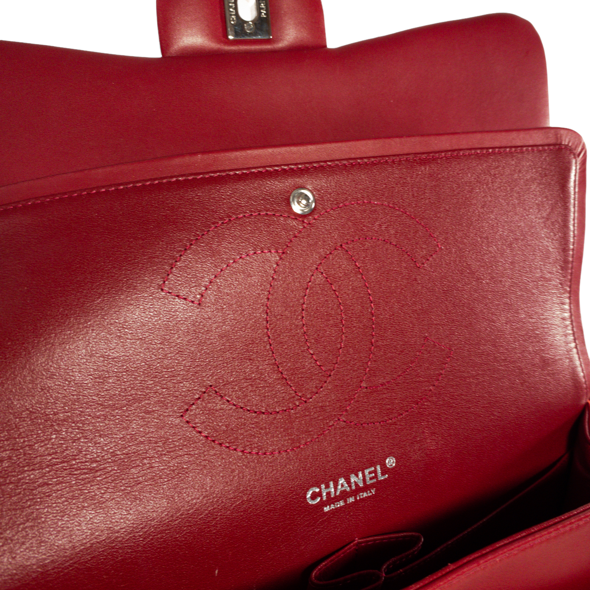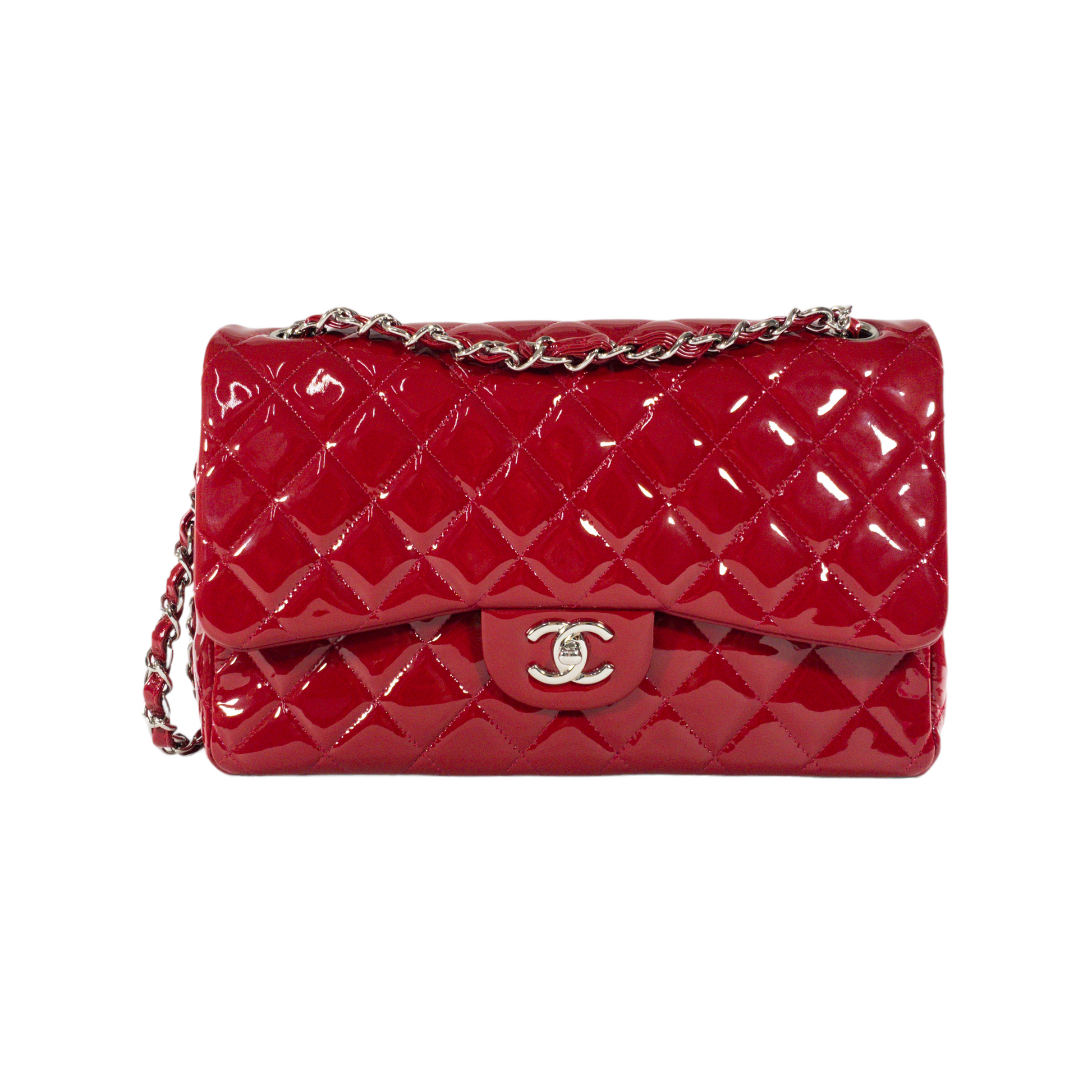 Chanel Red Patent Leather Quilted Jumbo Classic Flap SHW