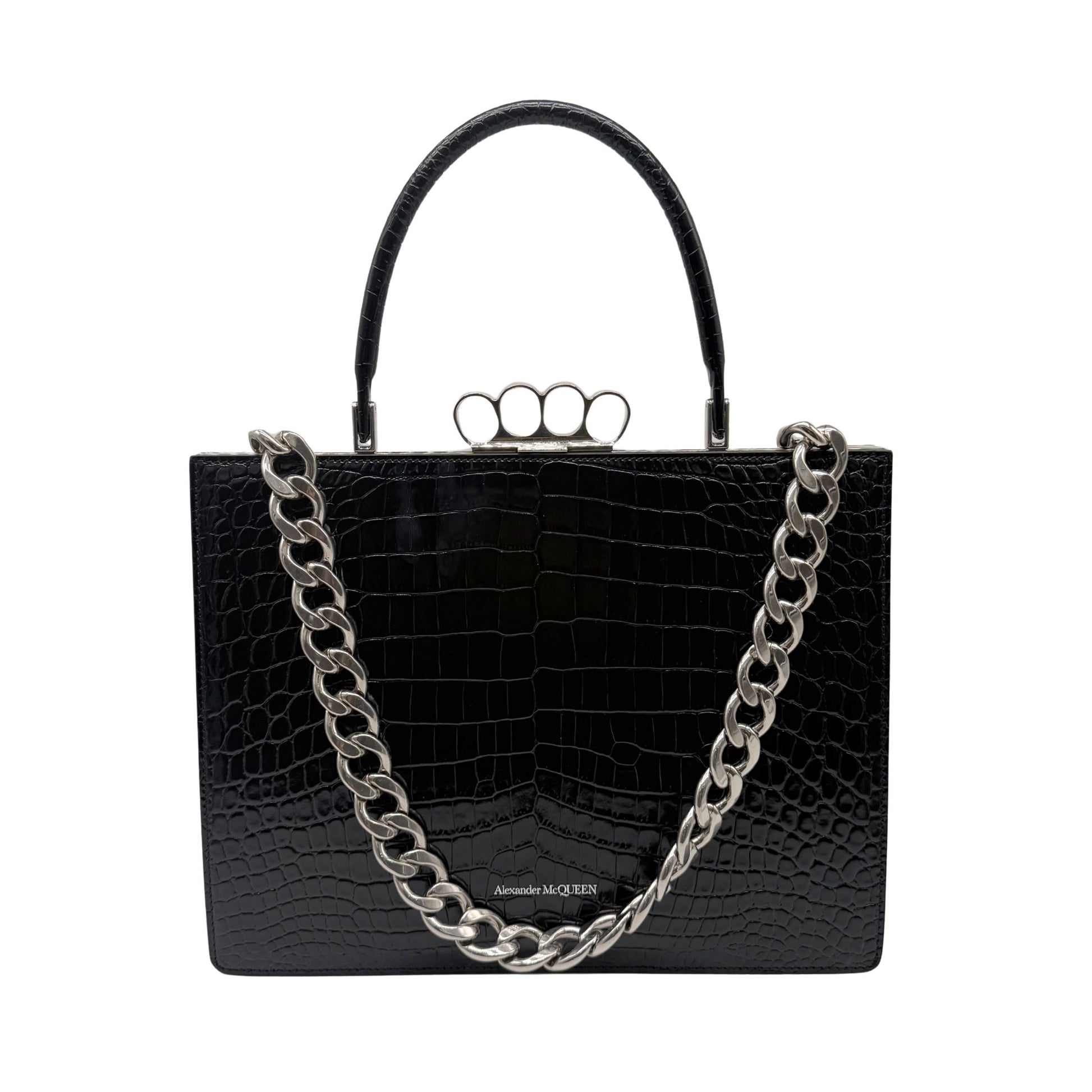 A Mcqueen Crocodile Embossed Frame Bag in Black