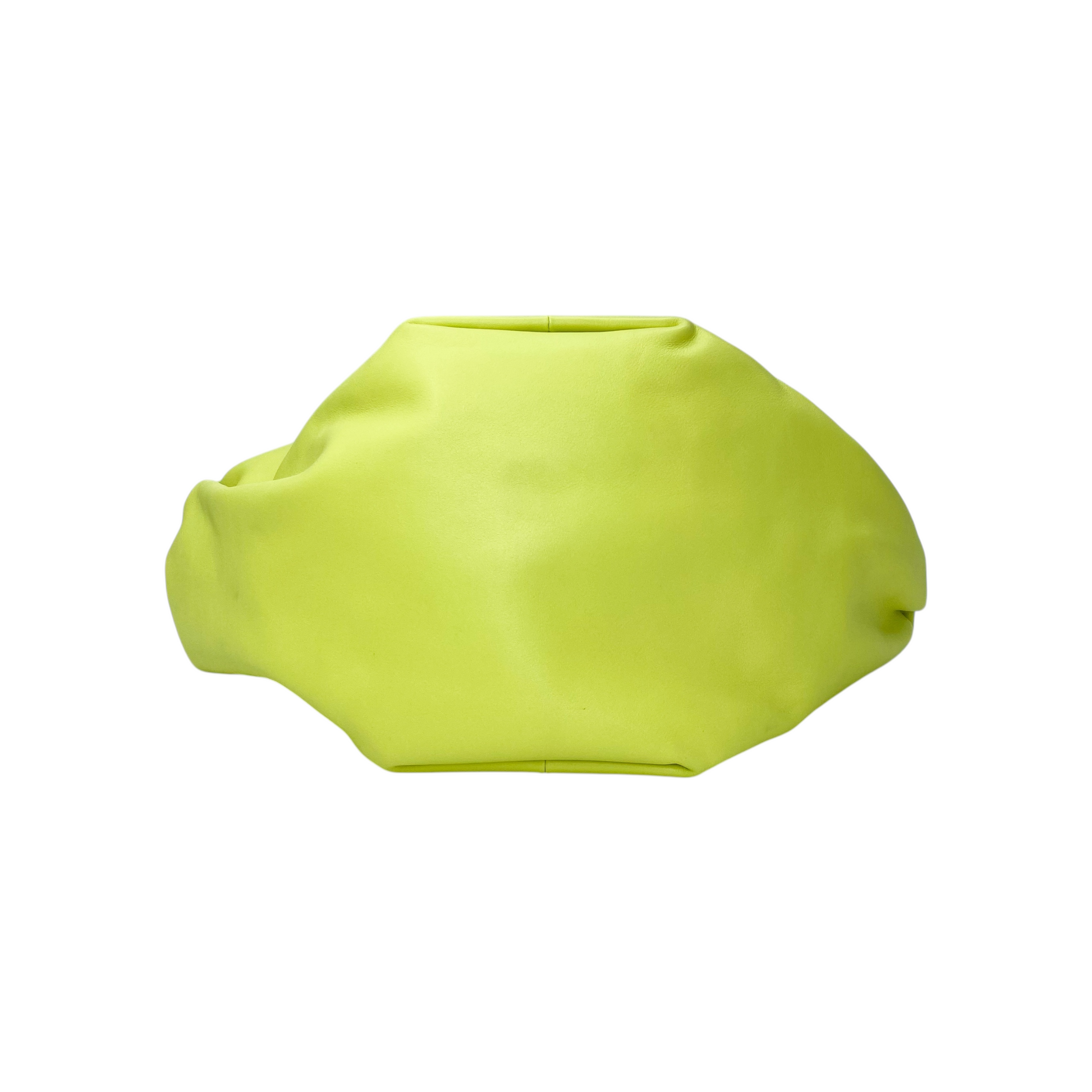 This is a Bottega Veneta Seagrass Double Knot Bag in calfskin leather with silver hardware. This adorable handbag features a top handle and a top zipper closure. The interior is lined in Seagrass leather. This is a spectacular bag for a pop of color!