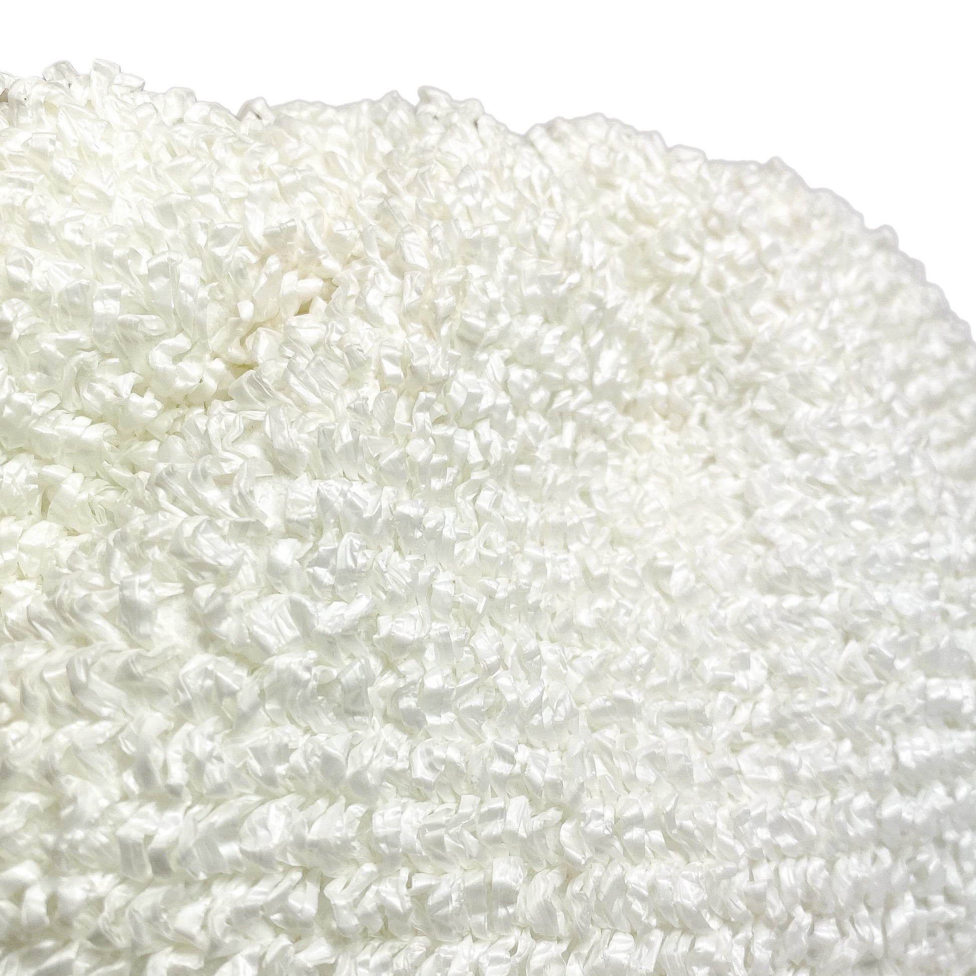 This is a Bottega Veneta White The Pouch Curly in raffia. This chic handbag features a 5.5-inch top handle, a magnetic frame closure, and a white leather lined interior. This is a wonderful handbag for any occasion!