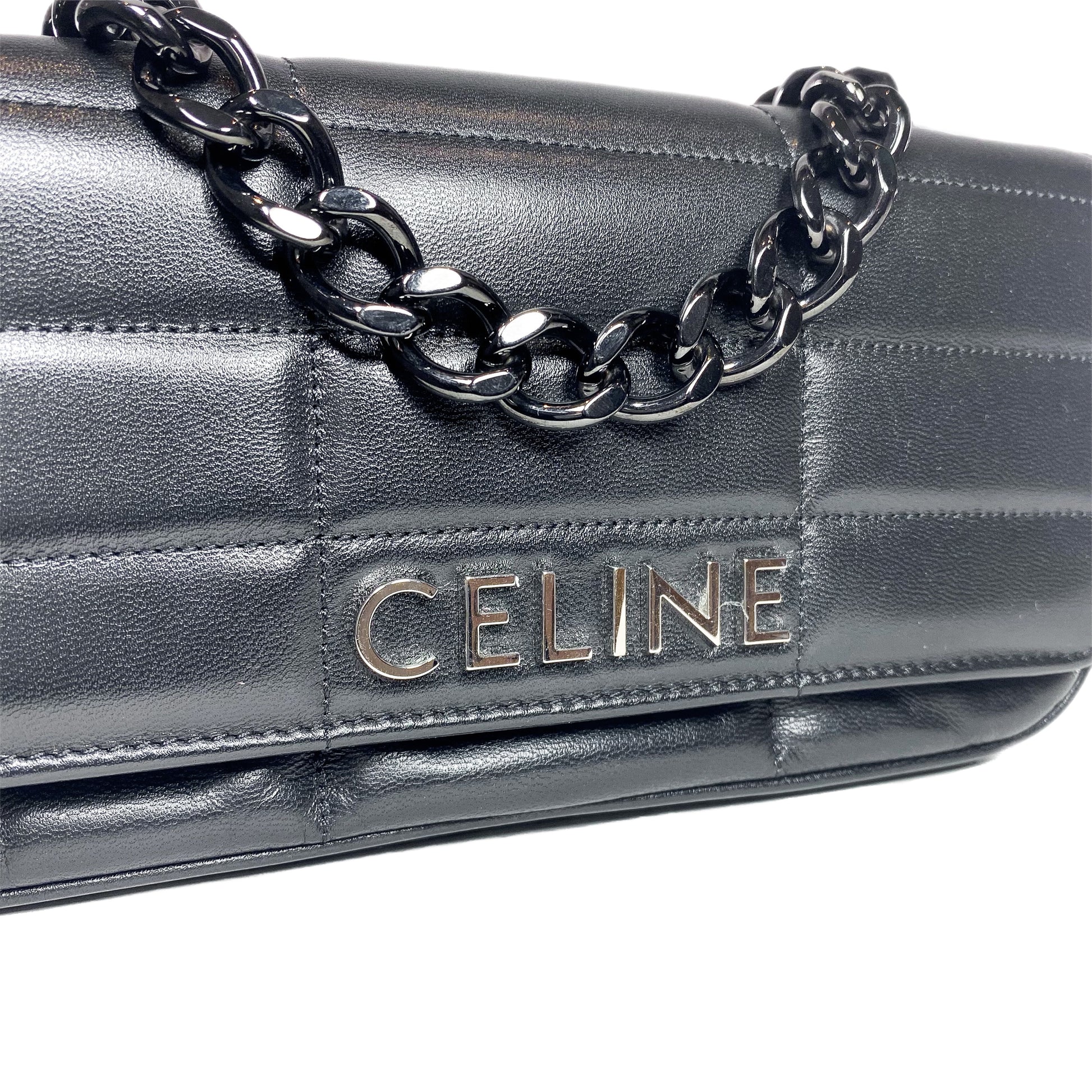 Celine Black Matelasse Monochrome Chain Shoulder Bag