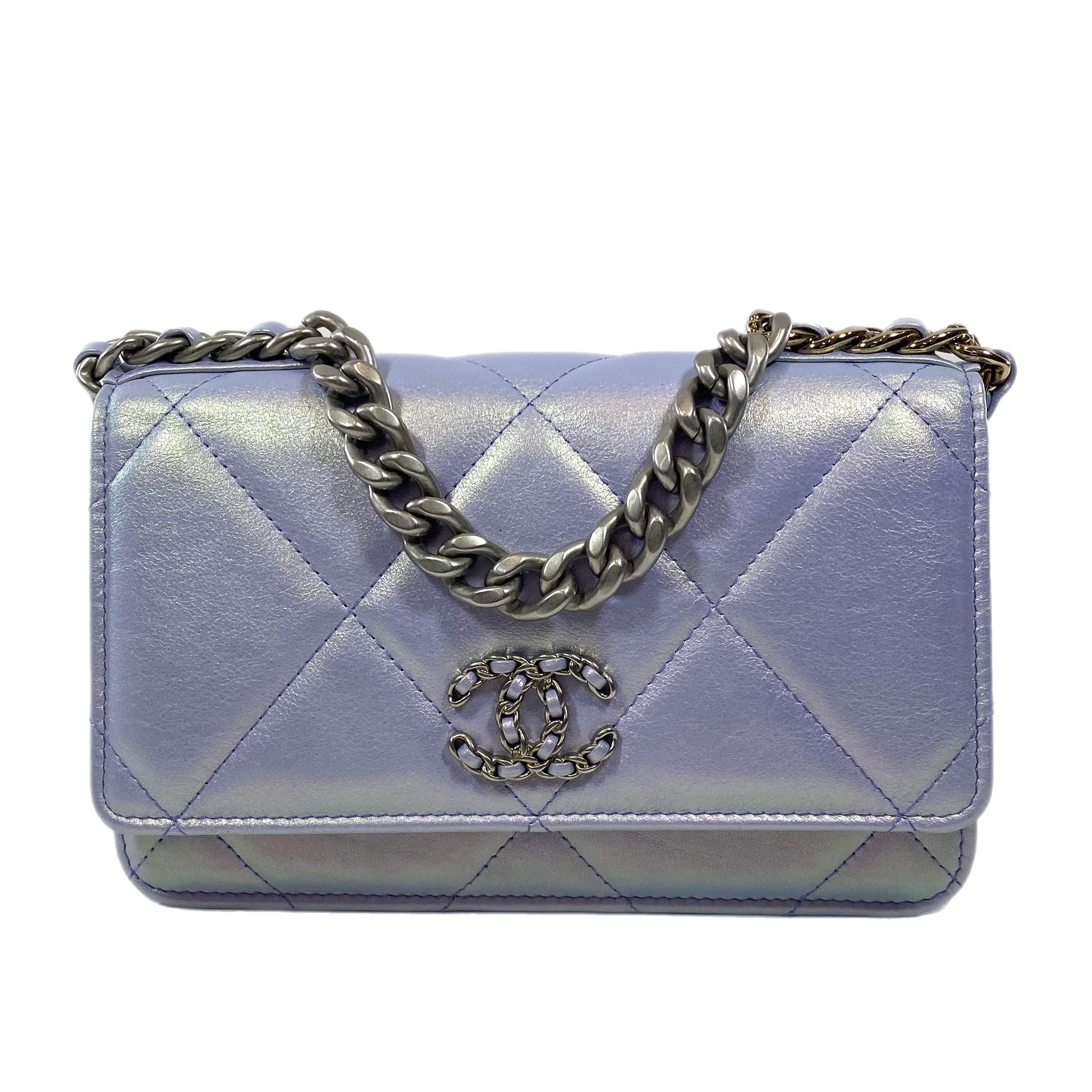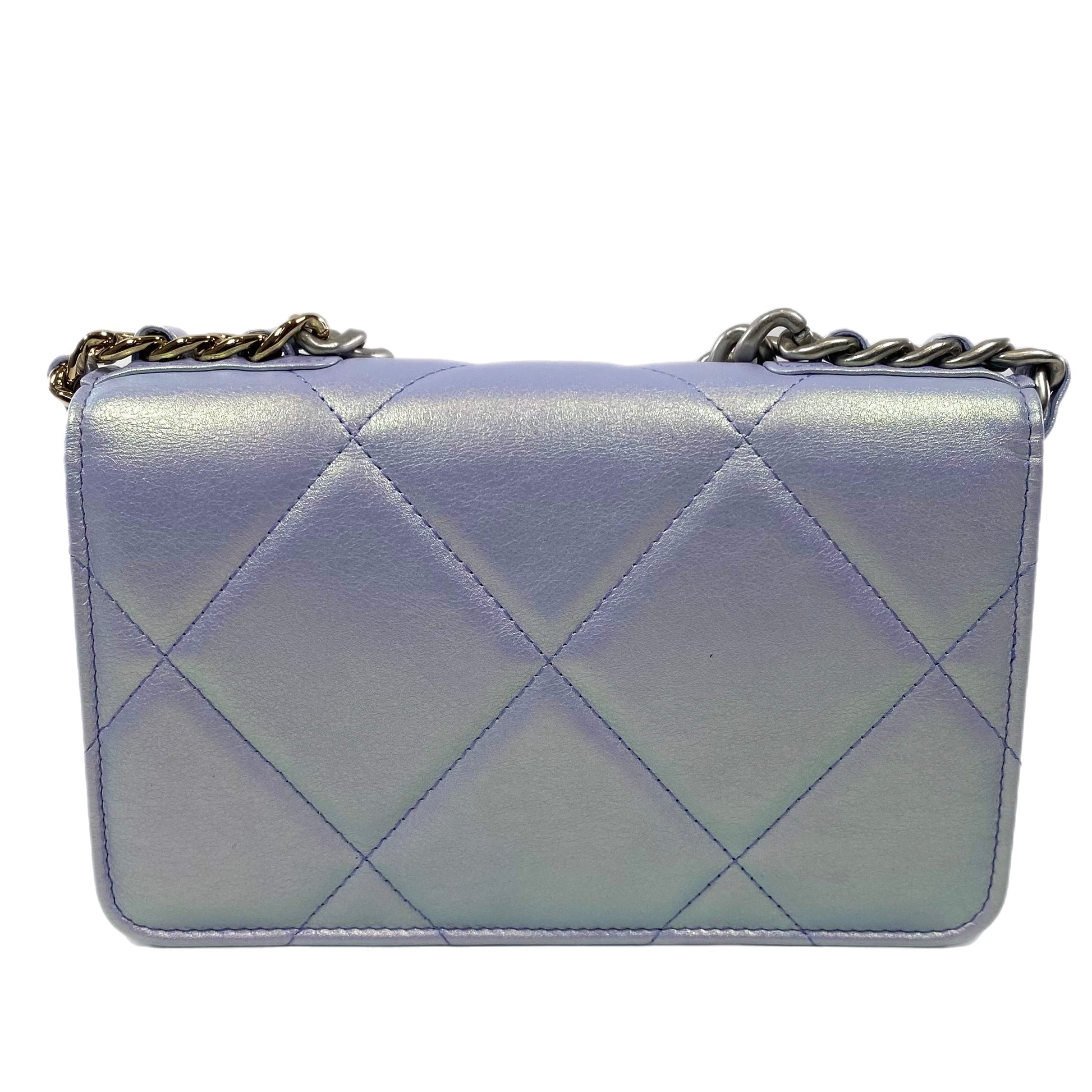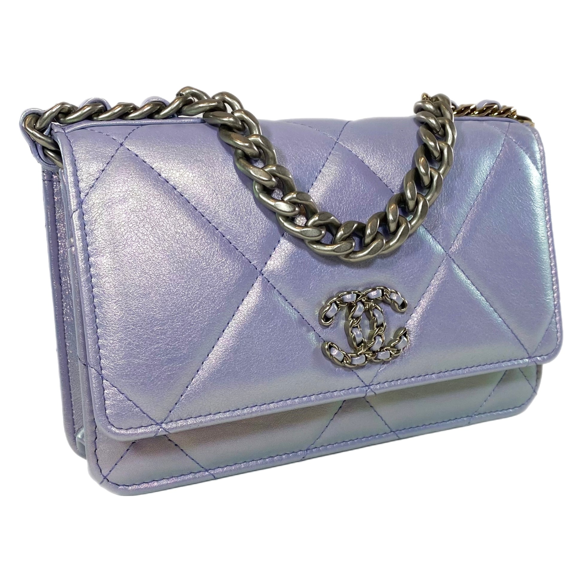 Chanel 19 Iridescent Light Purple Quilted Calfskin Wallet On Chain