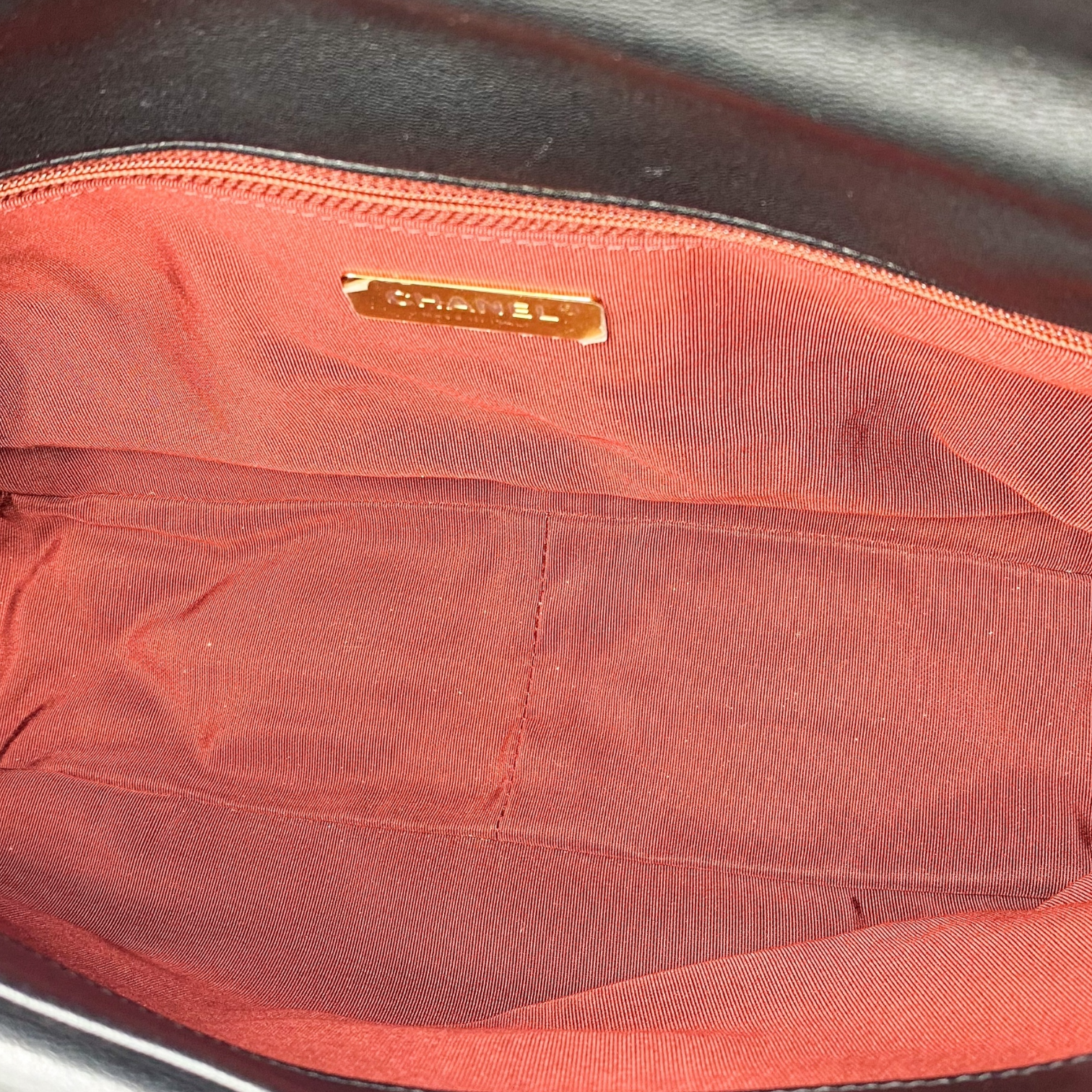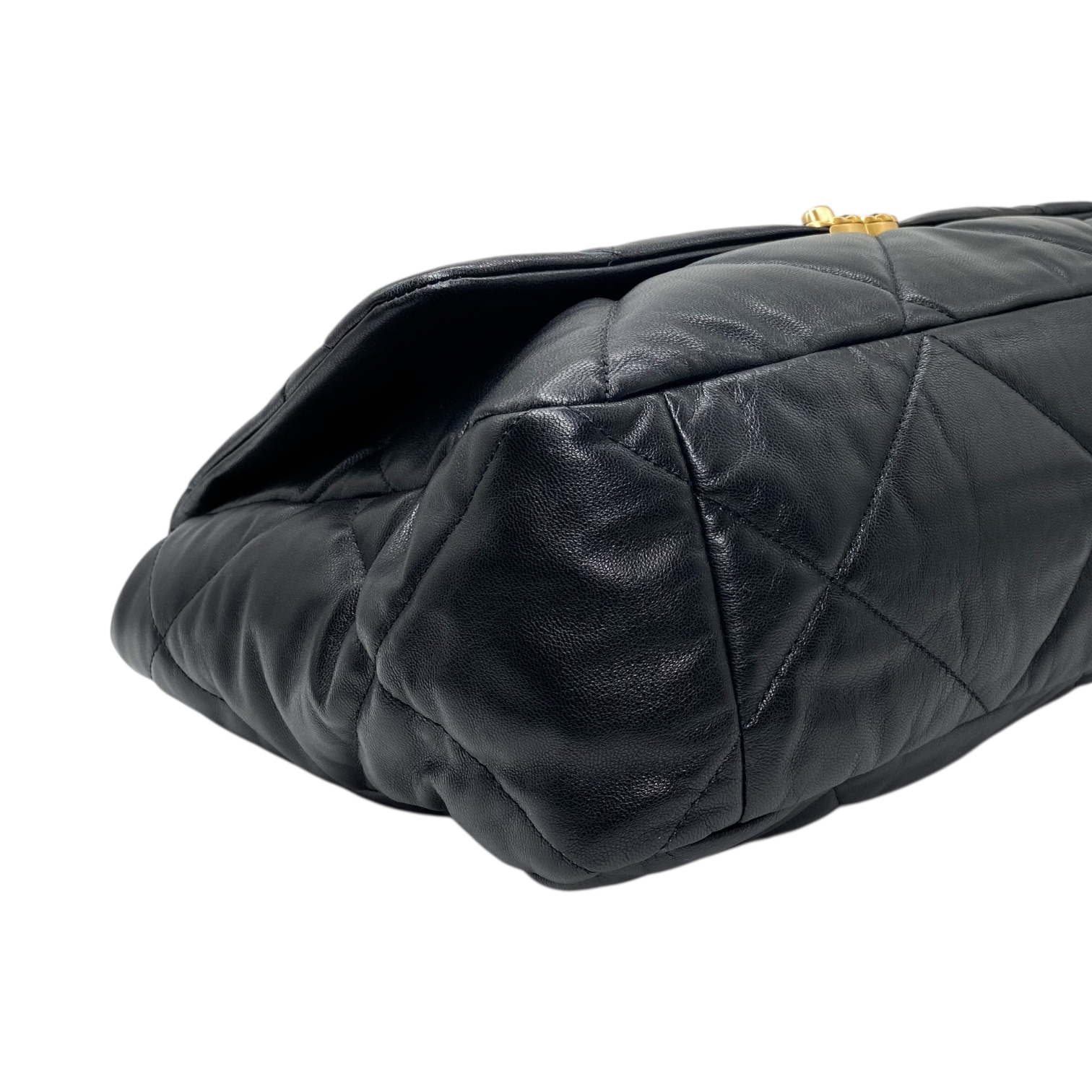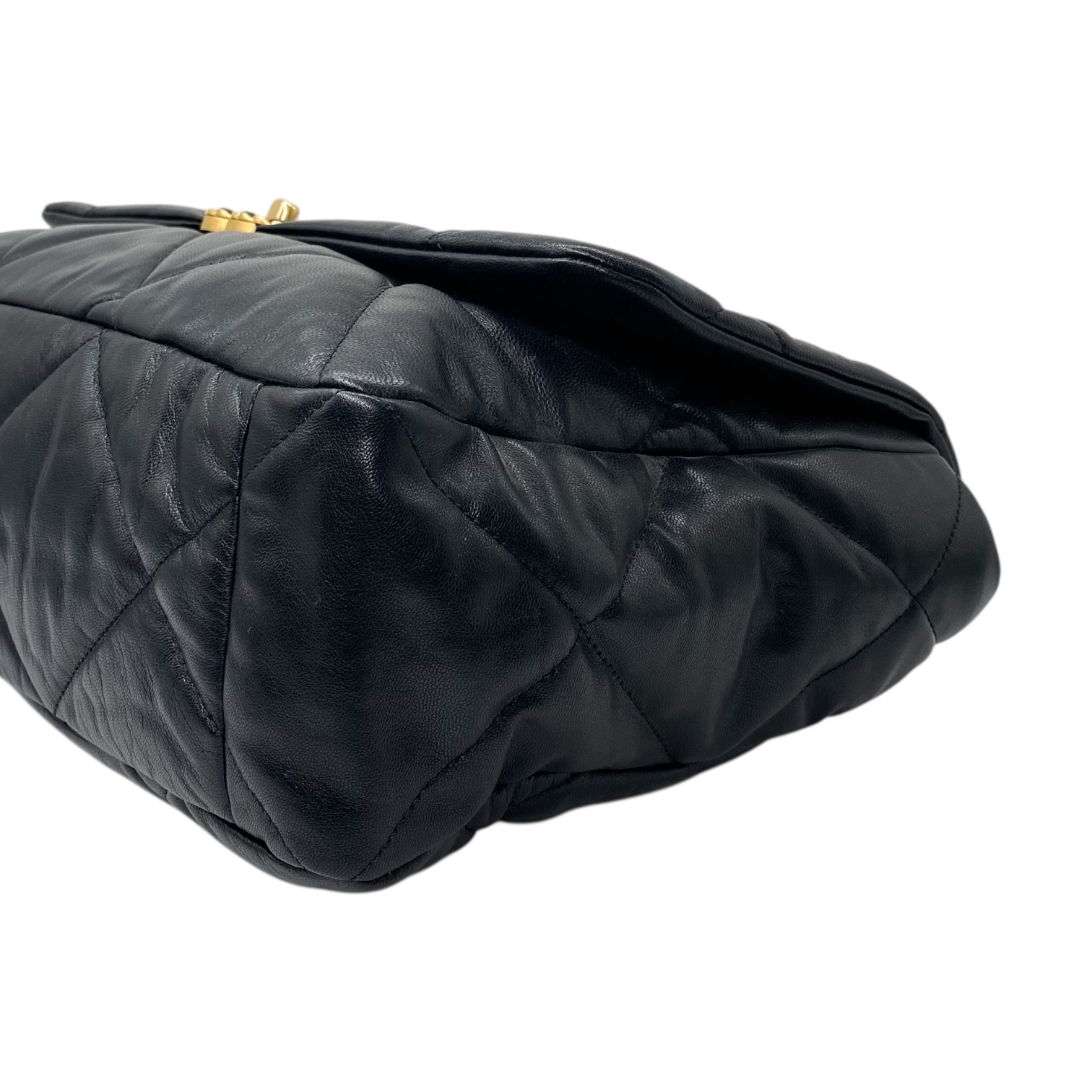 This is a Chanel 19 Maxi in black goatskin leather with gold hardware. This amazing handbag is finished with the signature mixed-metal chain and bold CC clasp, it perfectly blends modern edge with timeless Chanel elegance. This durable maxi is a great addition to your collection!