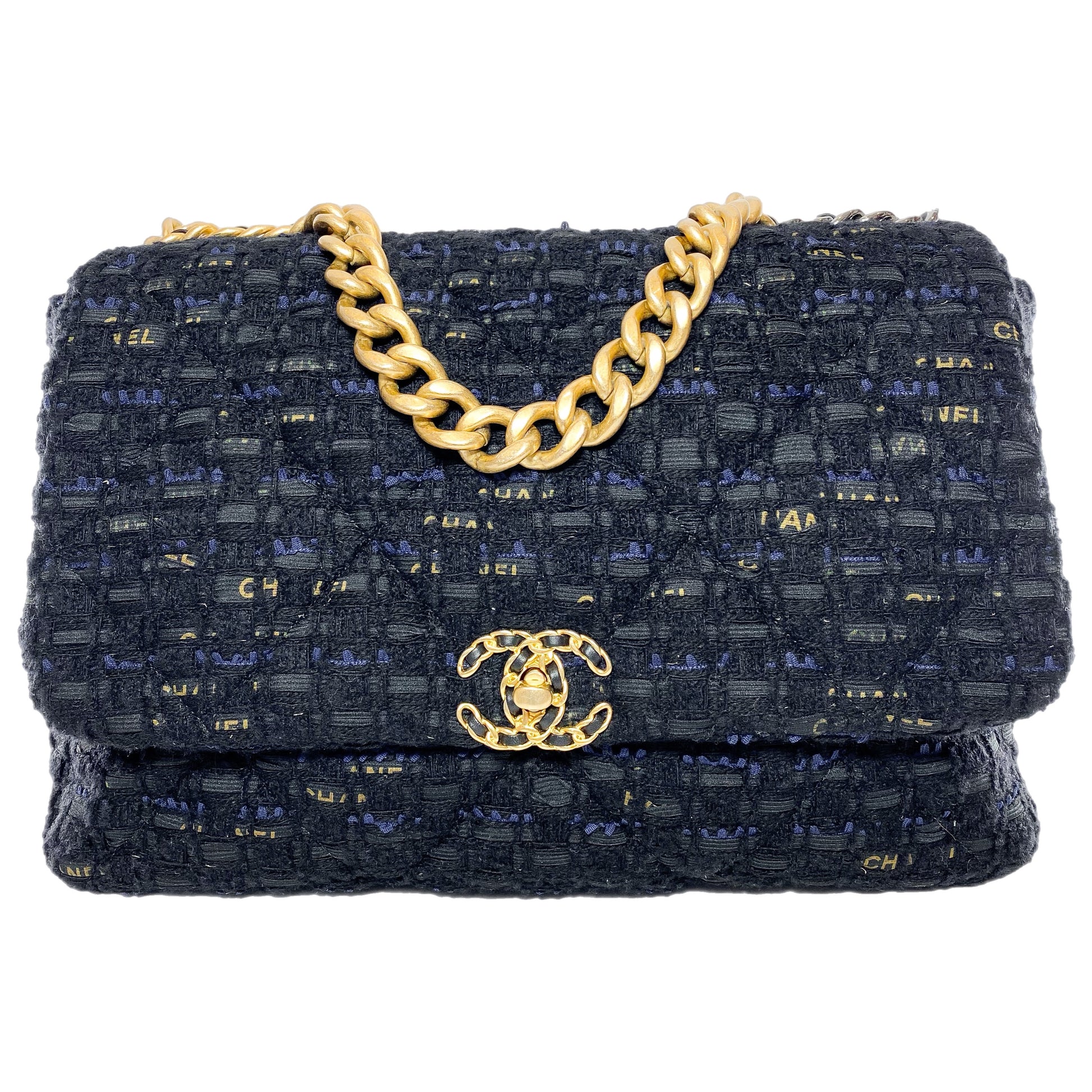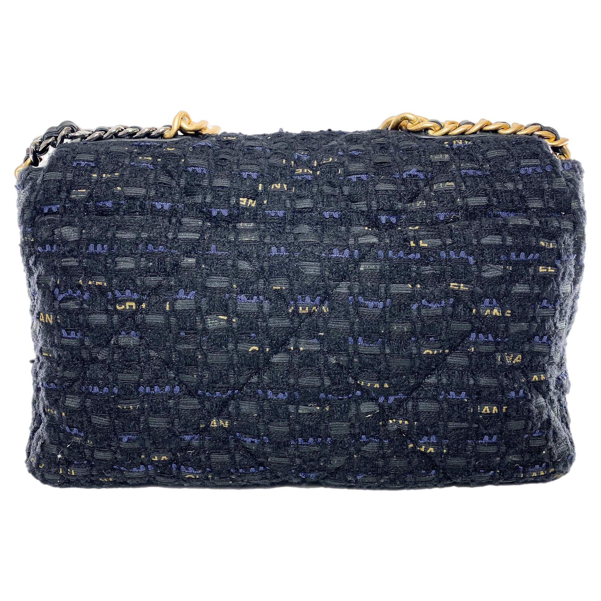 Chanel 19 Maxi Navy Black Tweed Flap Bag