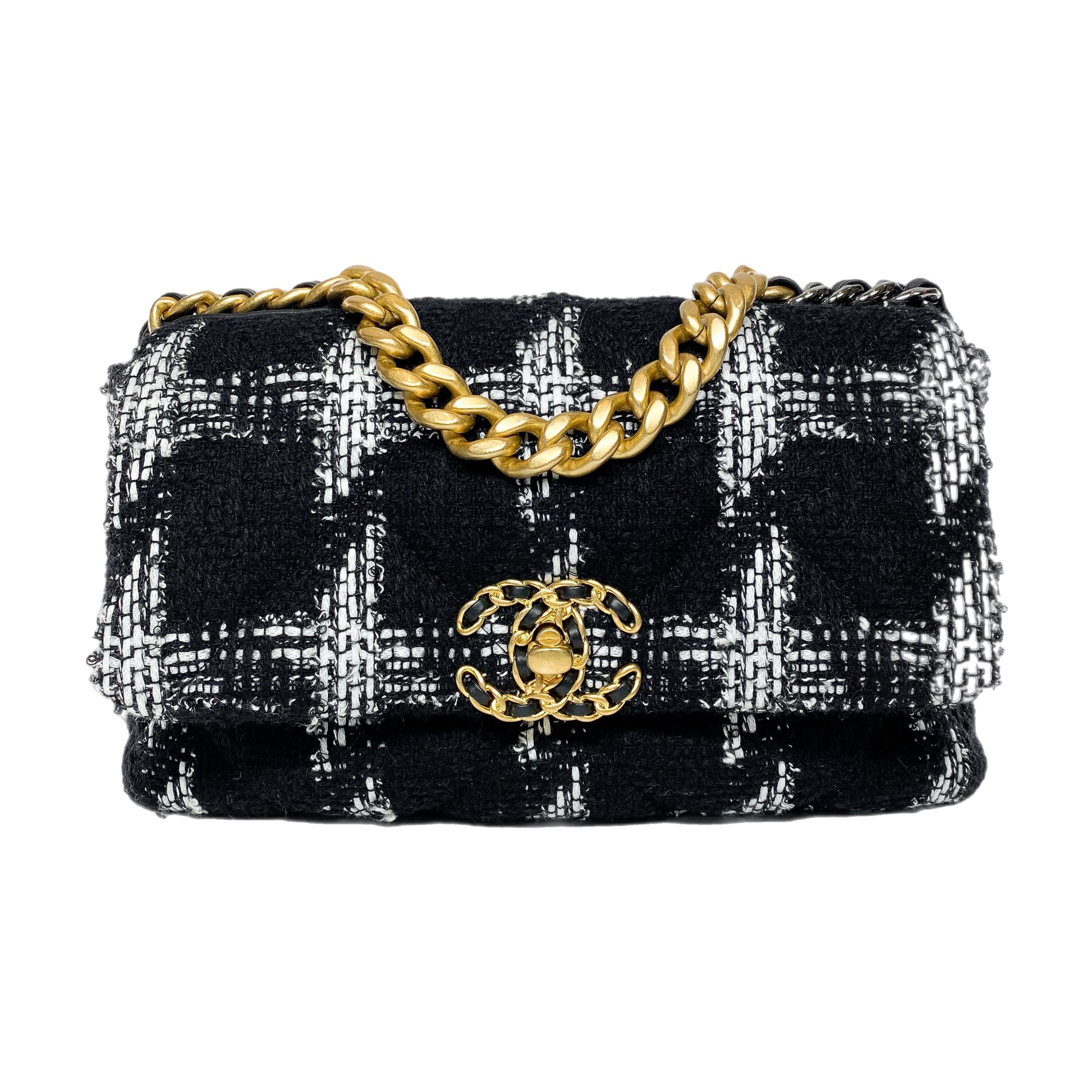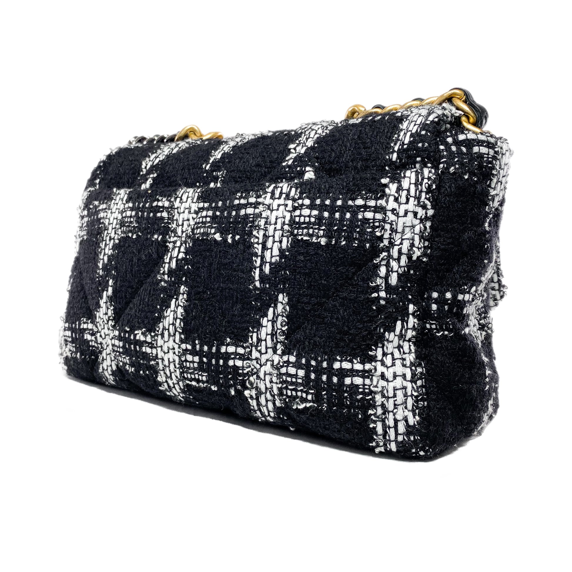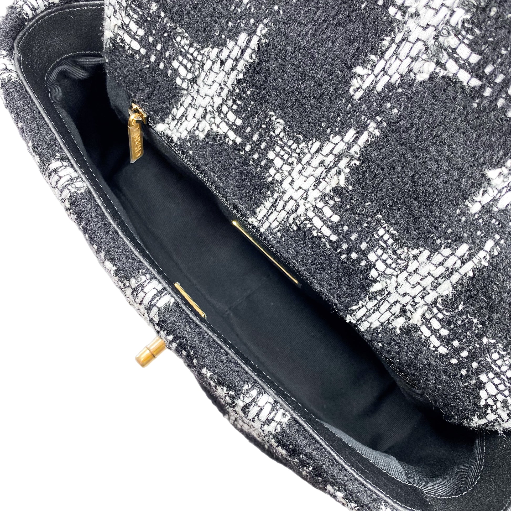 Chanel 19 Medium Black and White Tweed Flap Bag