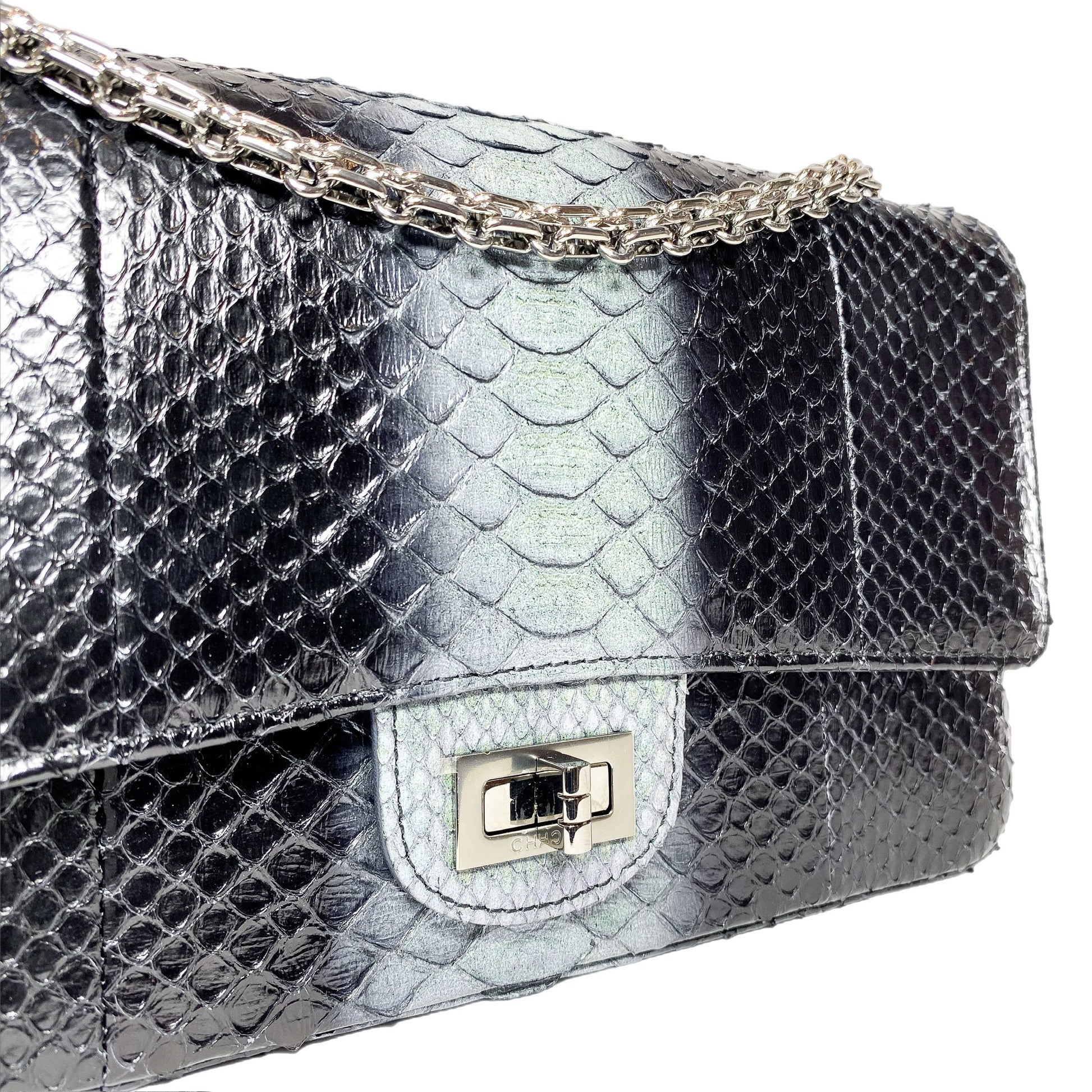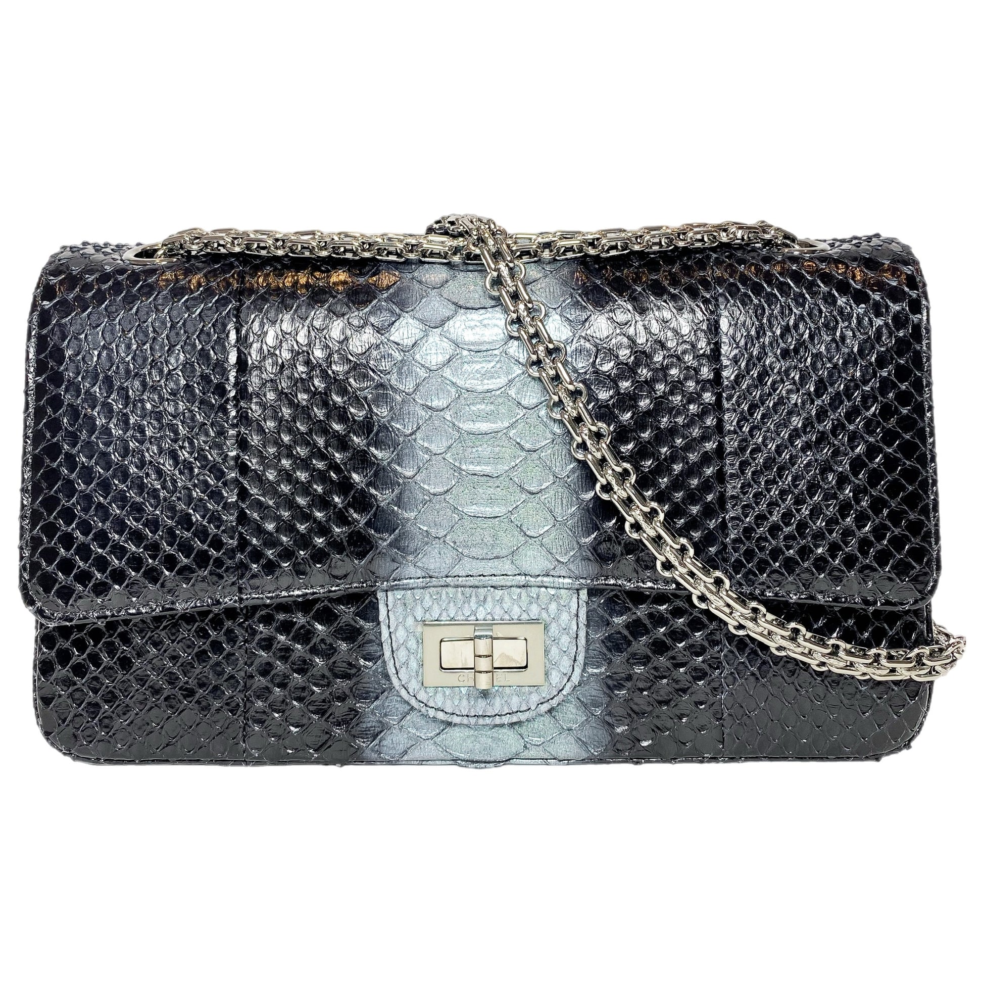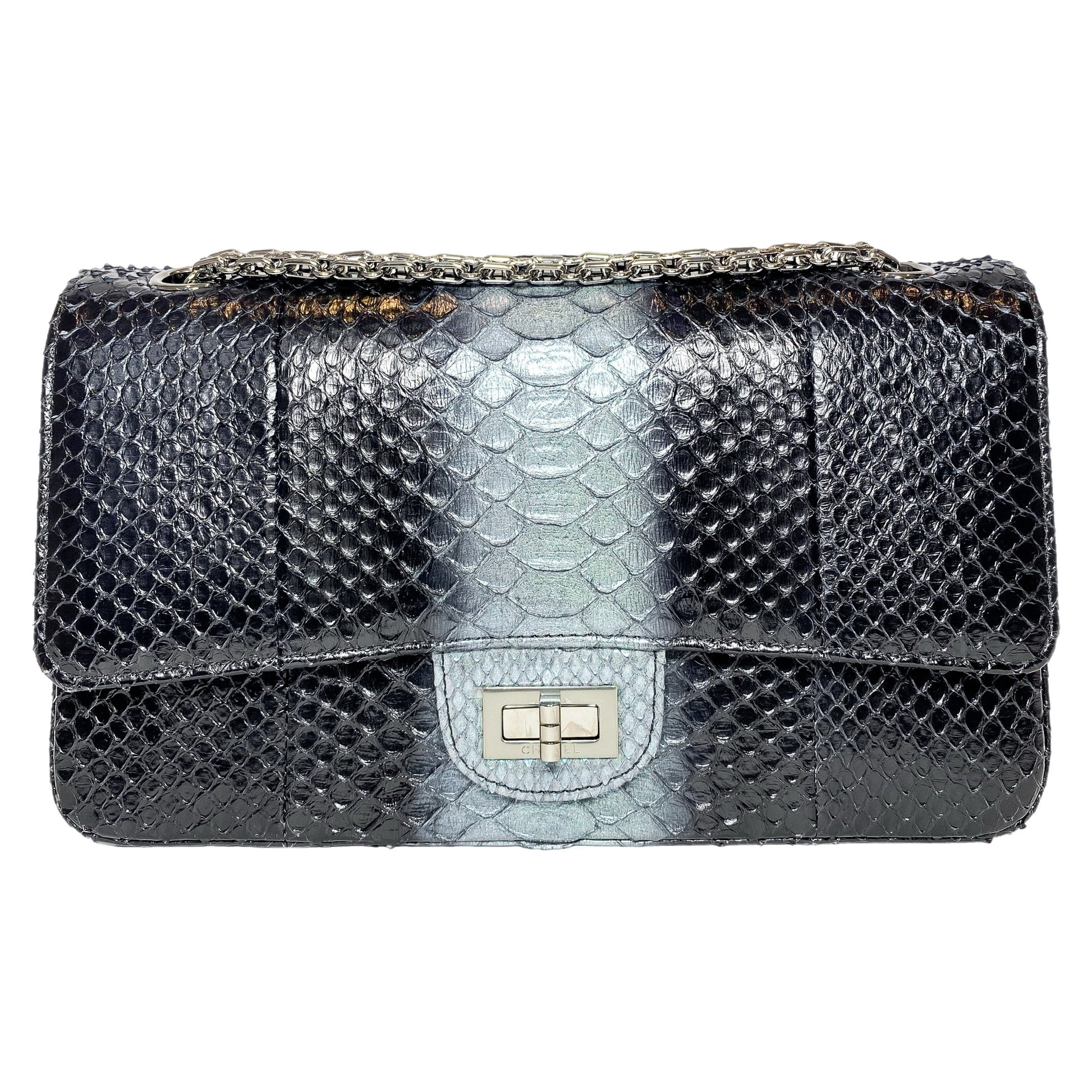Chanel 225 Black Gray Python Reissue Flap Bag