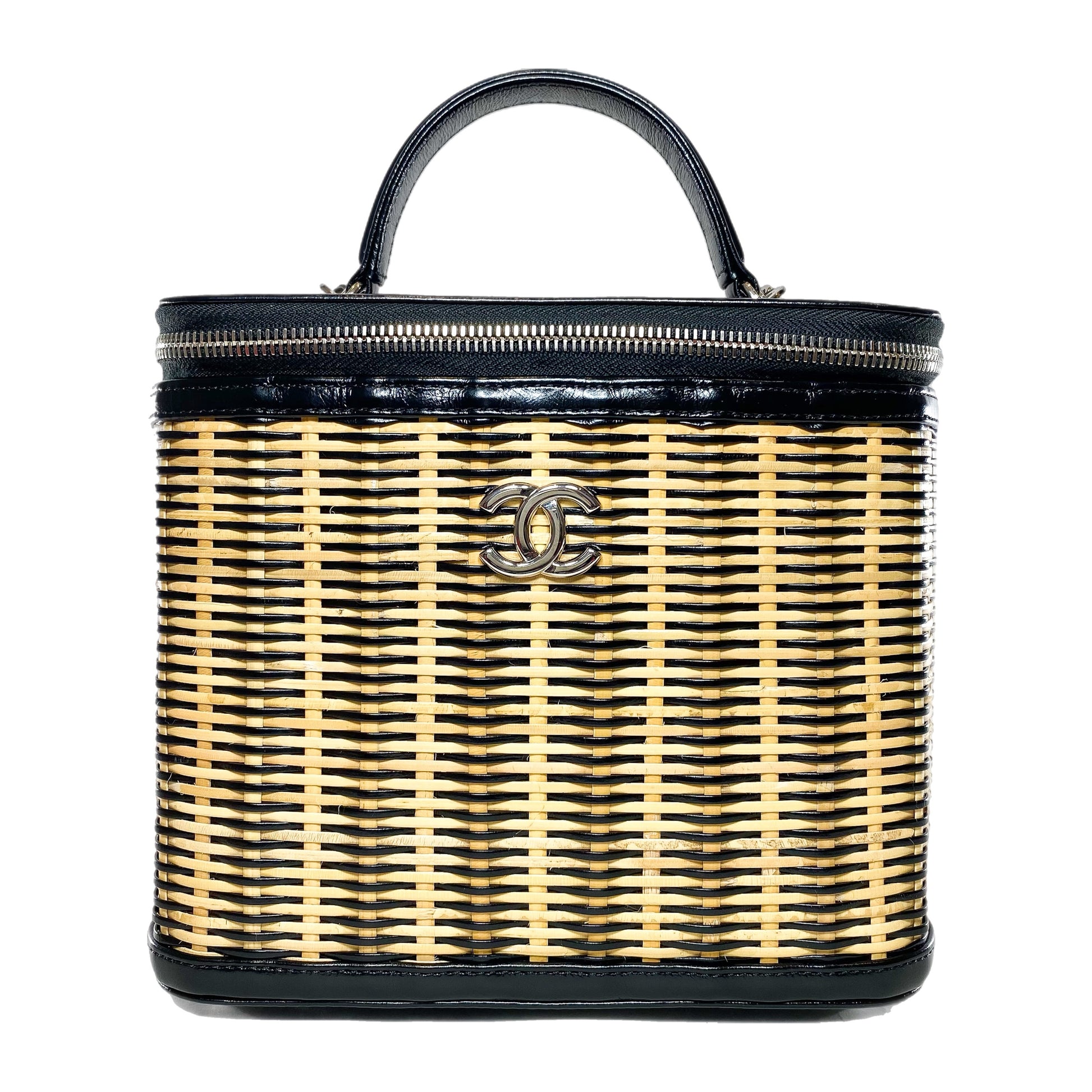 Chanel Beige Black Glazed Calfskin Raffia Take Away Vanity Case