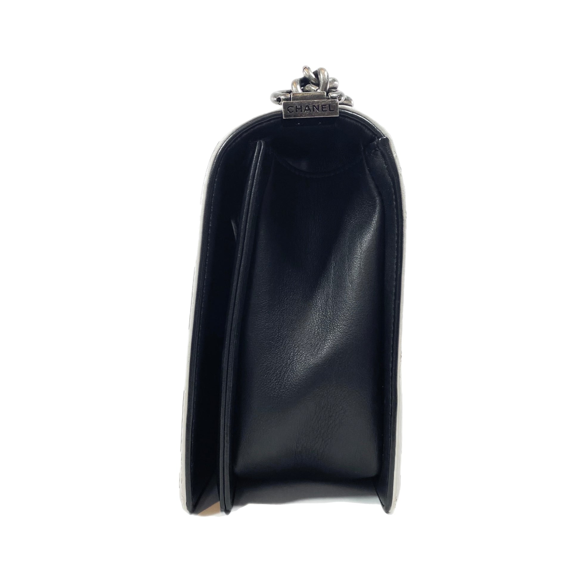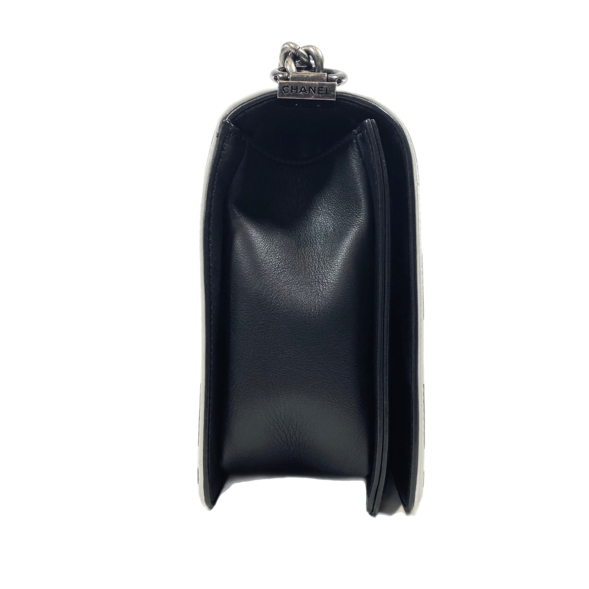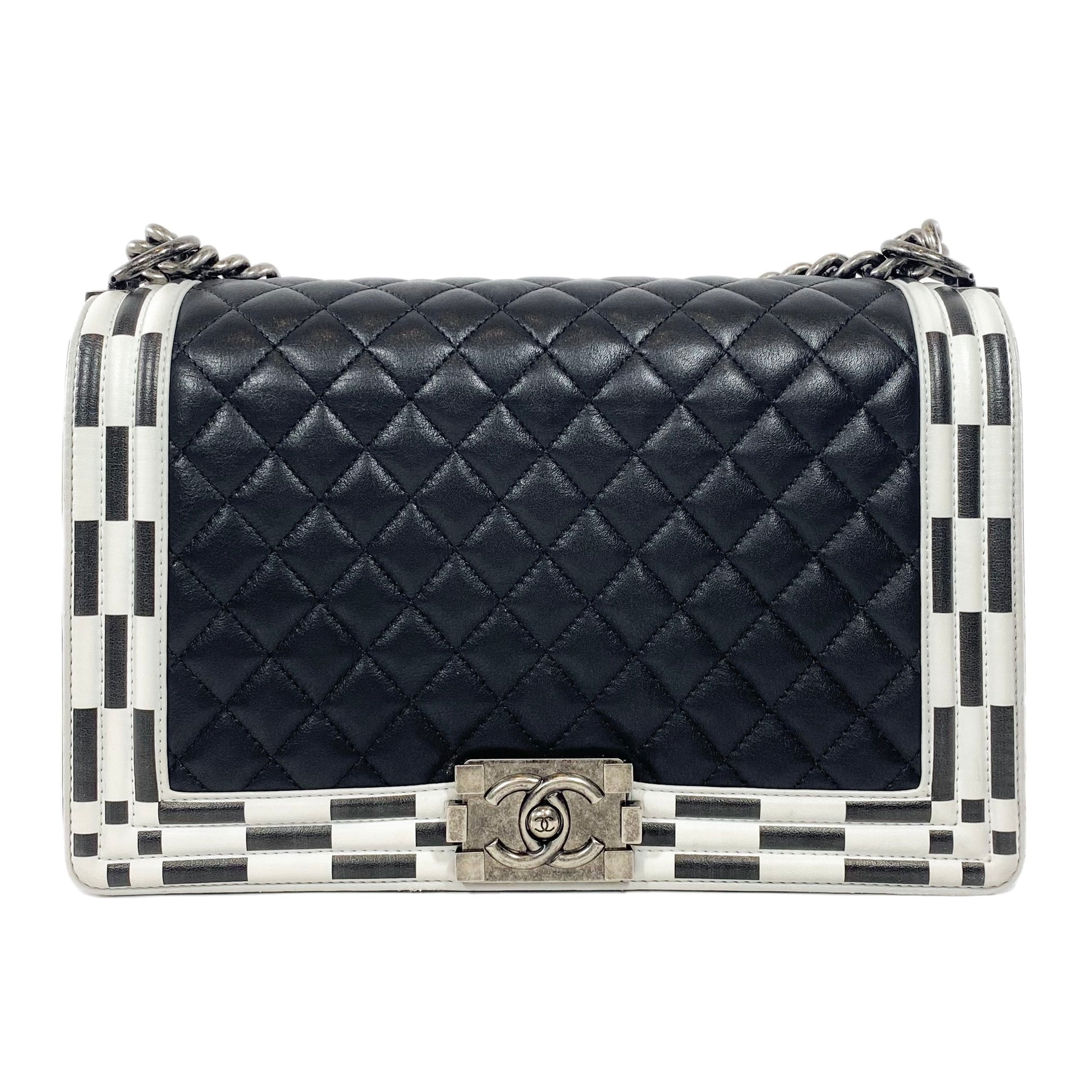 Chanel Black and White Quilted Calfskin New Medium Checkerboard Boy Flap Bag