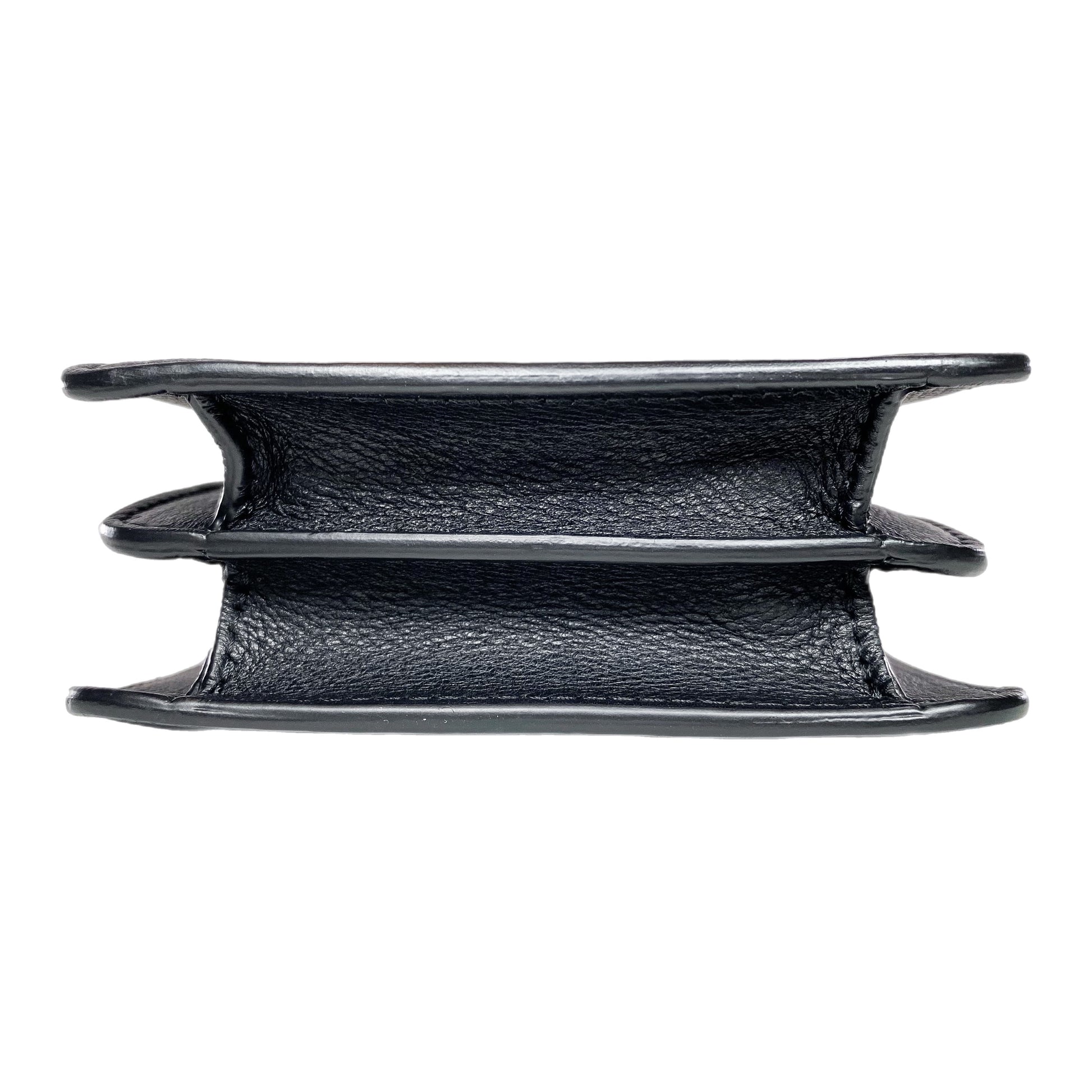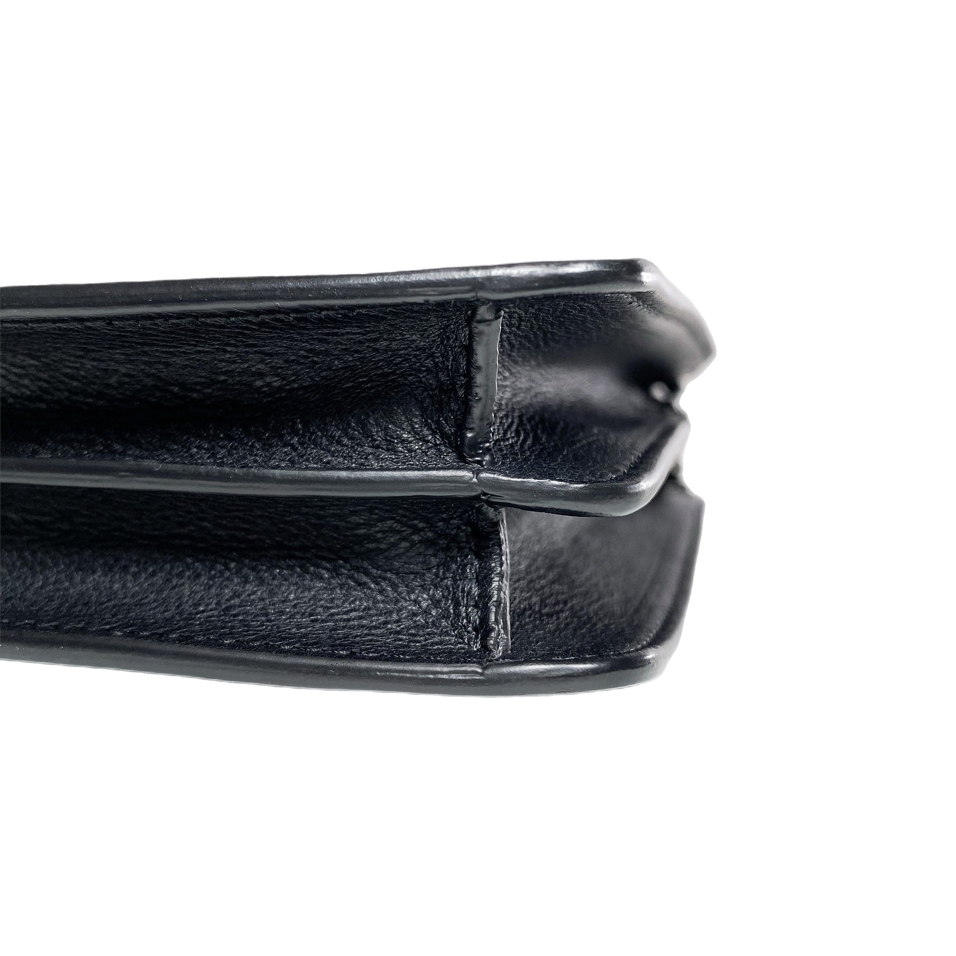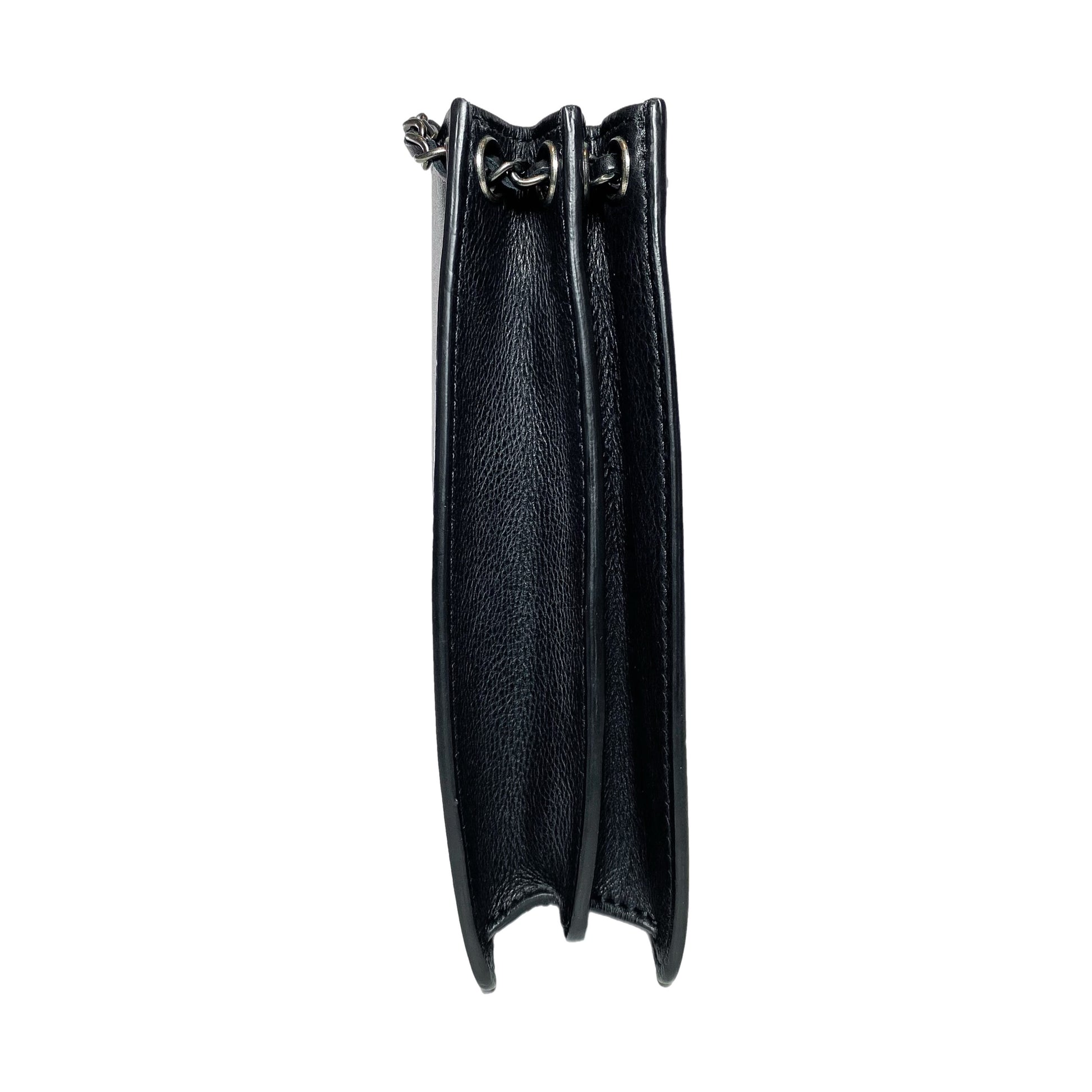 This is a Chanel Black CC Phone Holder Crossbody in calfskin leather with ruthenium hardware. This stylish phone holder features a 25.5-inch strap and a “CC” on the front. The top is open to a partitioned black fabric lined interior that features three compartments. This is an amazing phone holder for everyday use!