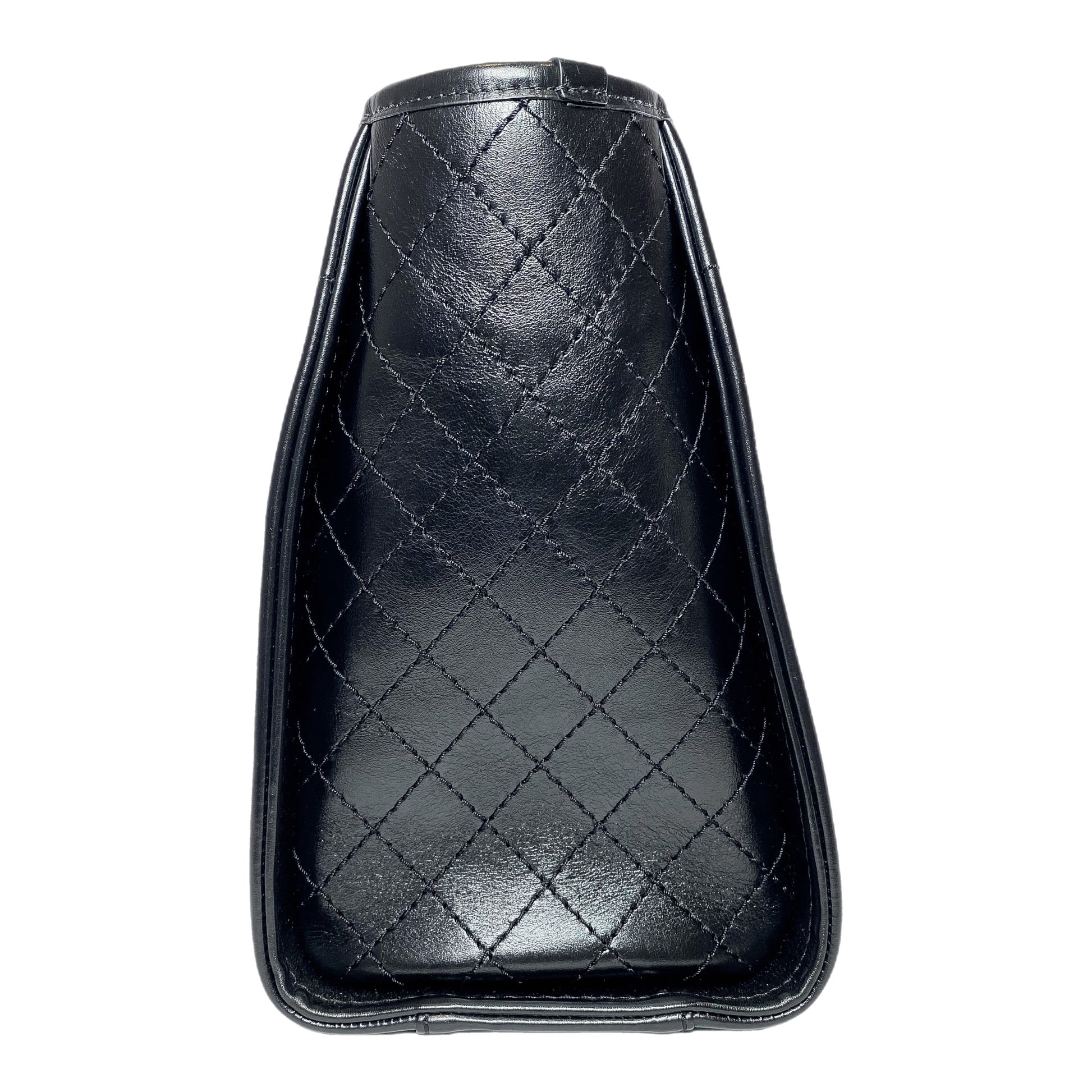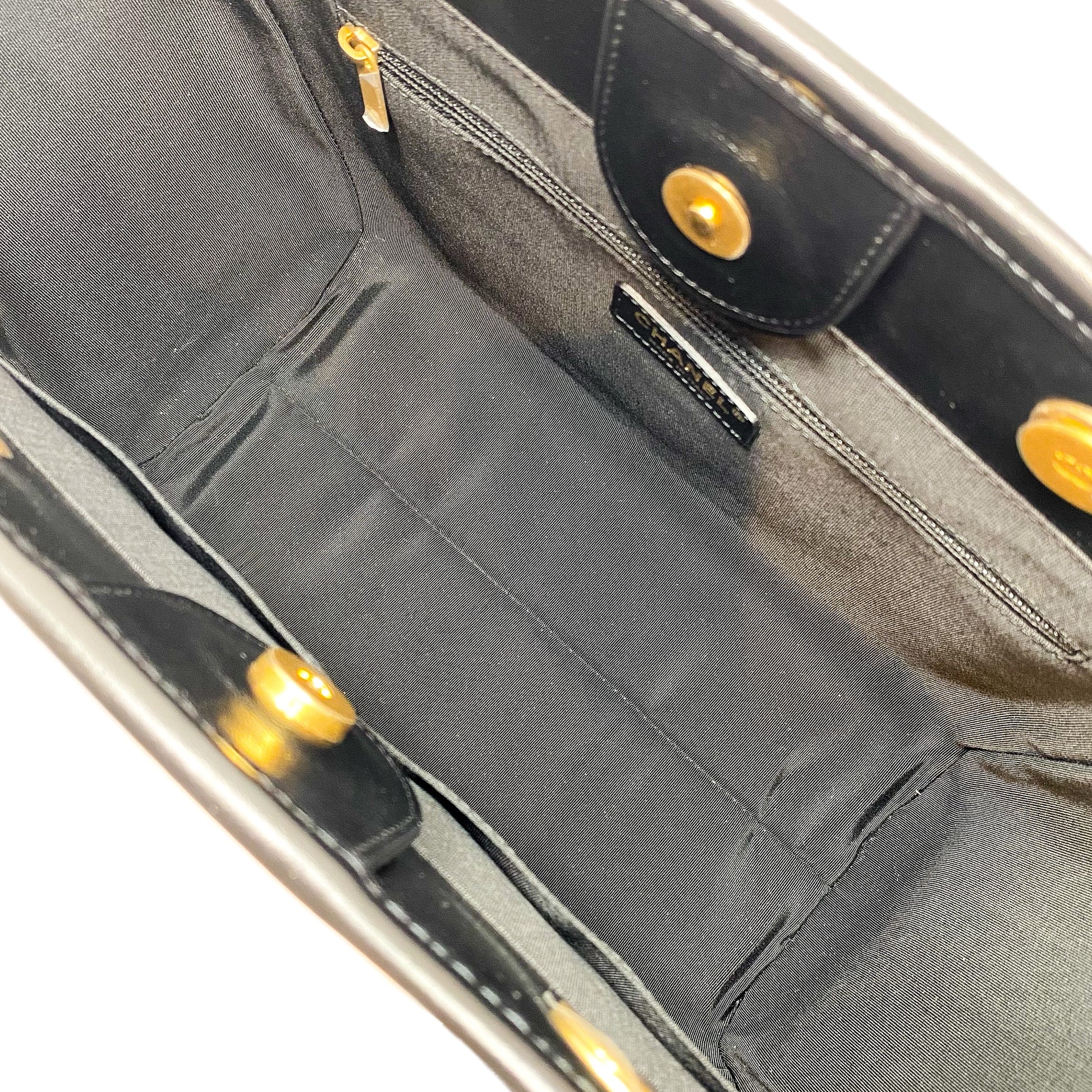 This is a Chanel Black Charms Medium Deauville in glazed calfskin with gold hardware. This chic Deauville features two 10.5-inch straps and “CHANEL PARIS” written on the front with decorative letters. A snap closure opens the handbag to a black fabric lined interior that features two patch pockets and a zipper pocket. This Deauville is an amazing tote for everyday use!