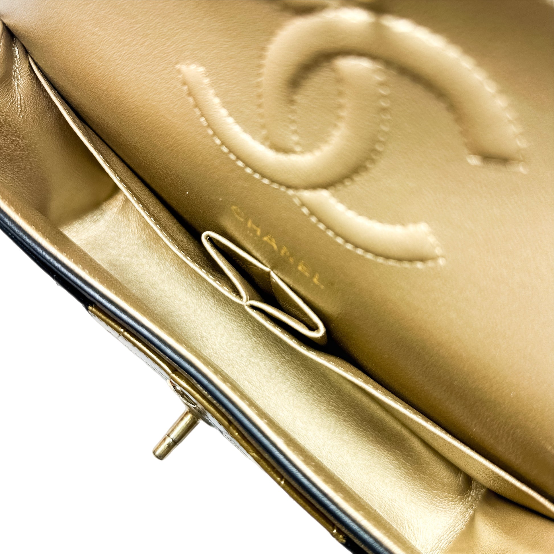 Chanel Black Gold Egypt Crocodile Python Embossed Medium Flap Bag