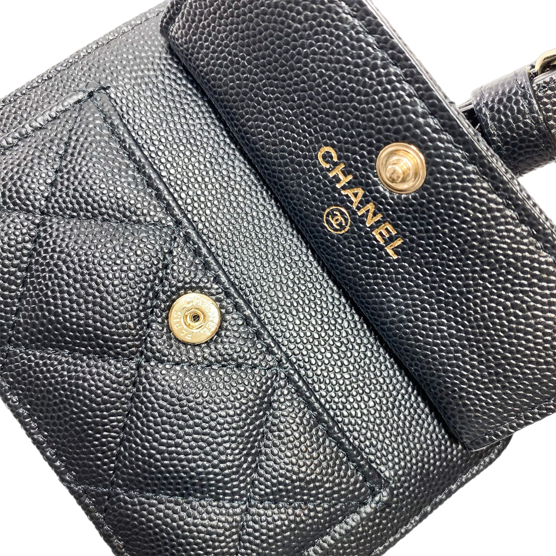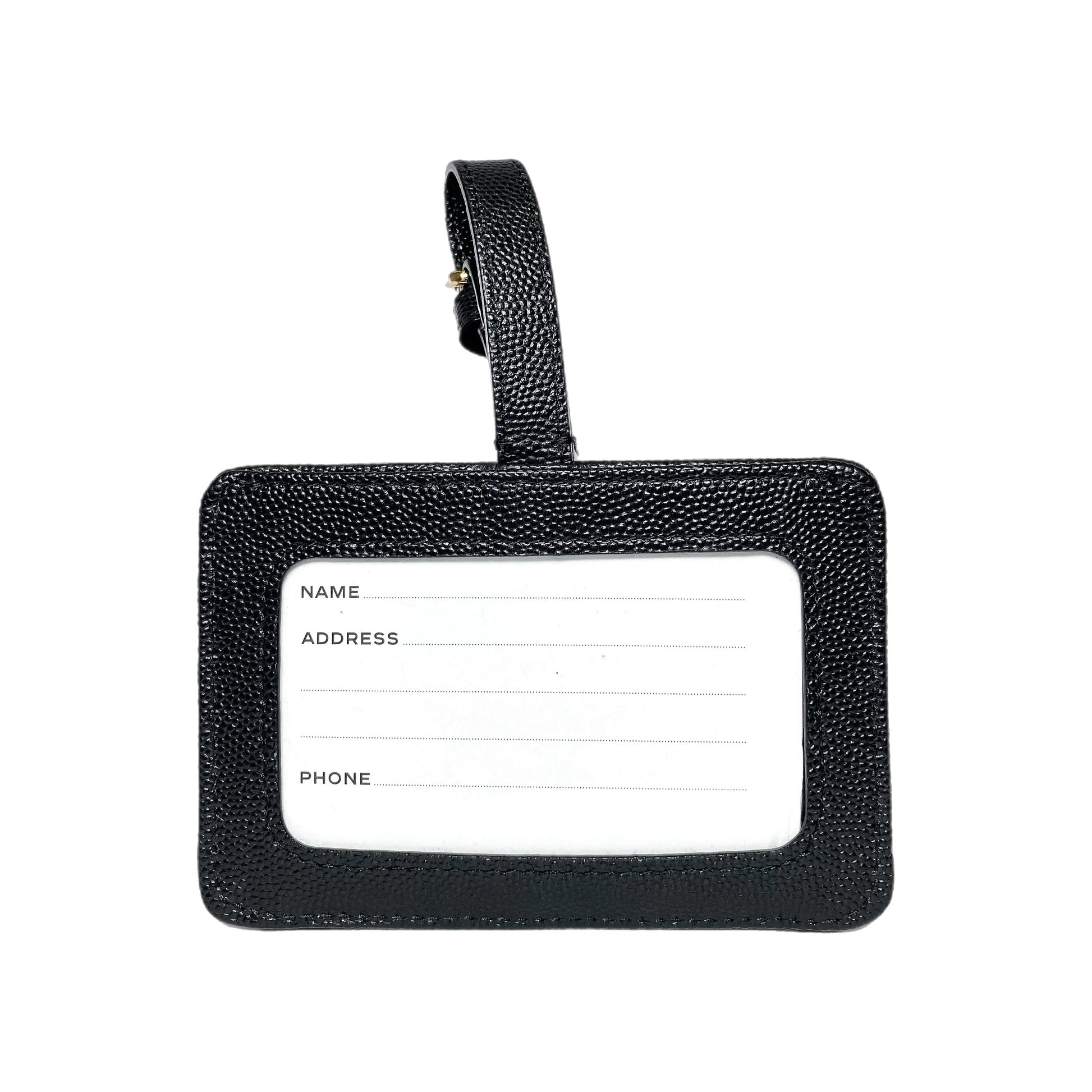 This is a Chanel Black Luggage Tag in caviar leather with gold hardware. This stylish luggage tag features a 2.25-inch strap, a front compartment, and a luggage tag insert. This is an amazing luggage tag for your travels!