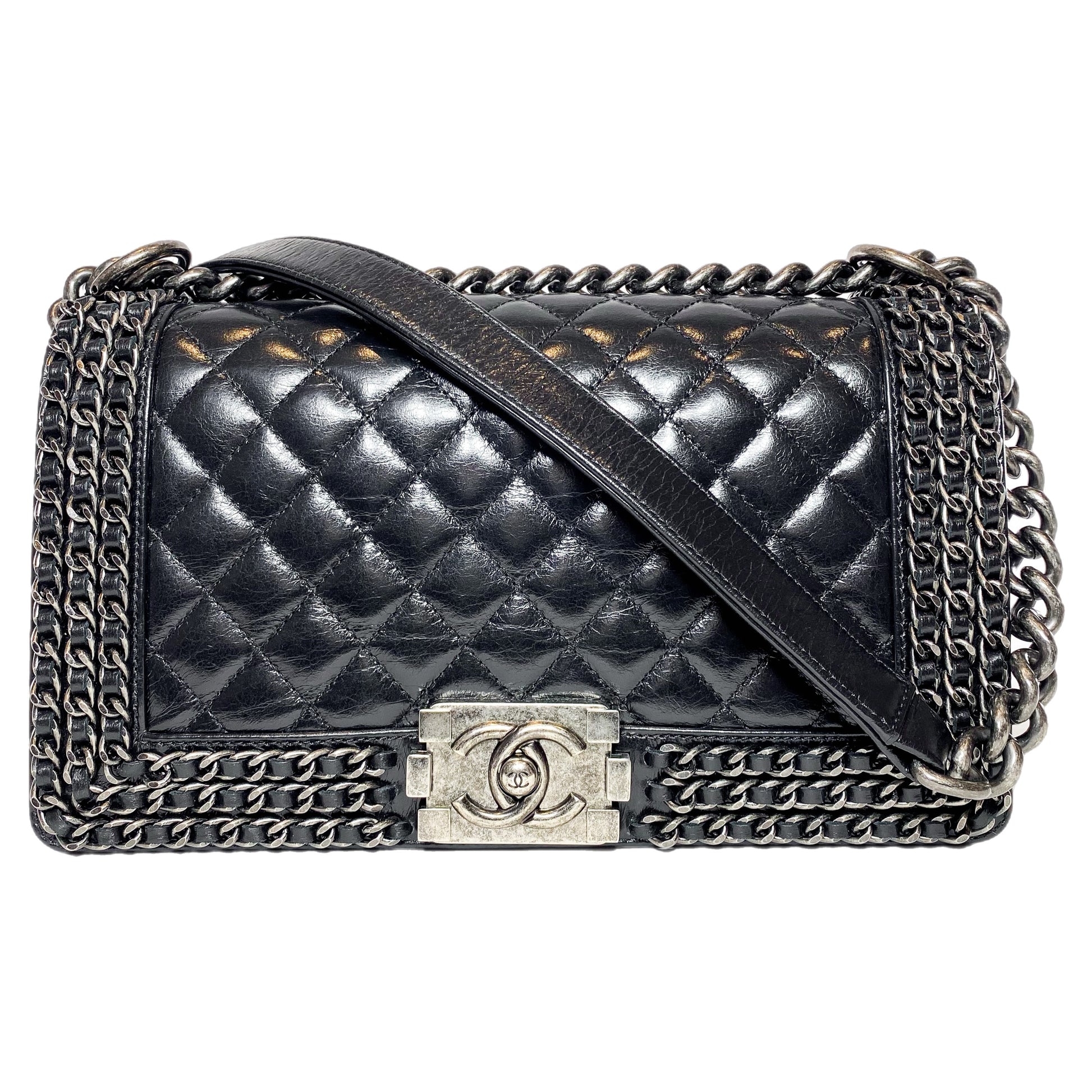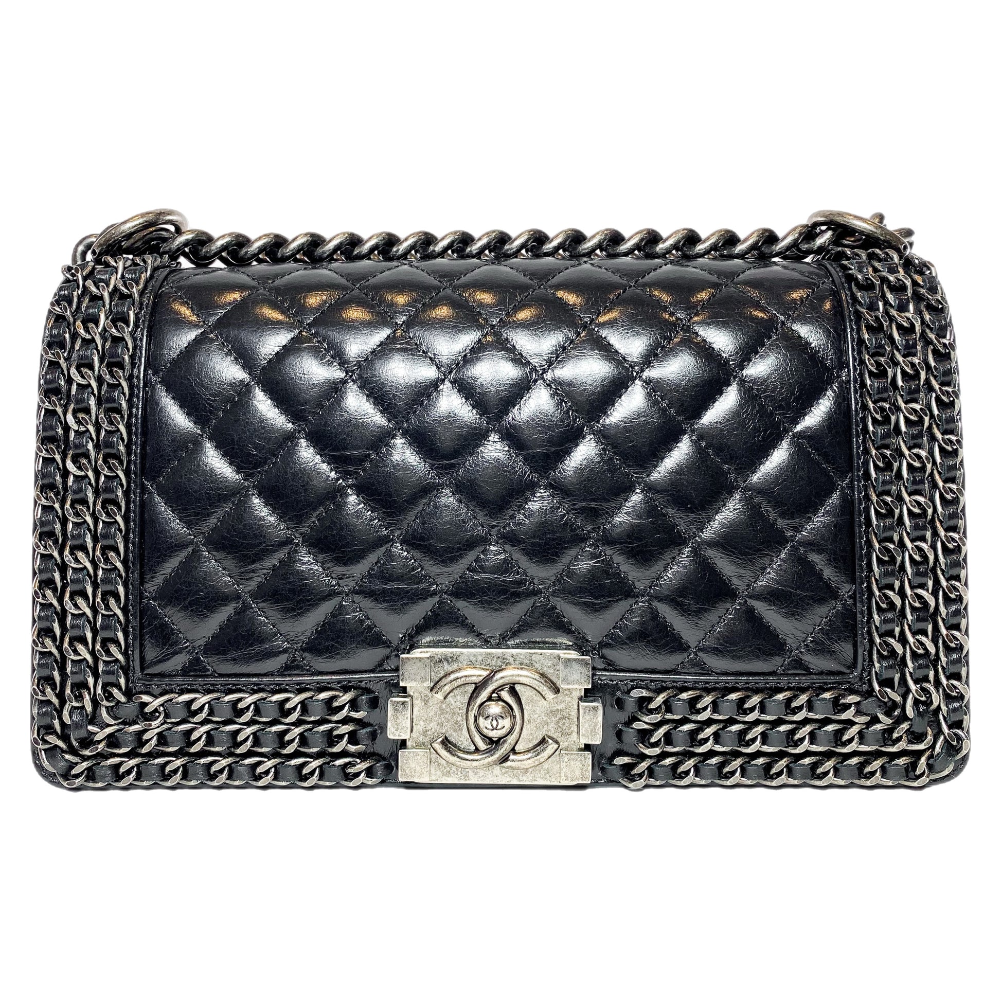 Chanel Black Old Medium Chain Around Boy Bag