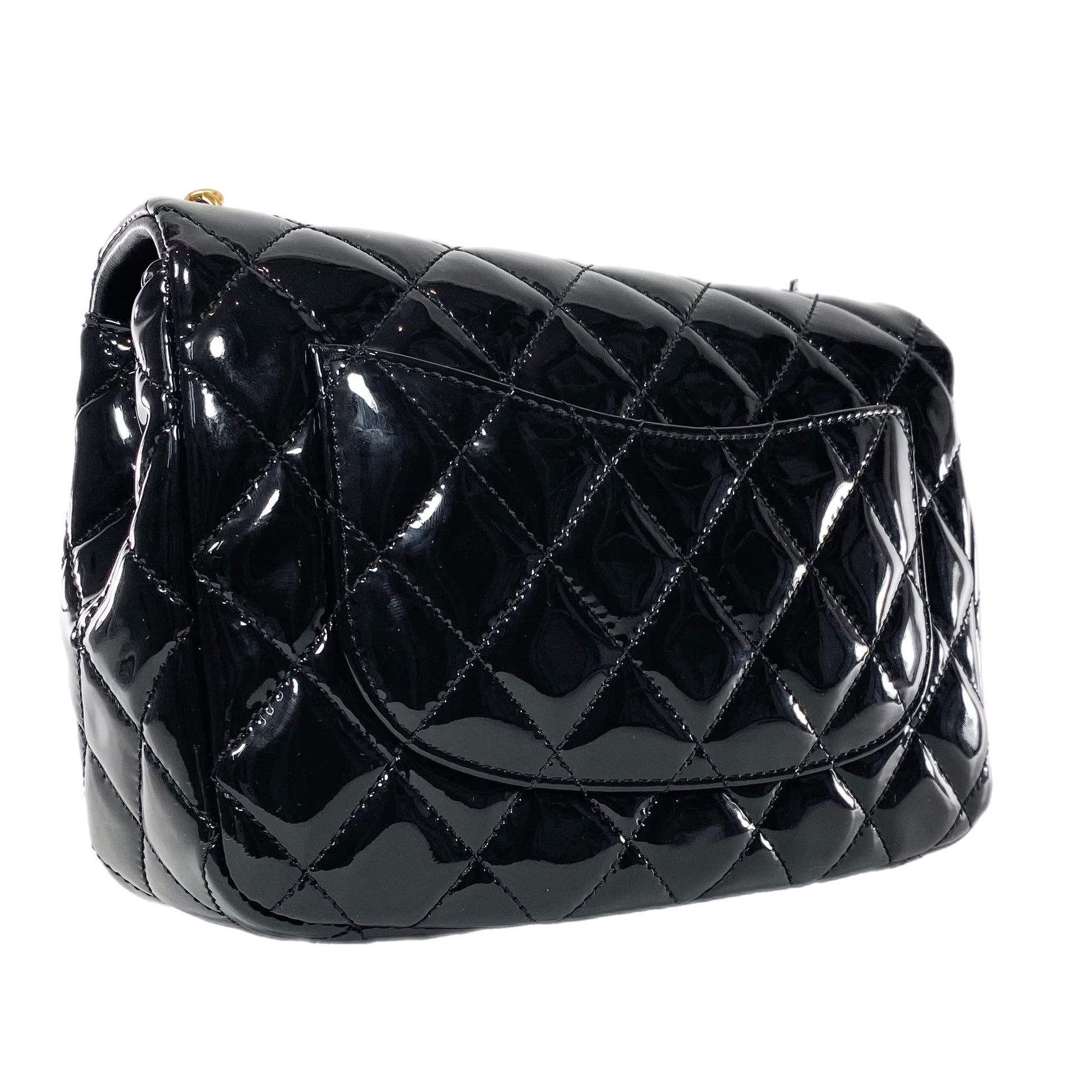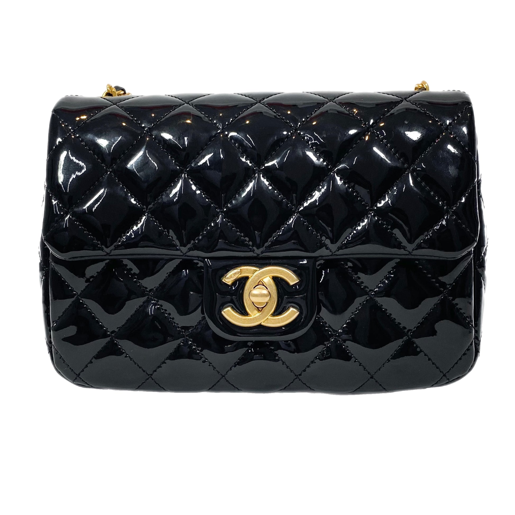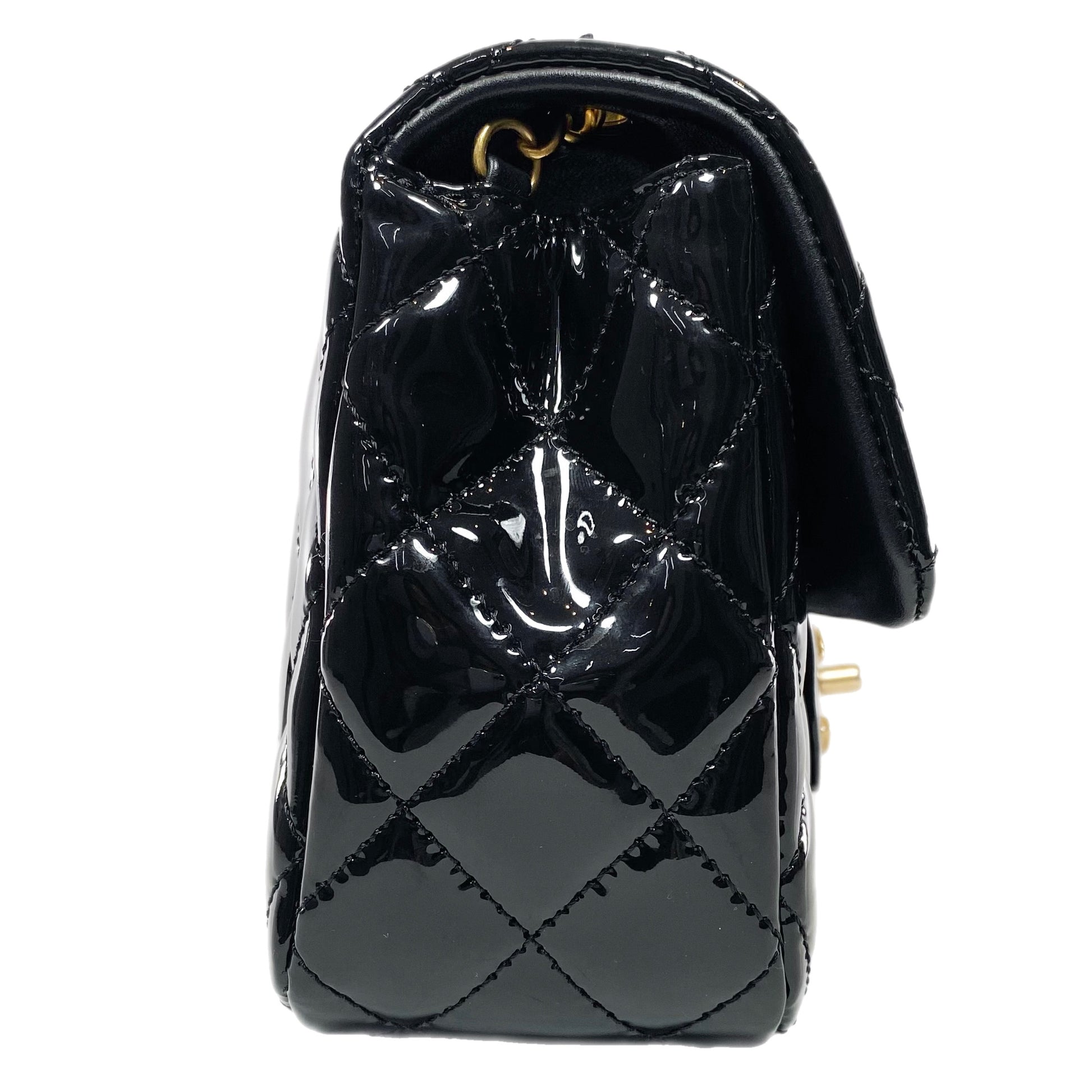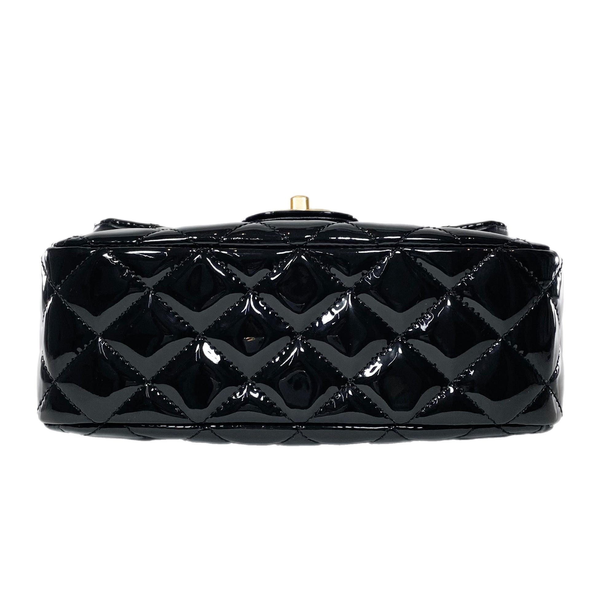 Chanel Black Patent Enamel Quilted Mini Coco Hearts Square Flap