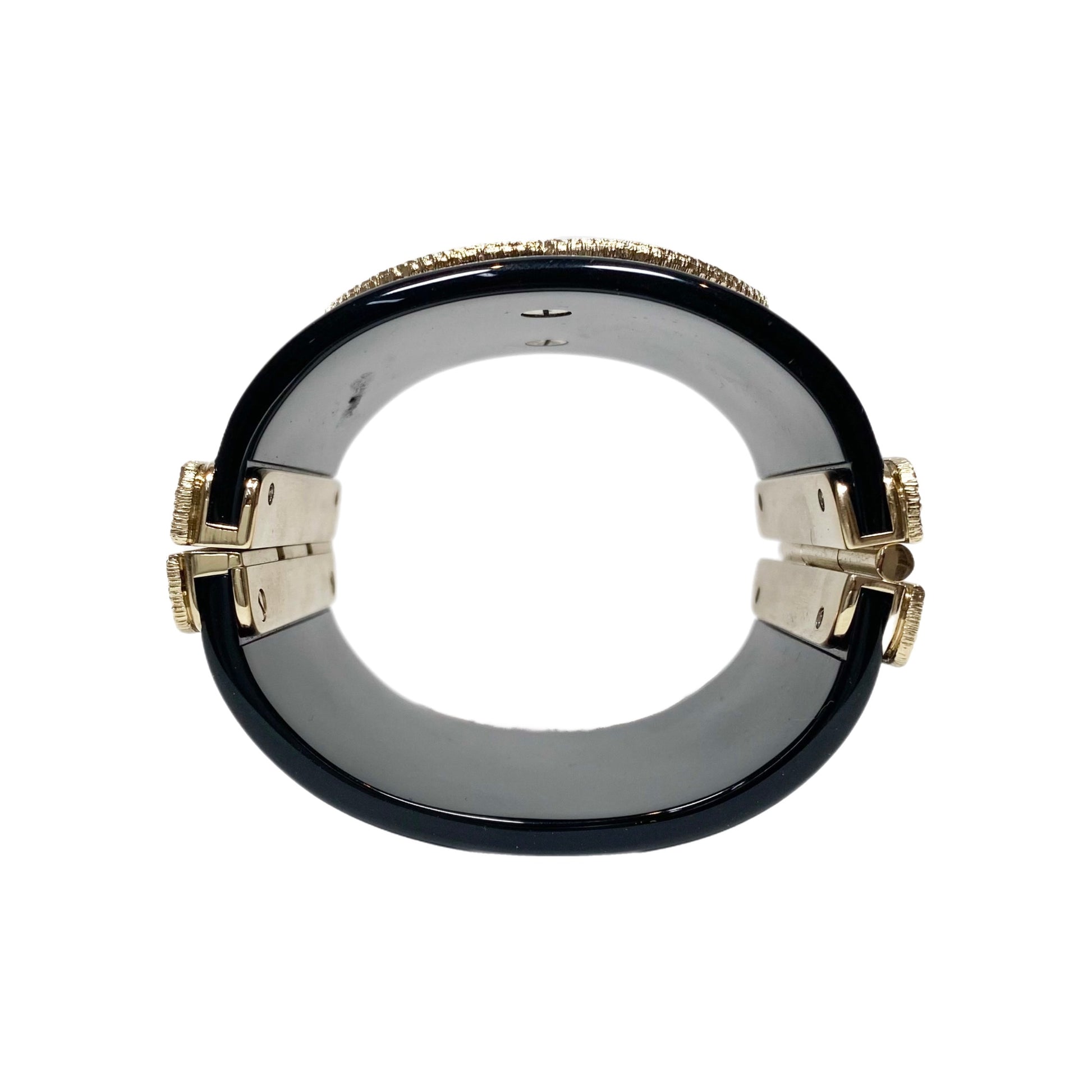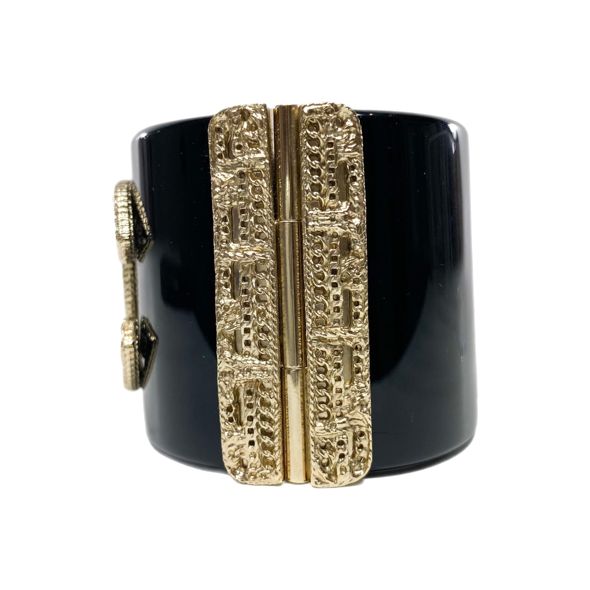 Chanel Black Resin and Gold Filigree CC Cuff