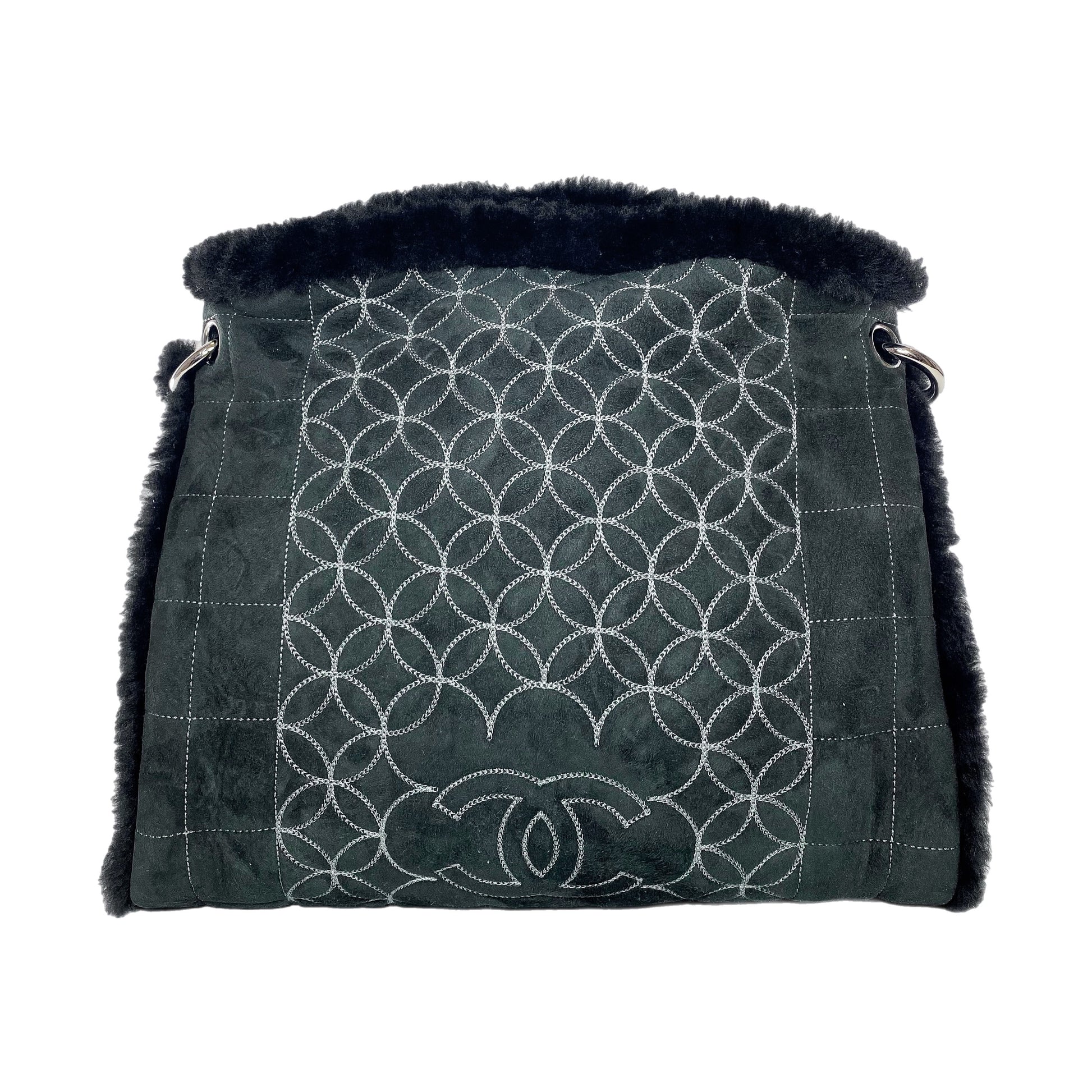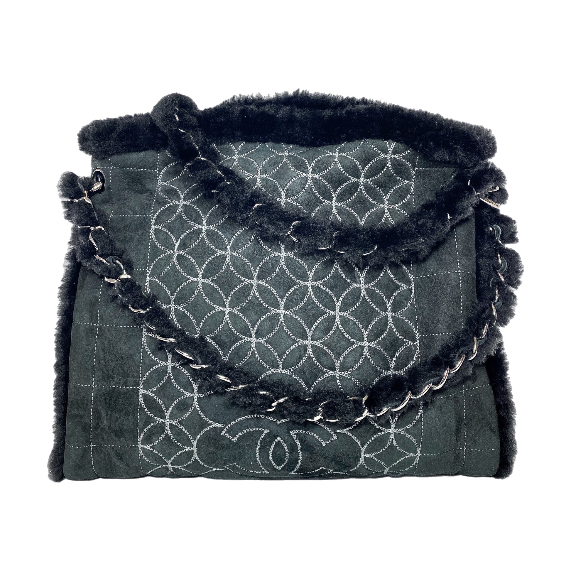 Chanel Black Suede Sherpa Shoulder Bag