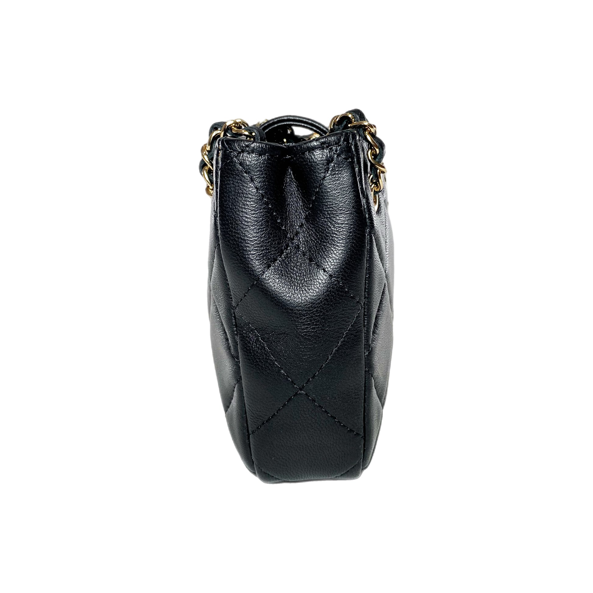 This is a Chanel Black Tiny Shopping Clutch with Chain in lambskin leather with silver hardware. This chic clutch features two 21-inch straps and a “CC” on the front. The interior is lined in black fabric. This is a wonderful accessory for any occasion!