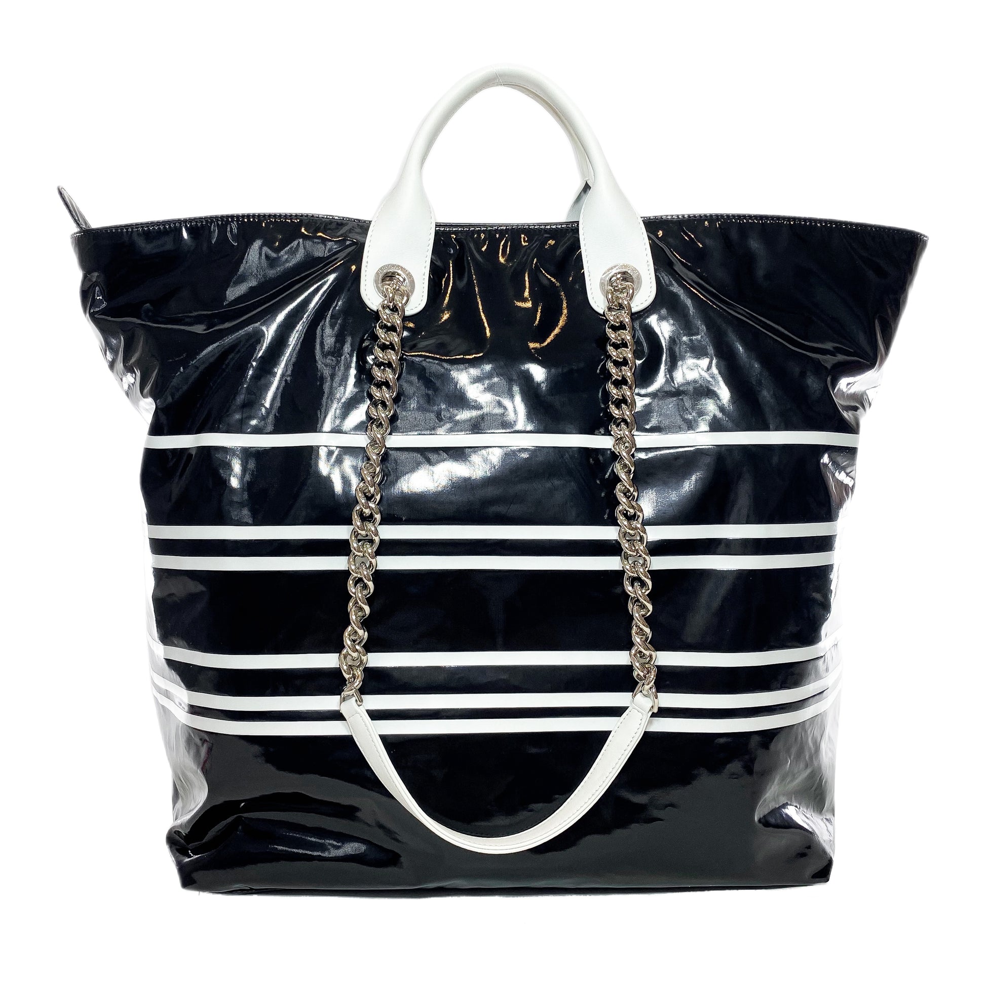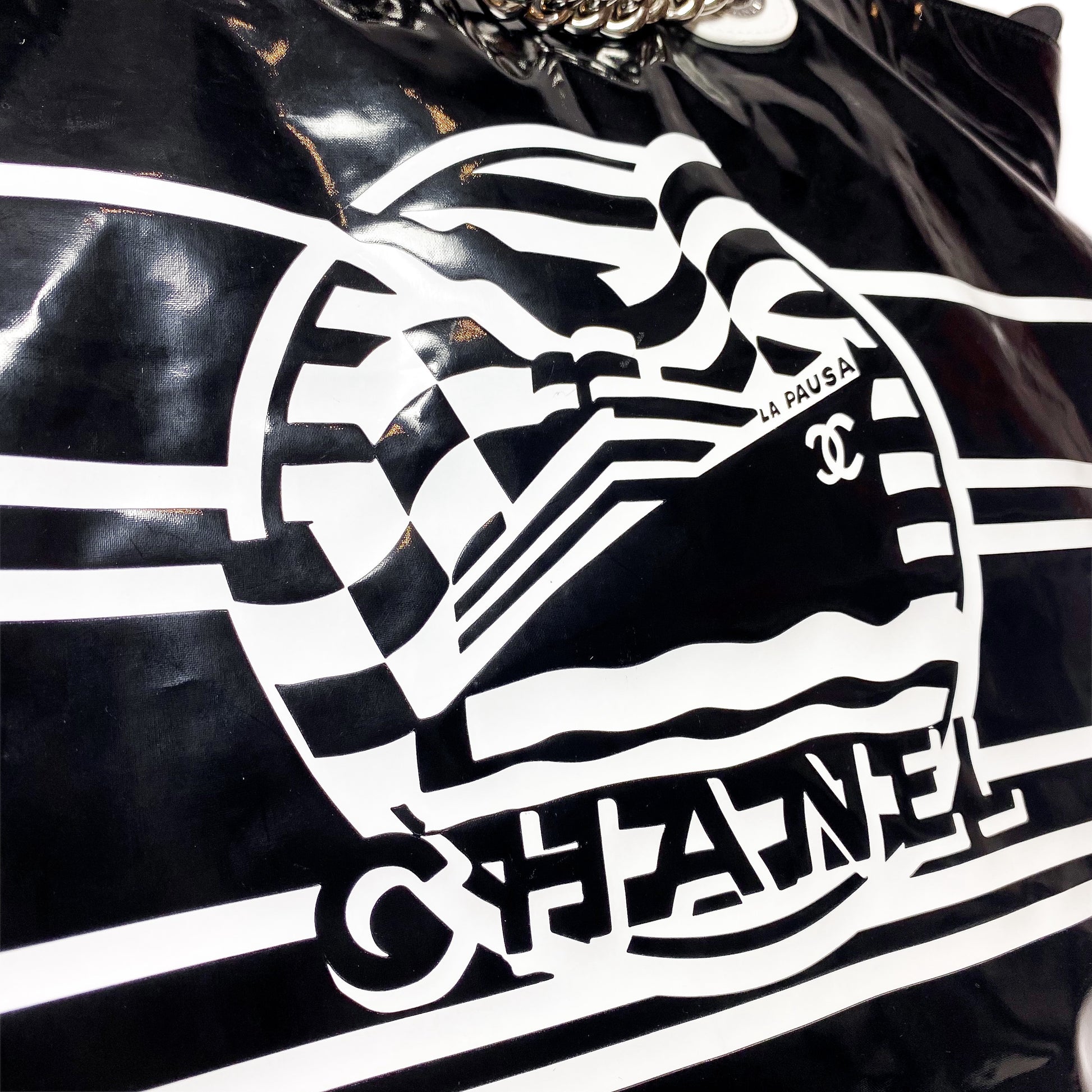 Chanel Black White Vinyl La Pausa Bay Shopping Bag