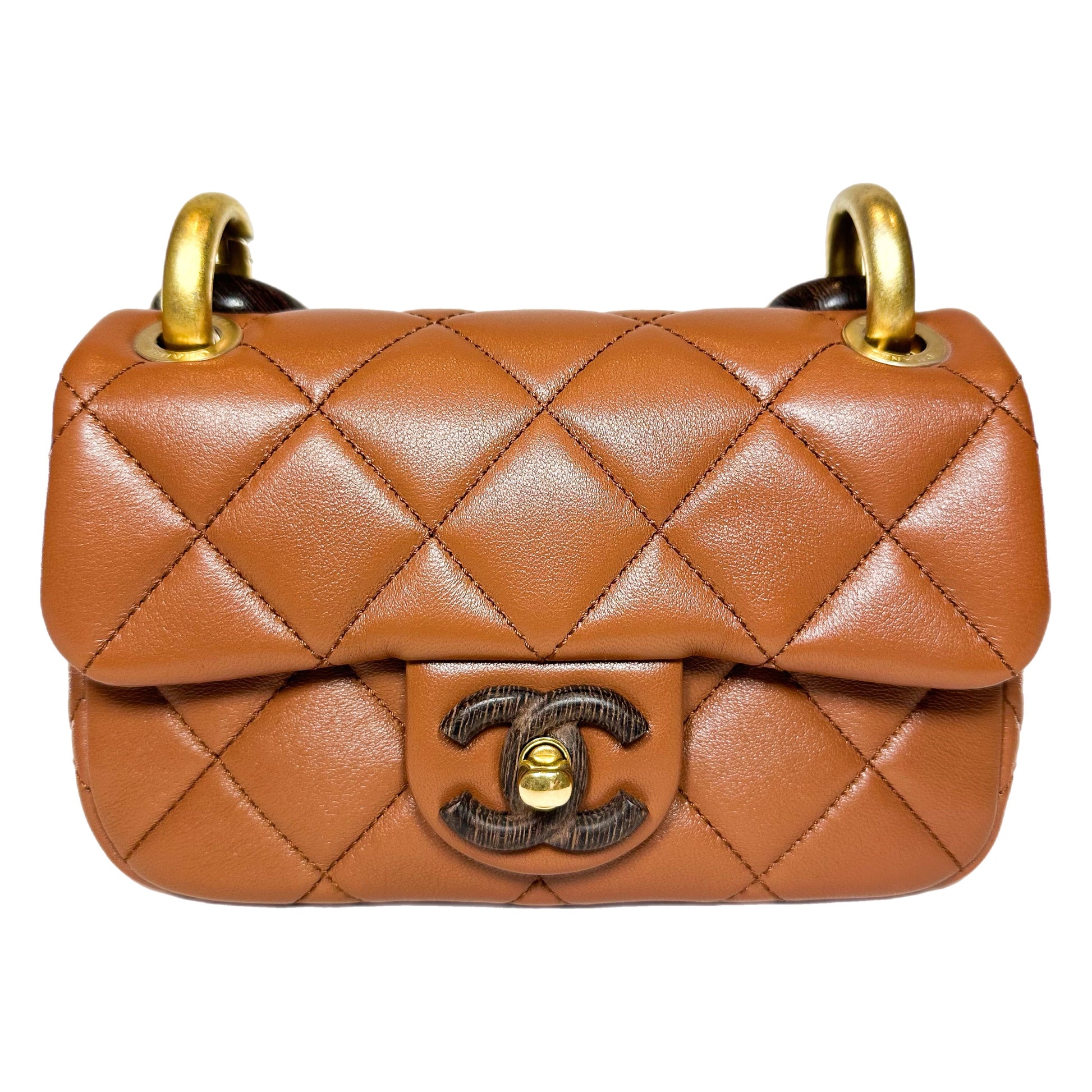 Chanel Caramel Brown Paris-Dakar Wenge Wood Mini Rectangular Flap Bag