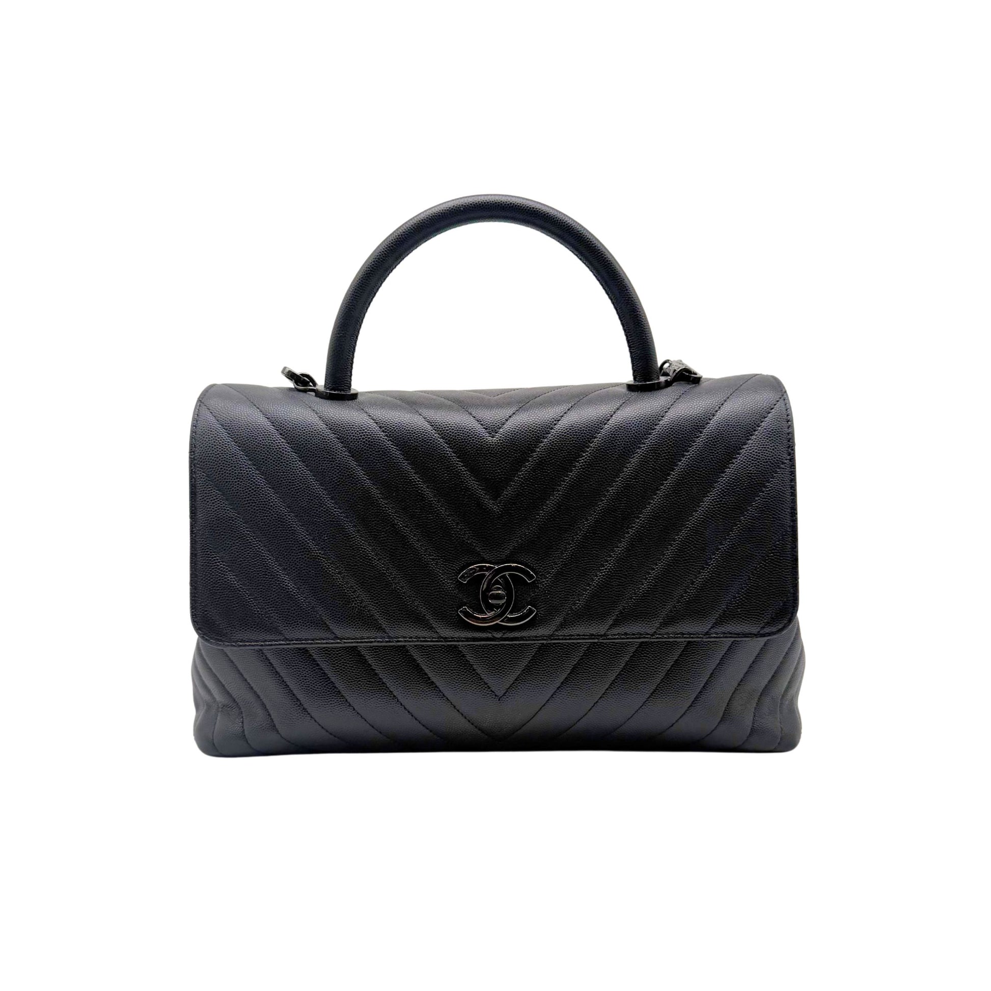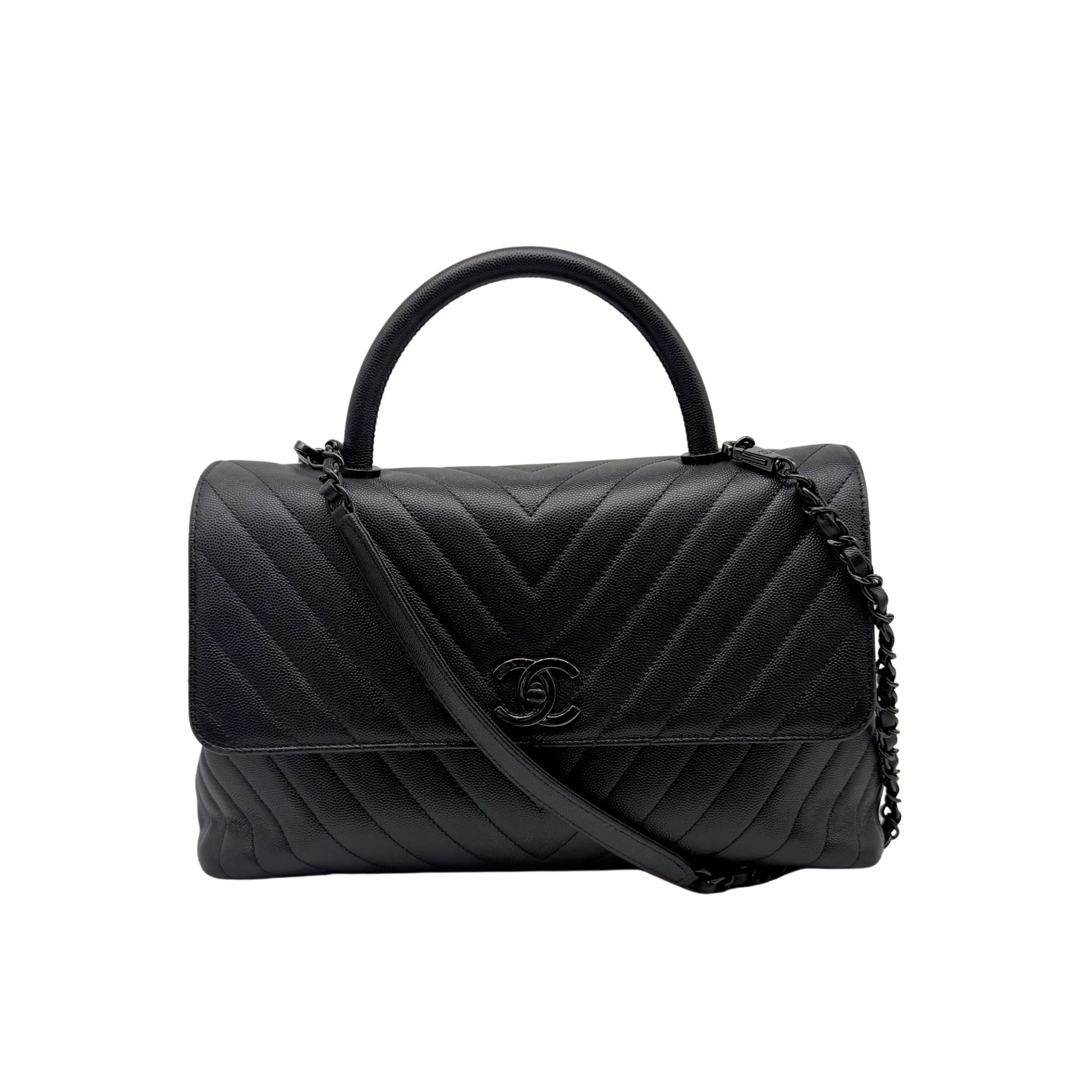 Chanel Coco Handle Flap Bag in Chevron Caviar with So Black Hardware