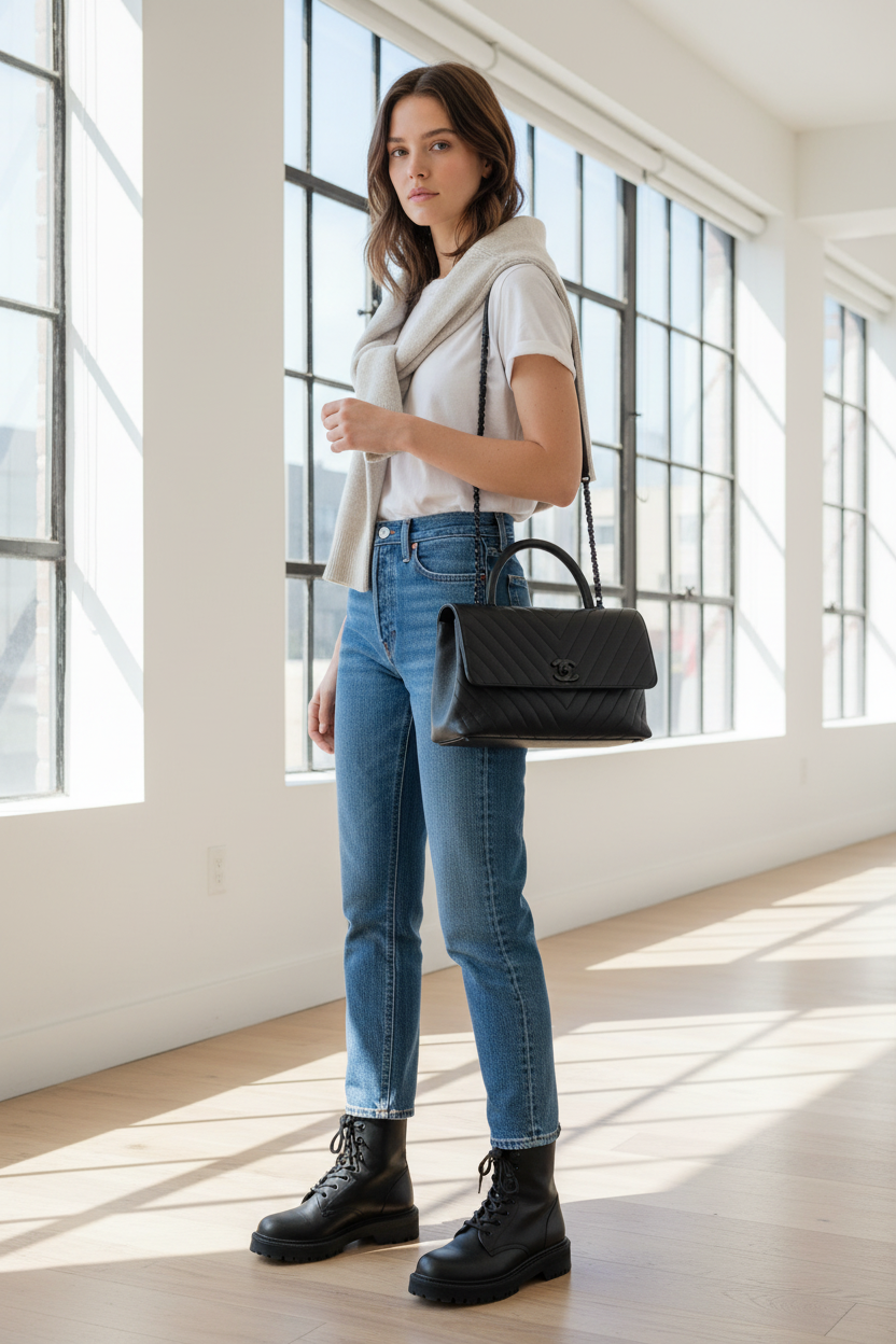 The Chanel Coco Handle Flap Bag is crafted in chevron-quilted caviar leather, and finished with rare tonal “so black” hardware. This bag is the perfect sleek and understated staple!