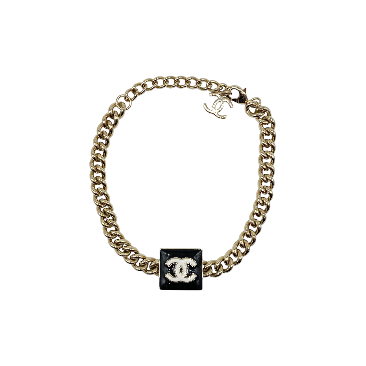 Chanel Gold Black Square CC Choker