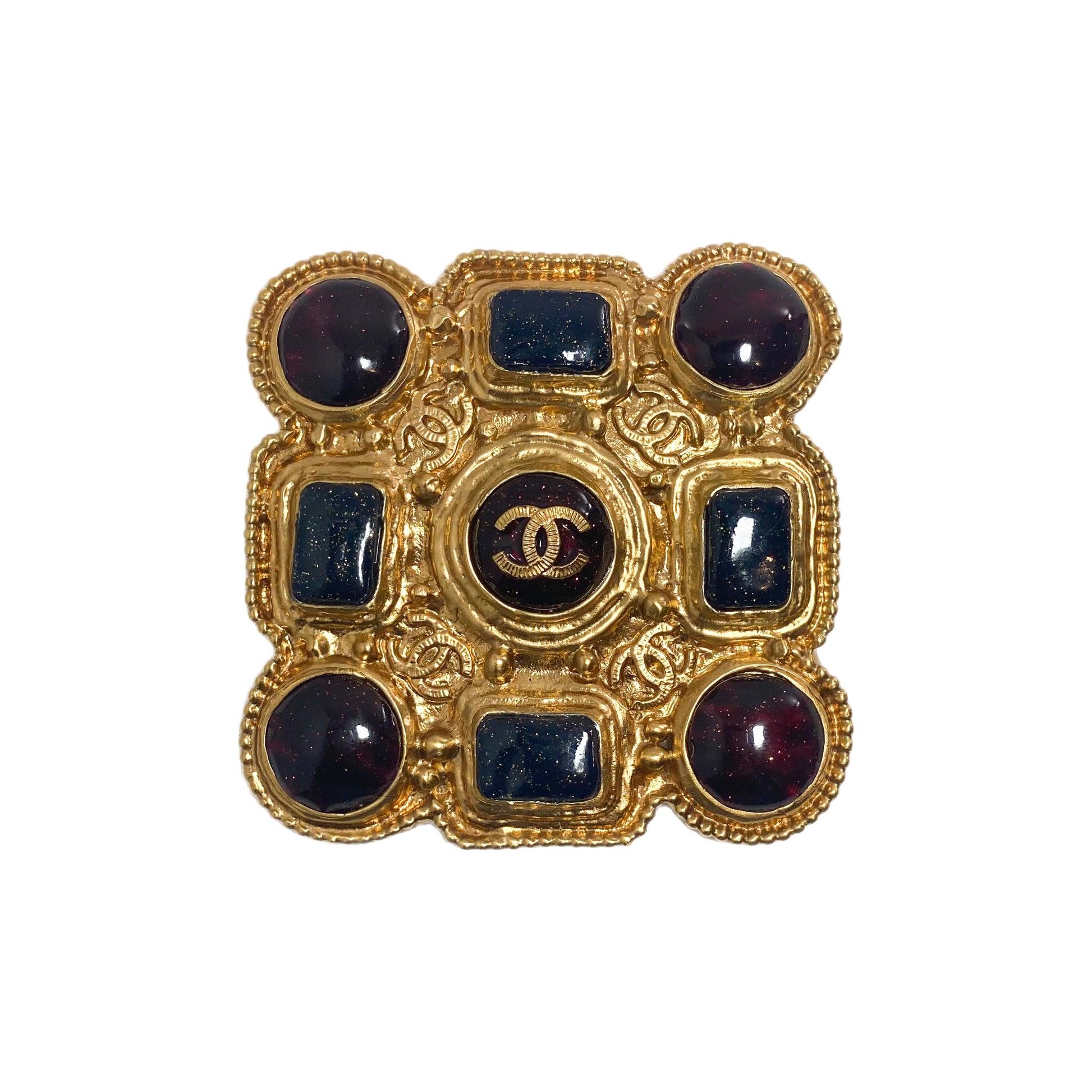 Chanel Gold CC Gripoix Brooch