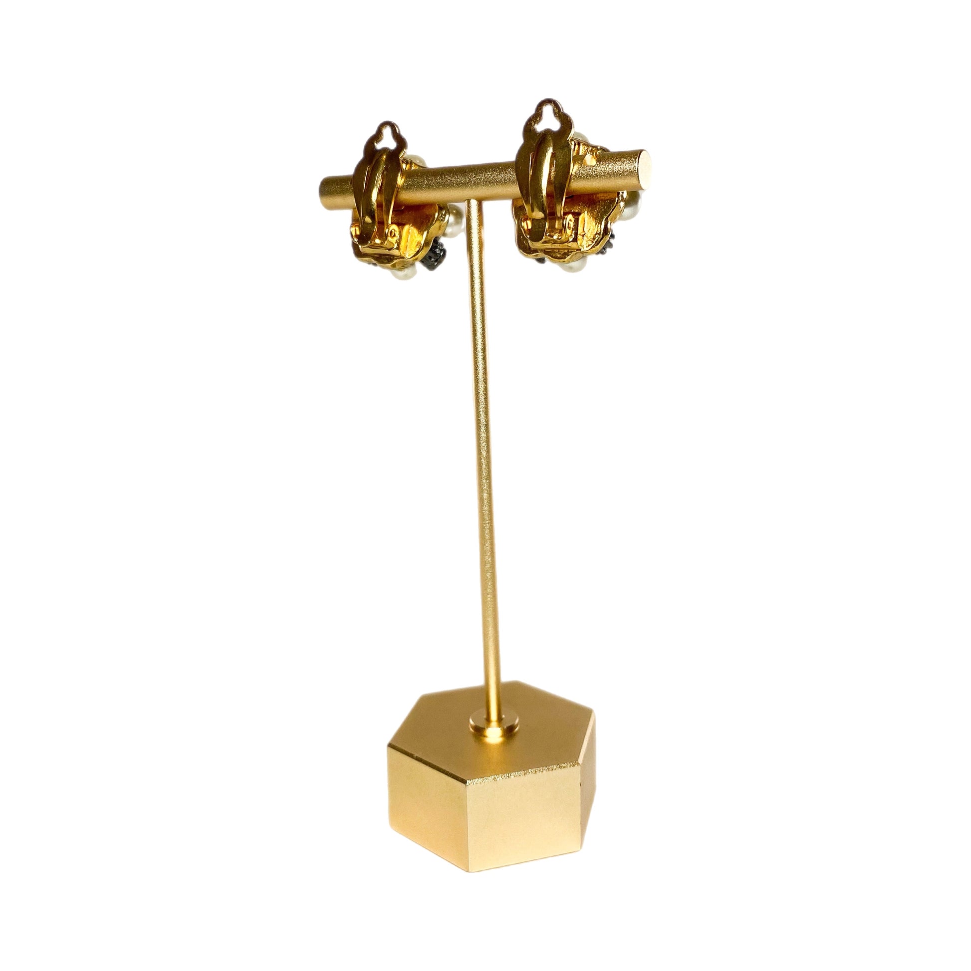 Chanel Gold Crystal Pearl Clip On Vintage Earrings