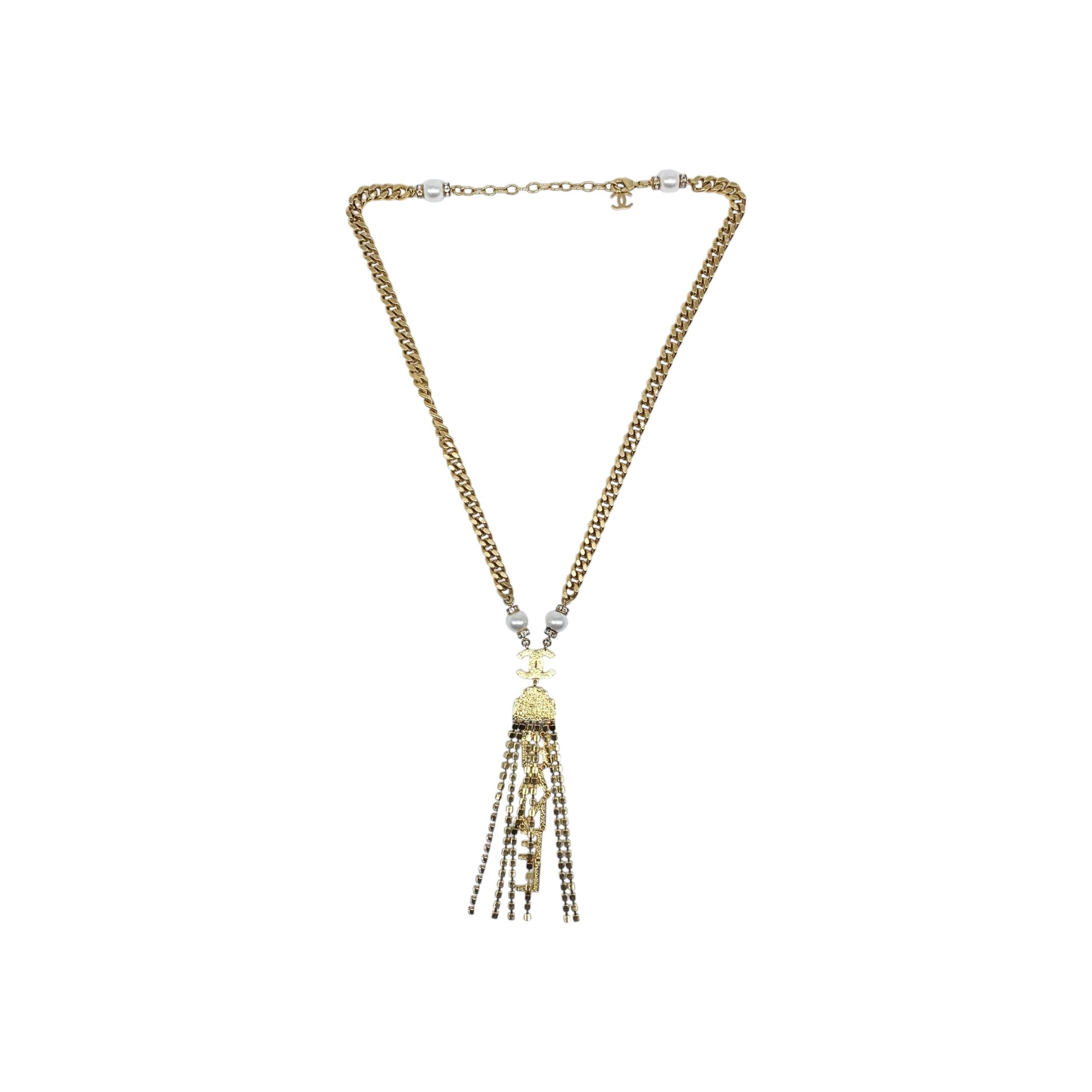 Chanel Gold Letter Crystal Lariat Necklace