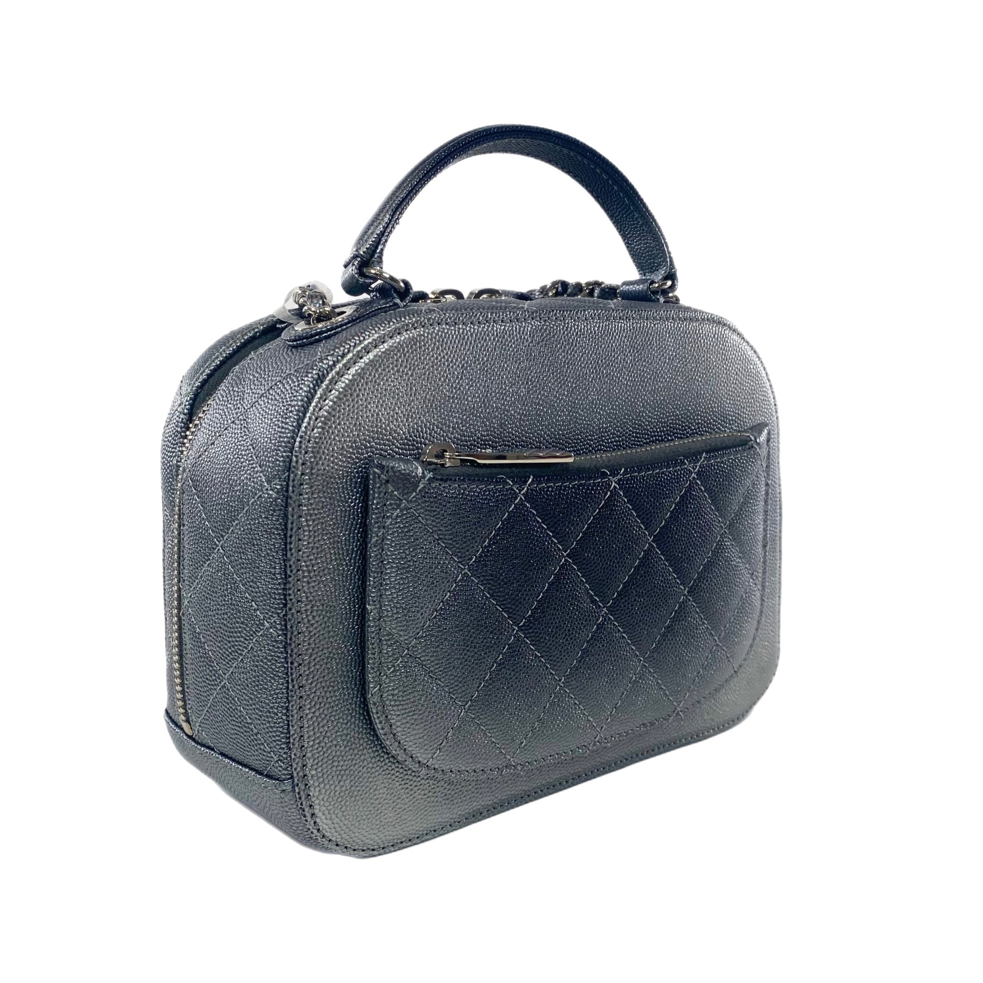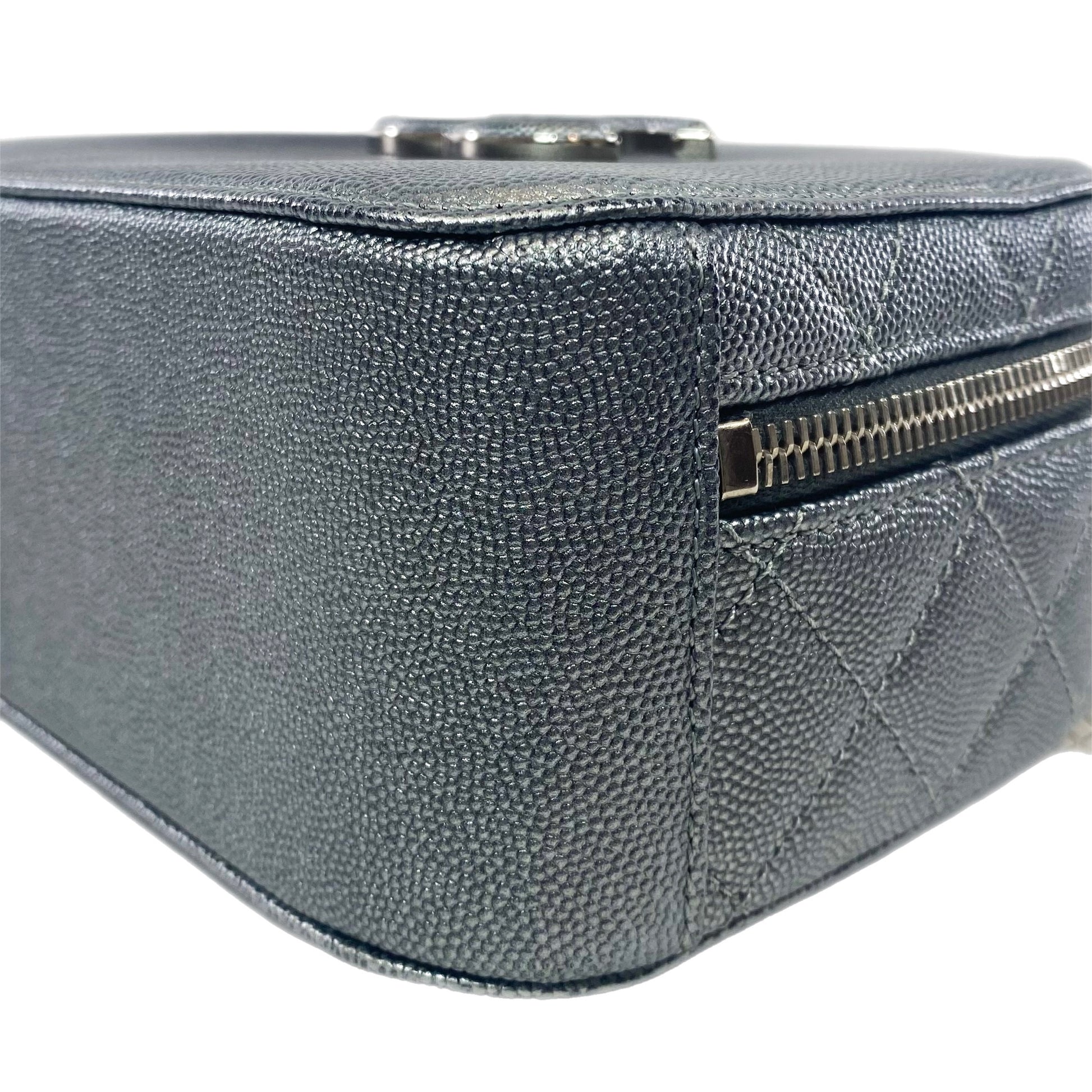 Chanel Gray Metallic Caviar Small Coco Vanity Case