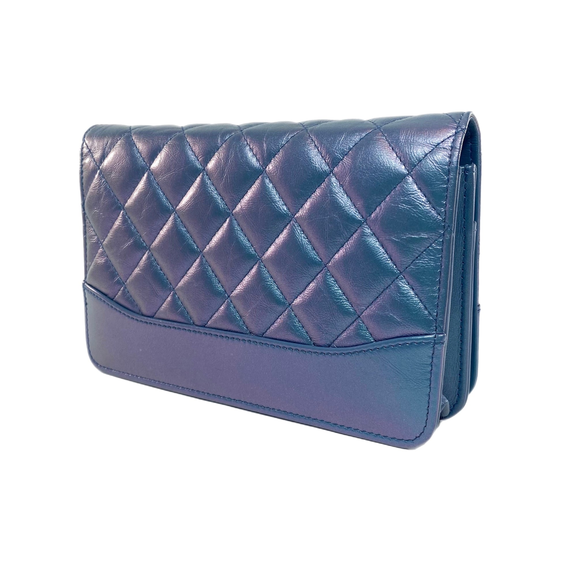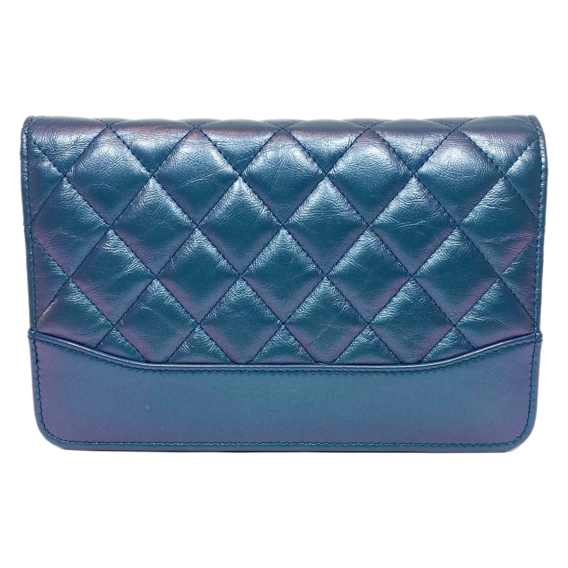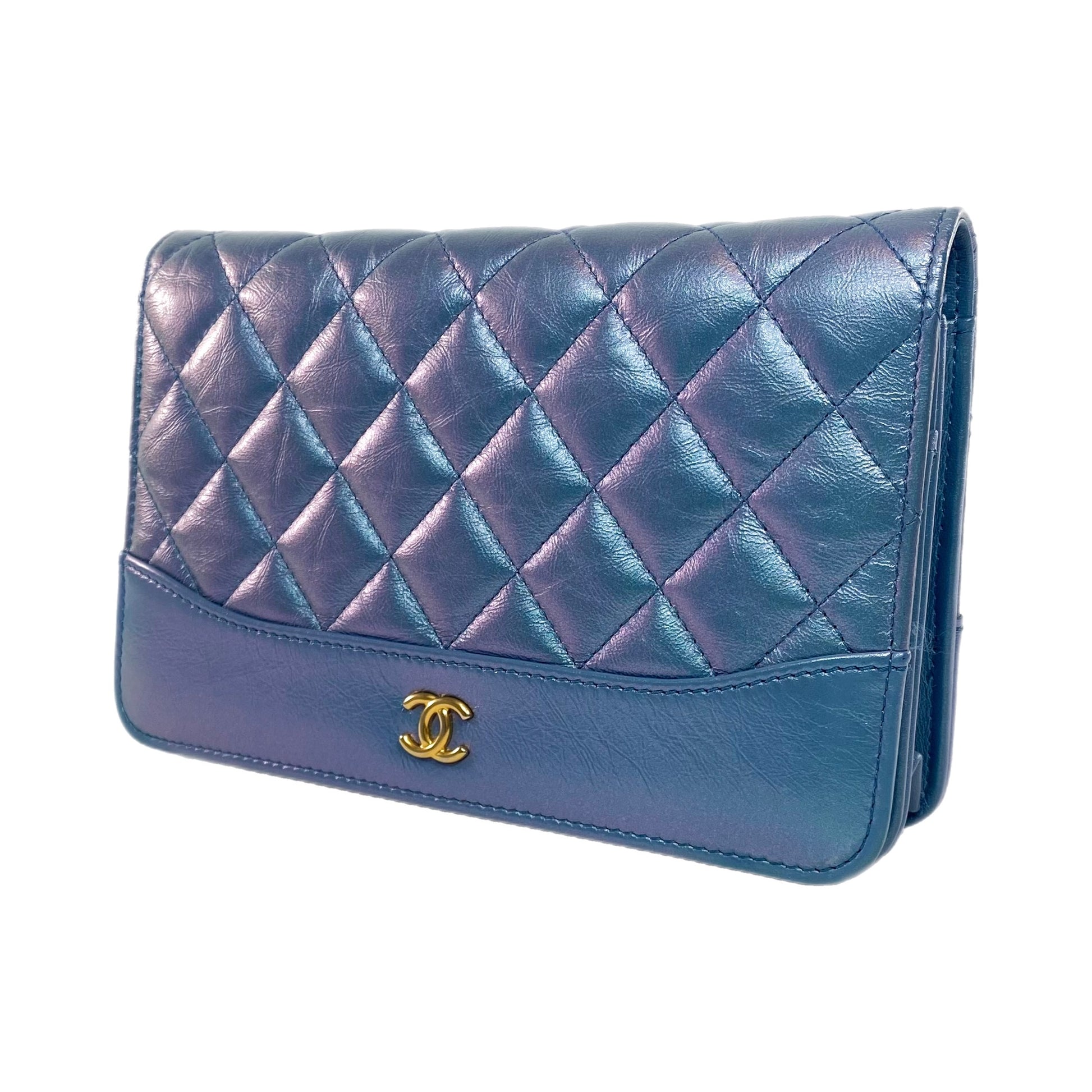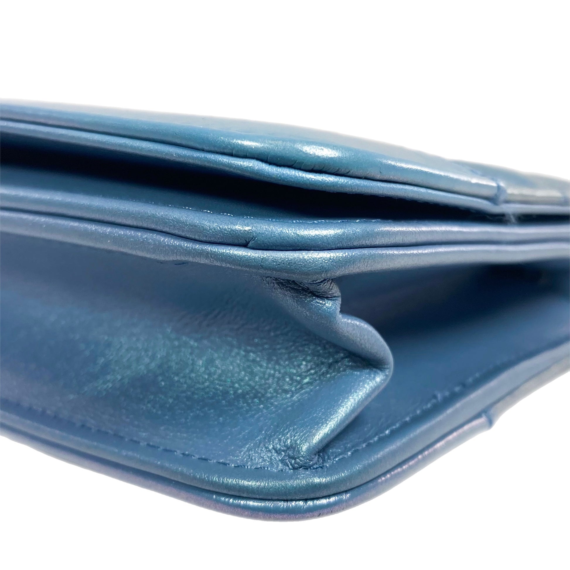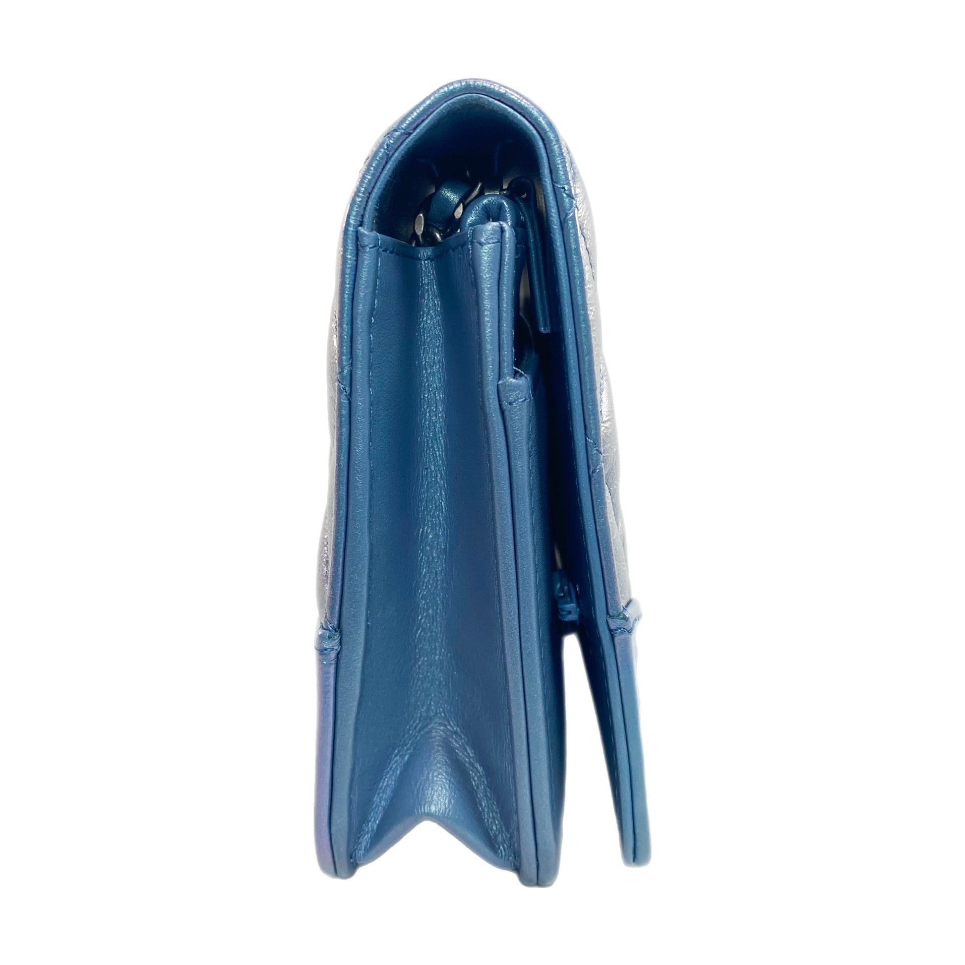 Chanel Iridescent Blue Quilted Calfskin Wallet On Chain