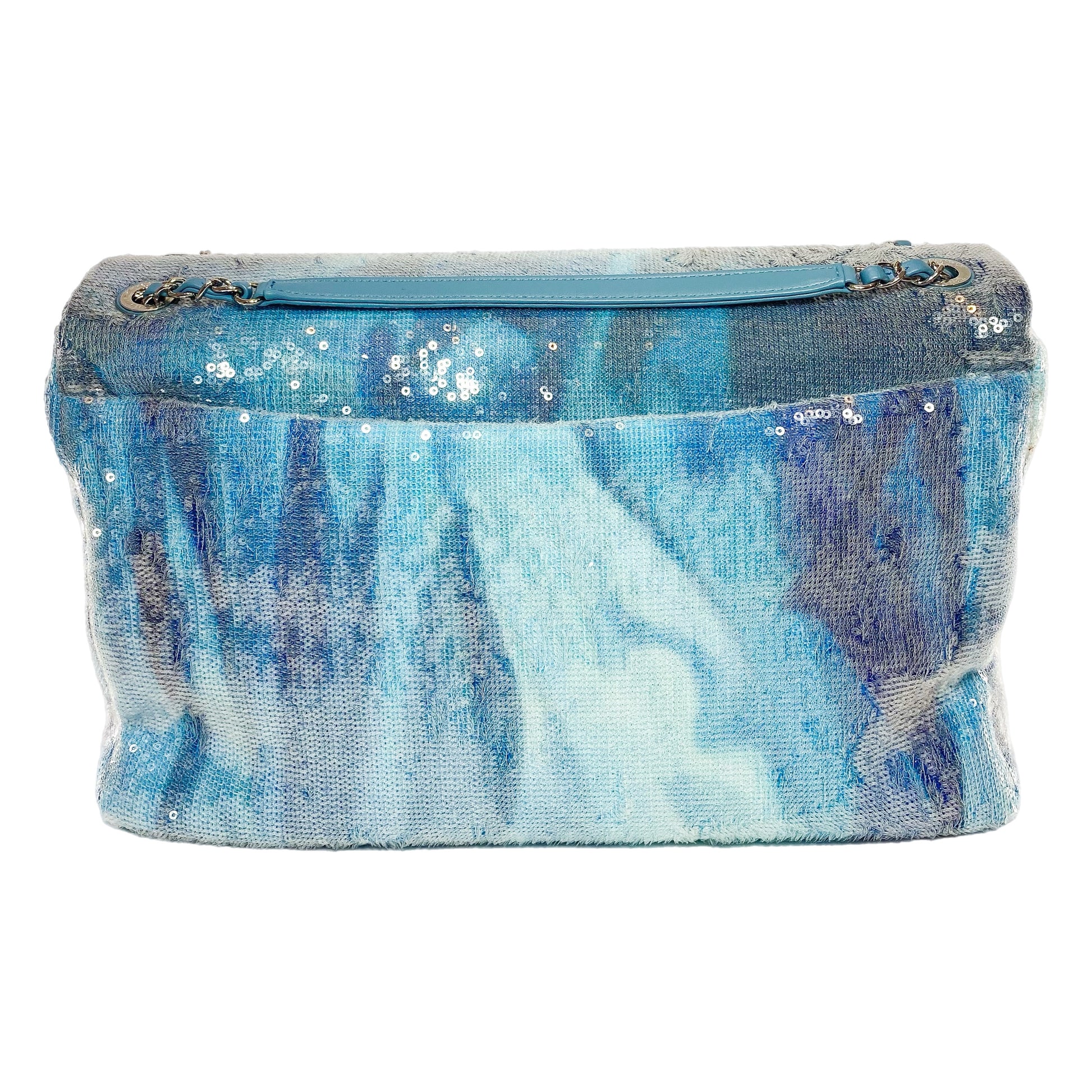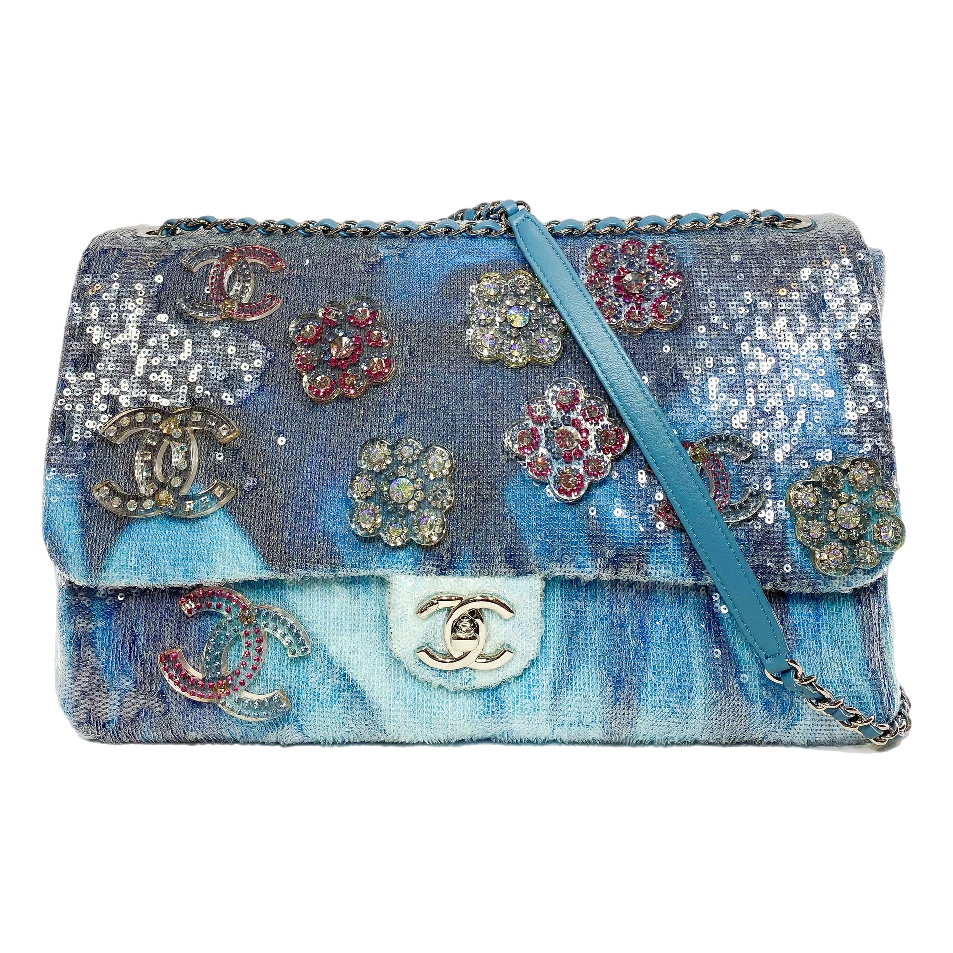 Chanel Light Blue Sequin Resin Crystal Large Waterfall Charms Flap Bag