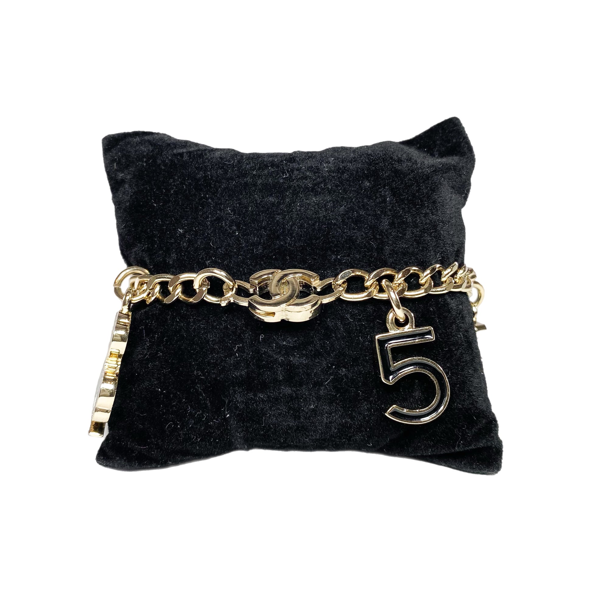 Chanel Light Gold Black Enamel CC Charm Bracelet