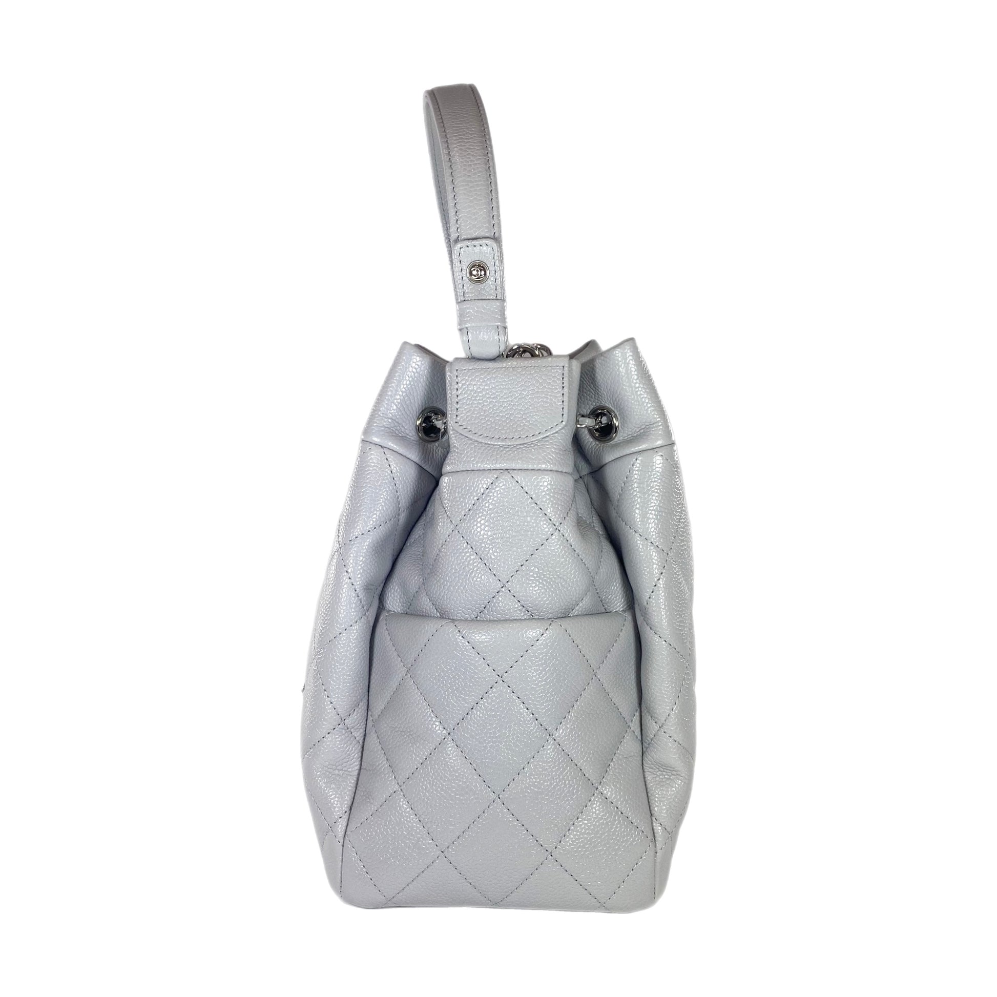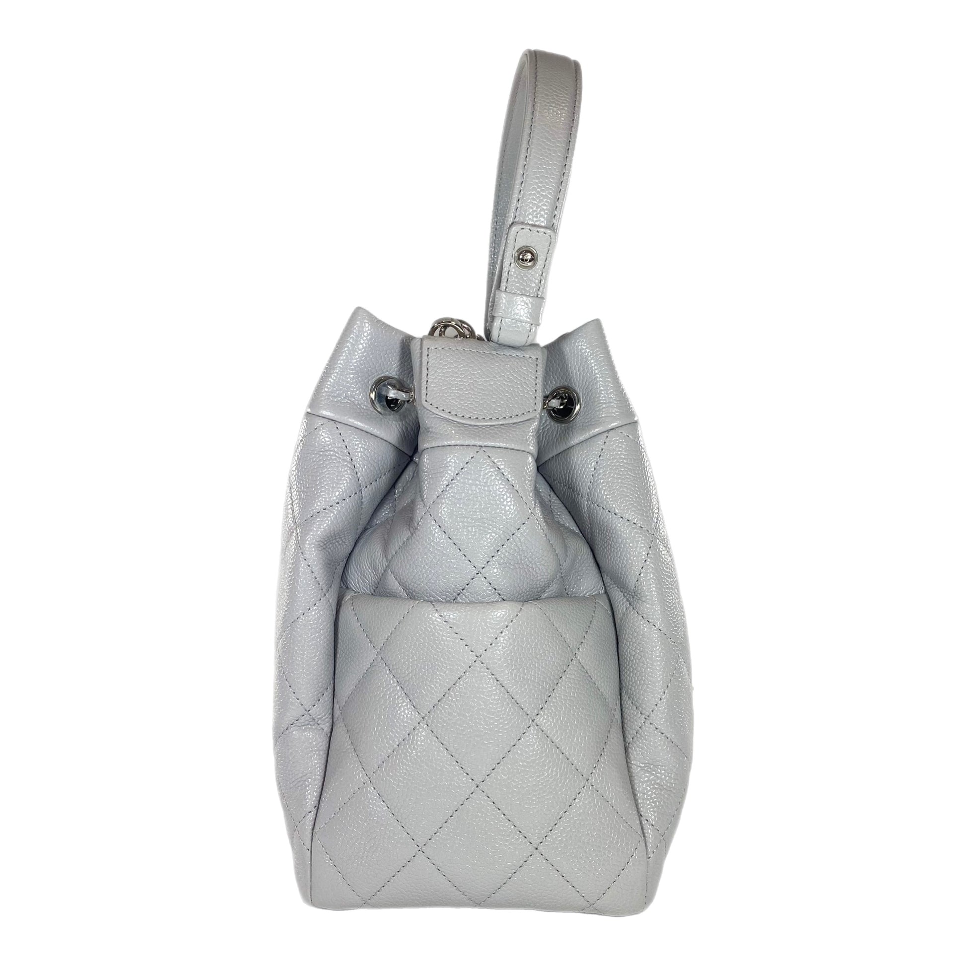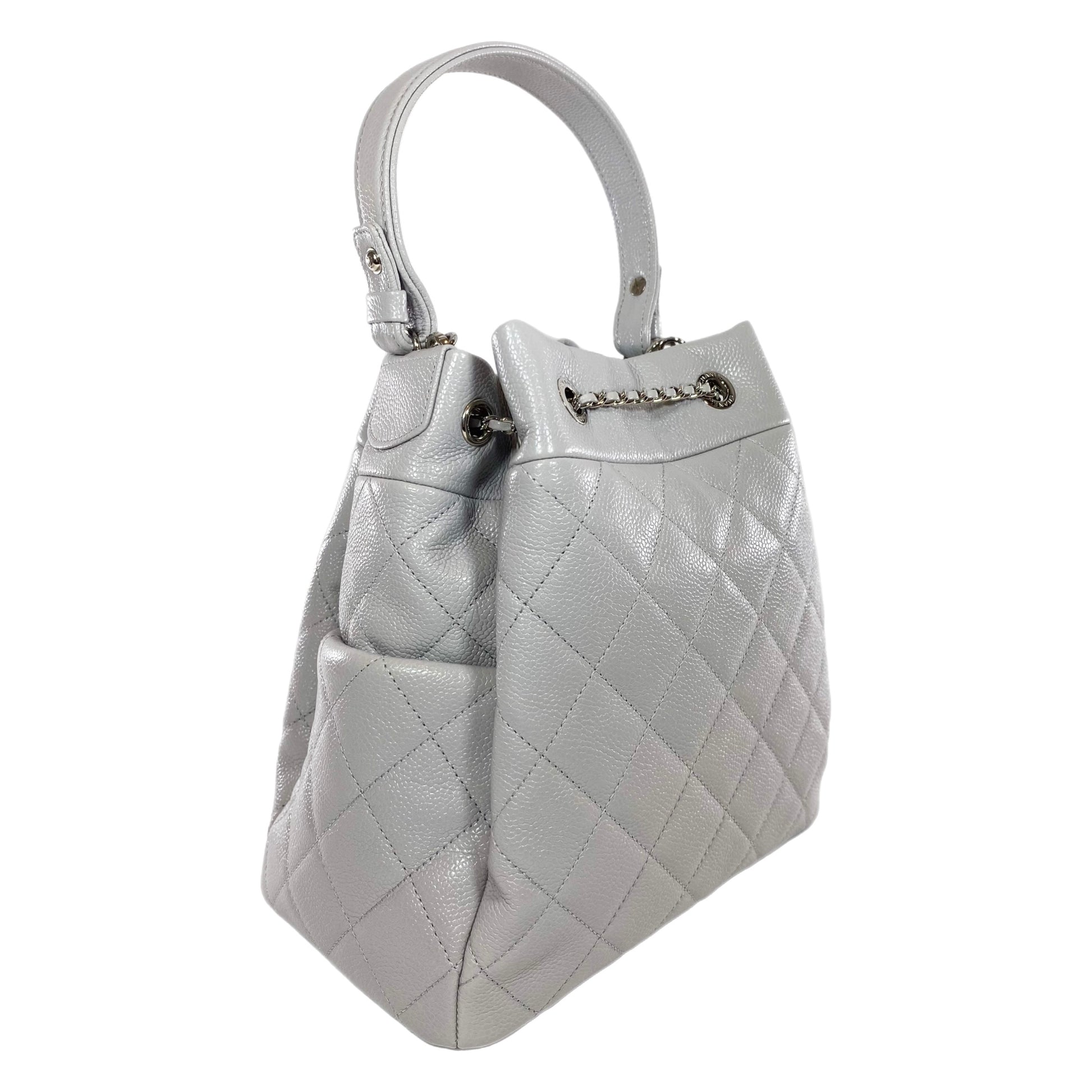 Chanel Light Gray Quilted Caviar Chain Bucket Bag