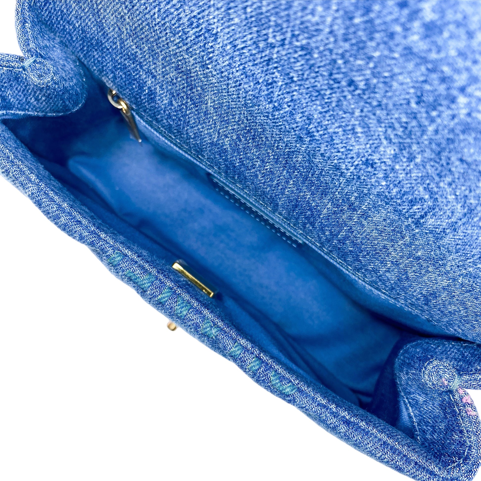 Chanel Logo Printed Denim Mood Rectangular Flap Bag