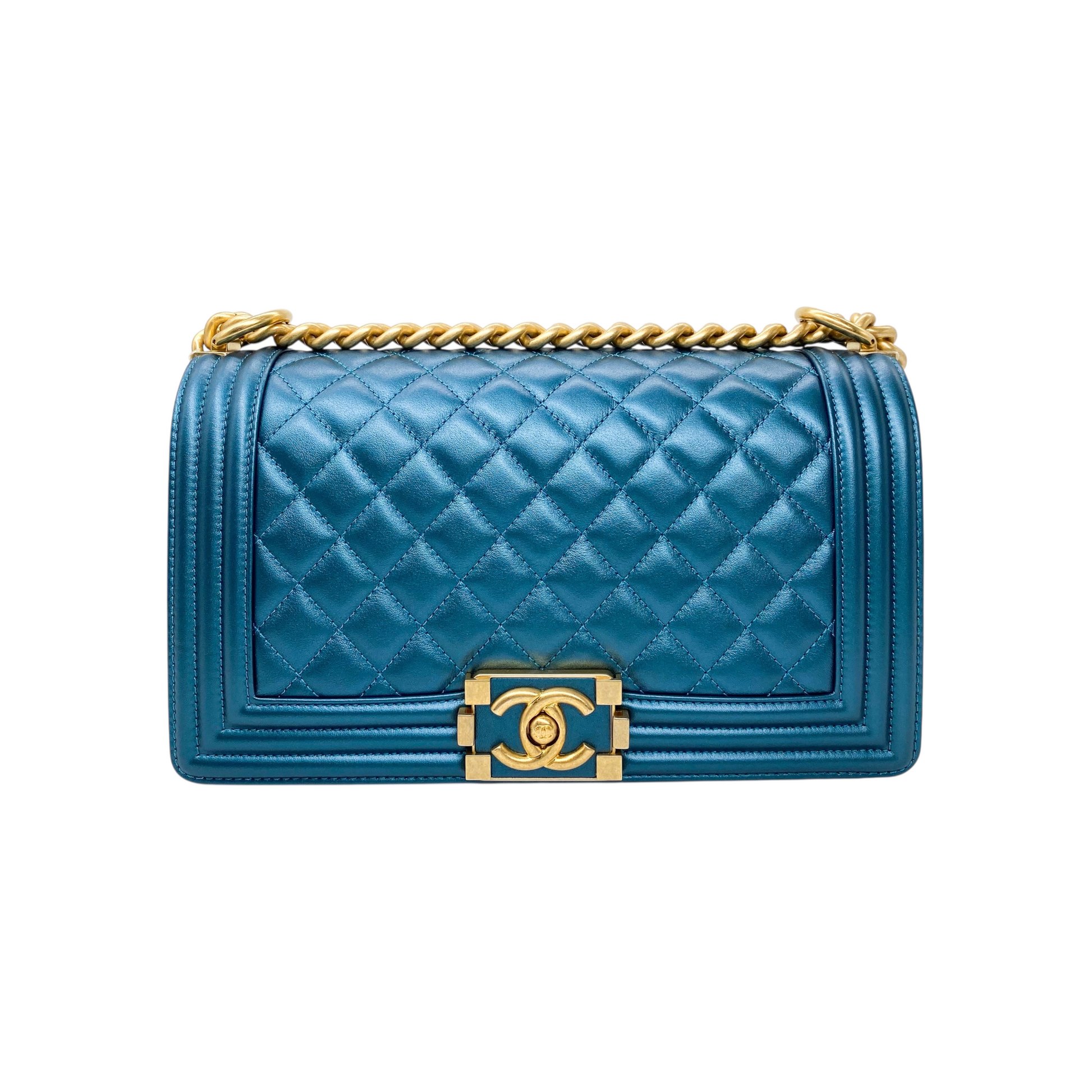 Chanel Metallic Blue Old Medium Boy Bag