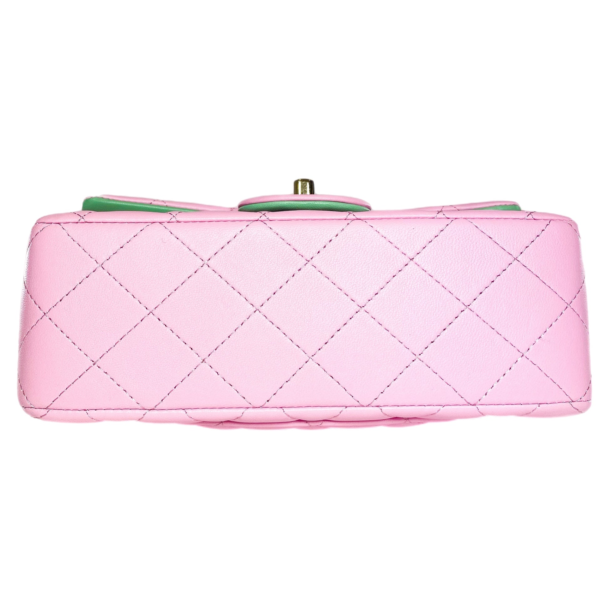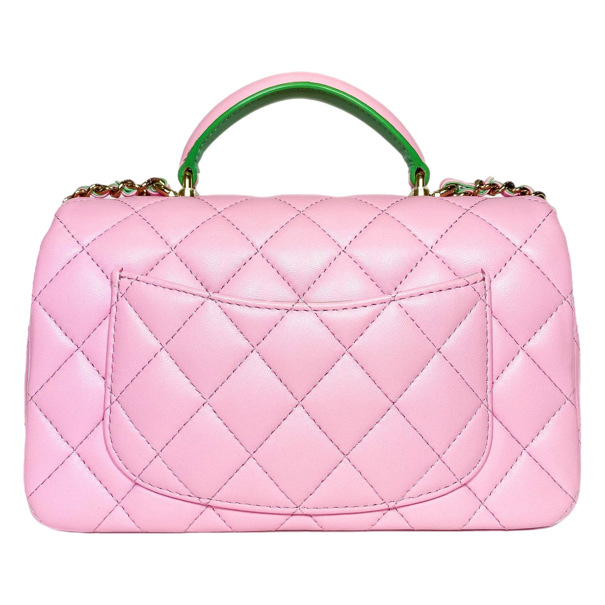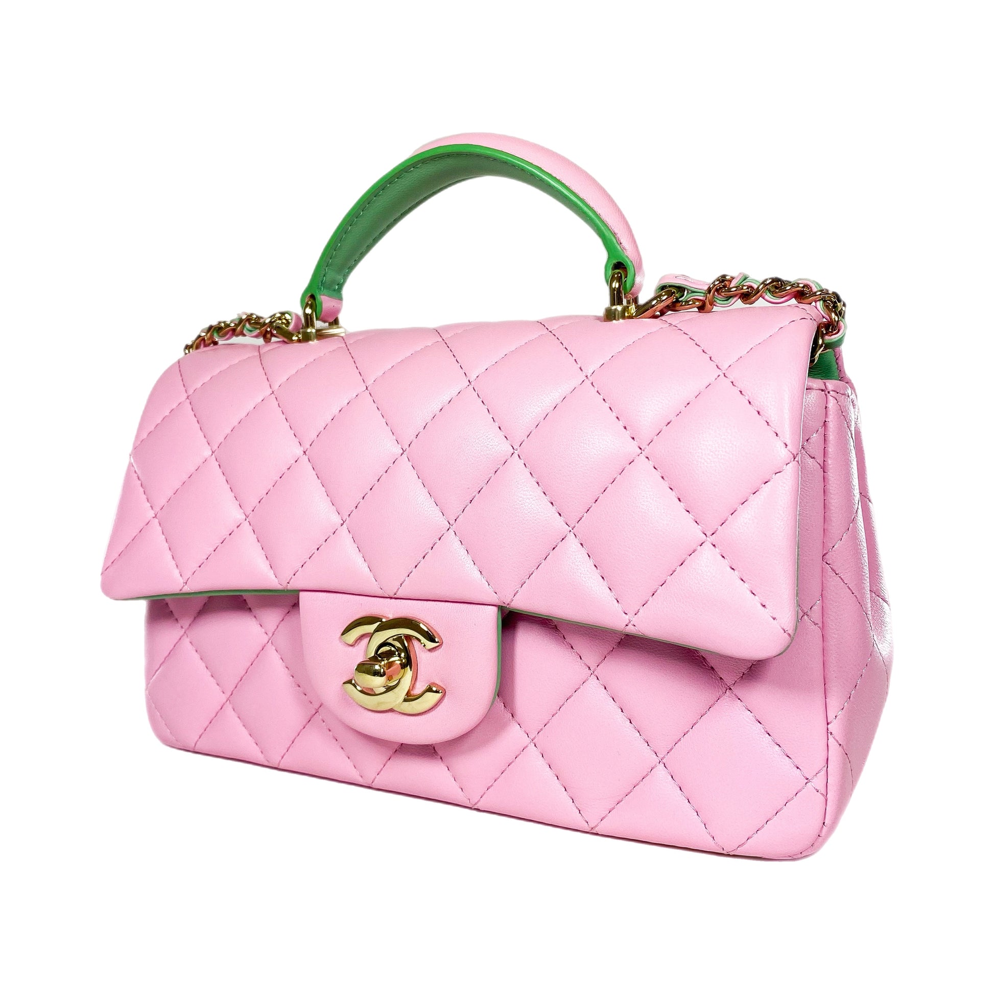 Chanel Pink Green Mini Top Handle Flap Bag