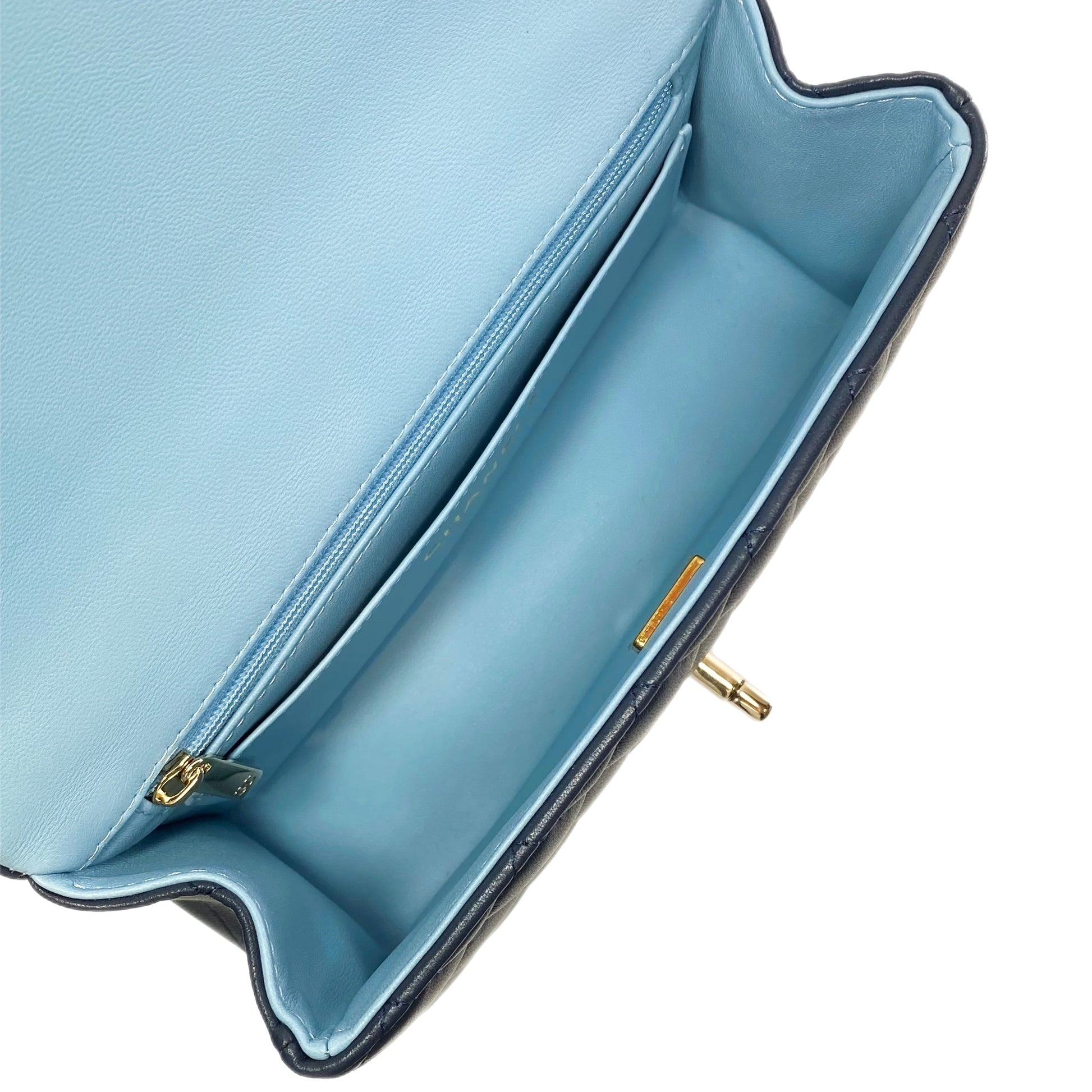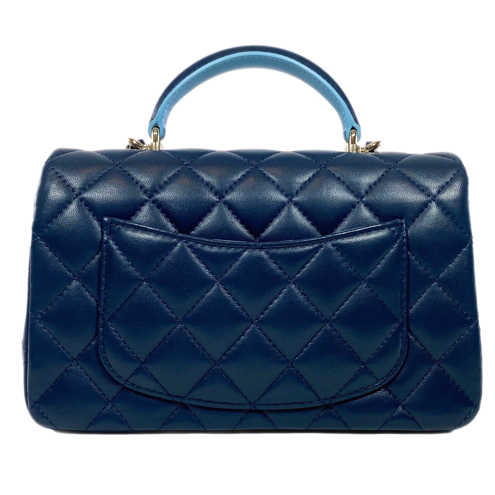 Chanel Quilted Lambskin Bi-Color Navy and Light Blue Mini Top Handle Rectangular Flap Bag