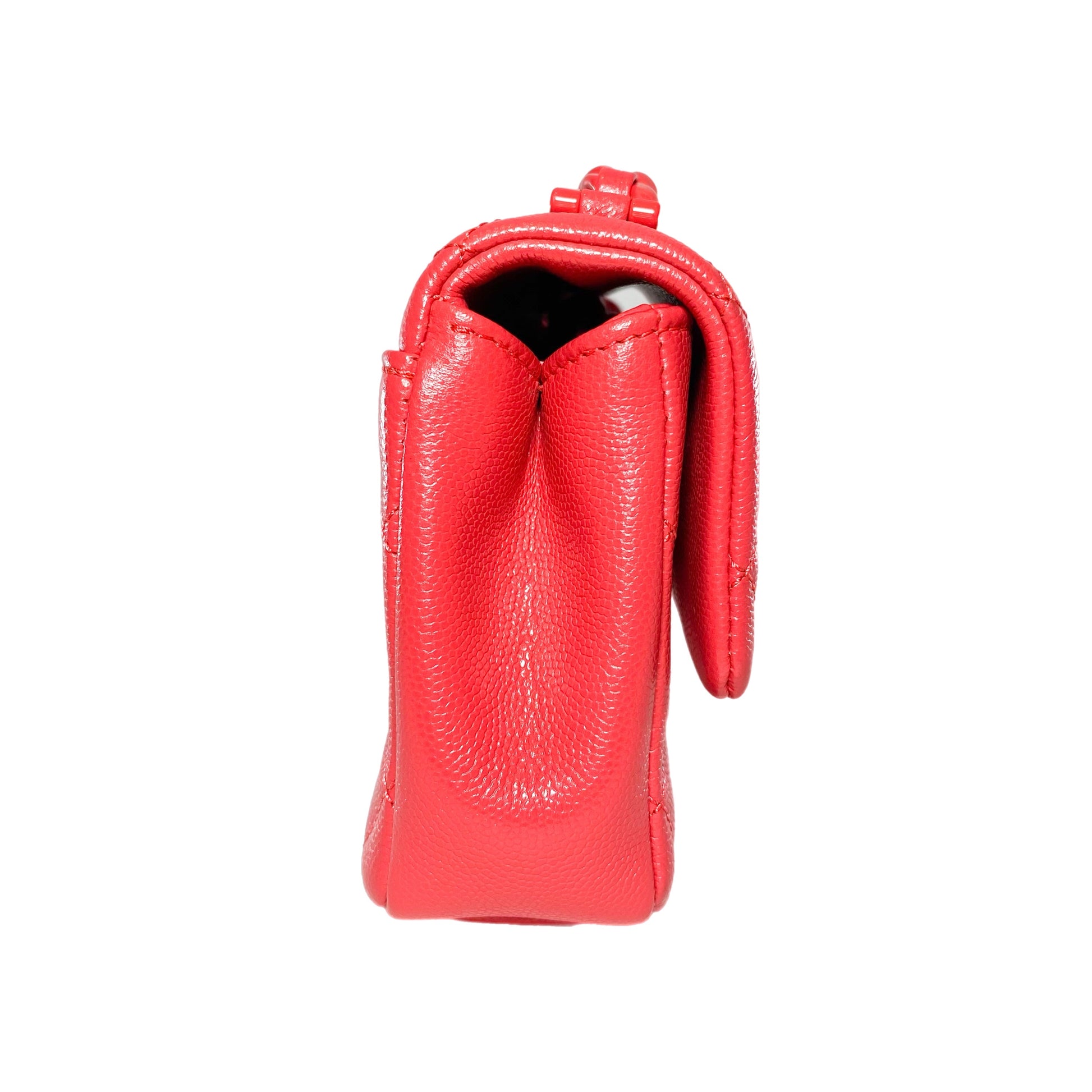 This is a Chanel Raspberry Small My Everything Flap Bag in caviar leather with pink hardware. This chic handbag features a 22-inch strap, a rear pocket, and a push lock closure. The front flap opens to a Raspberry fabric lined interior that features a zipper pocket. This is an amazing handbag for any occasion!