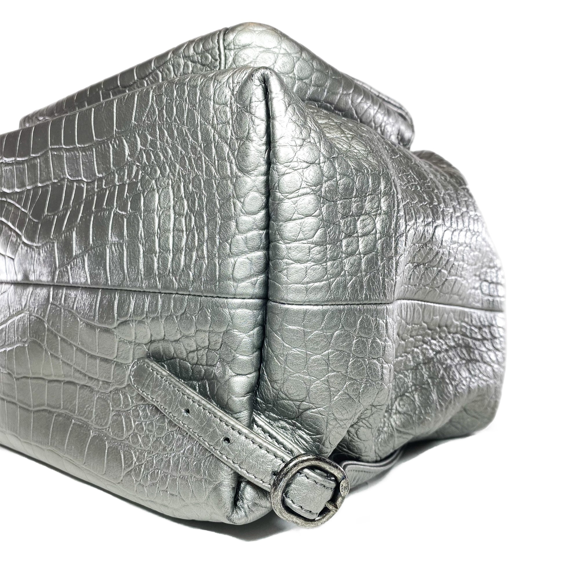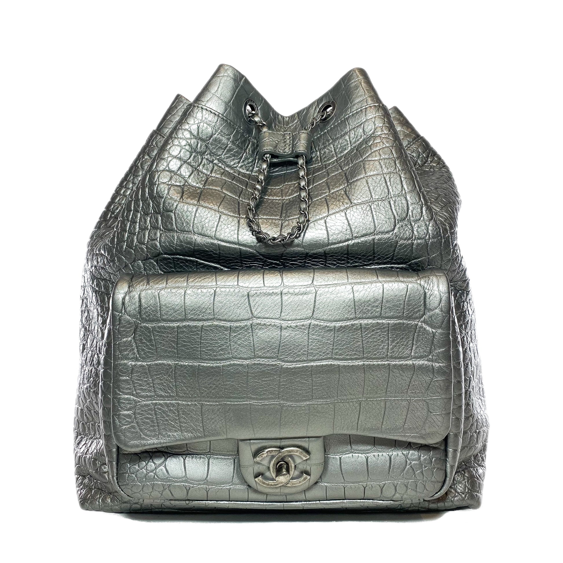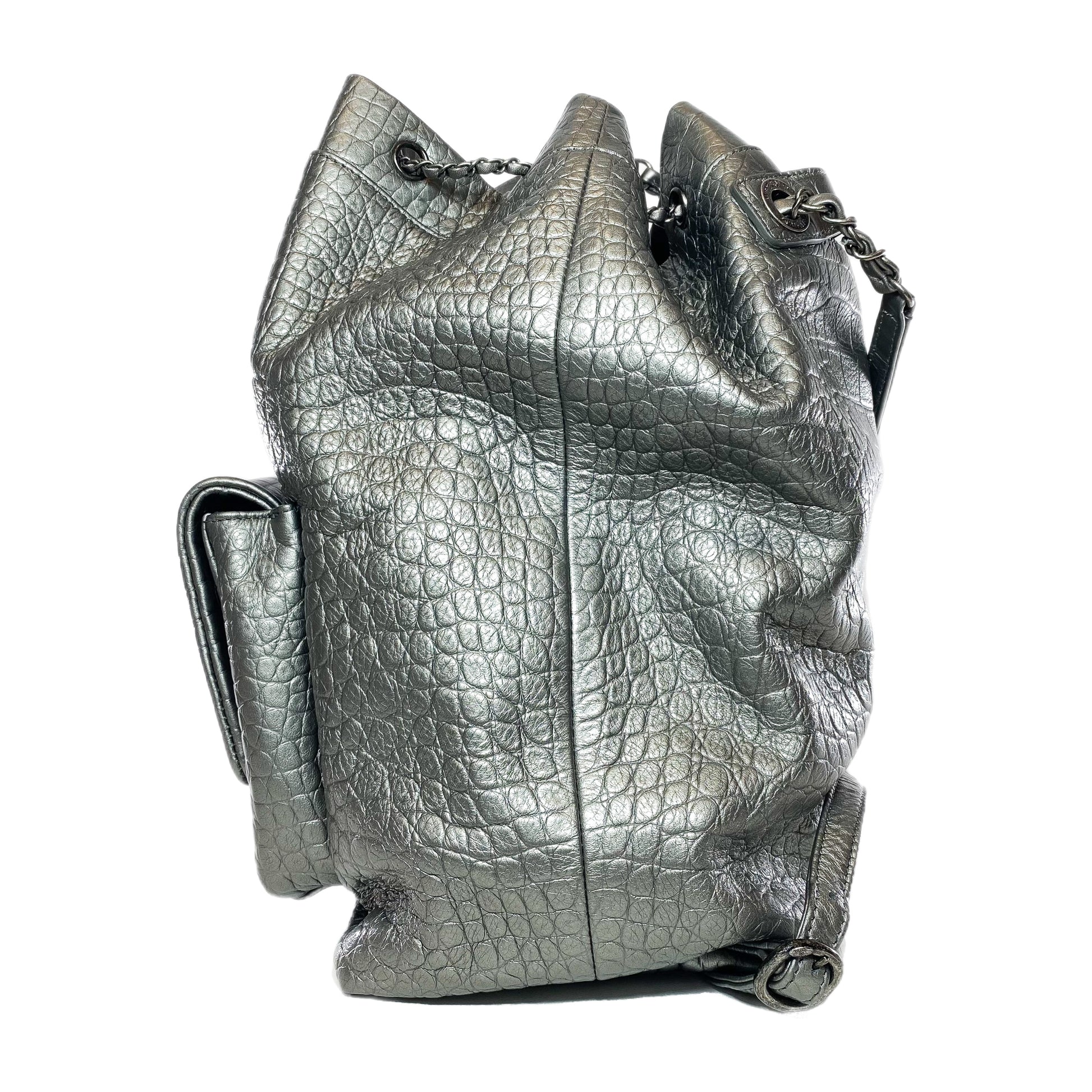 Chanel Silver Metallic Calfskin Crocodile Embossed Backpack
