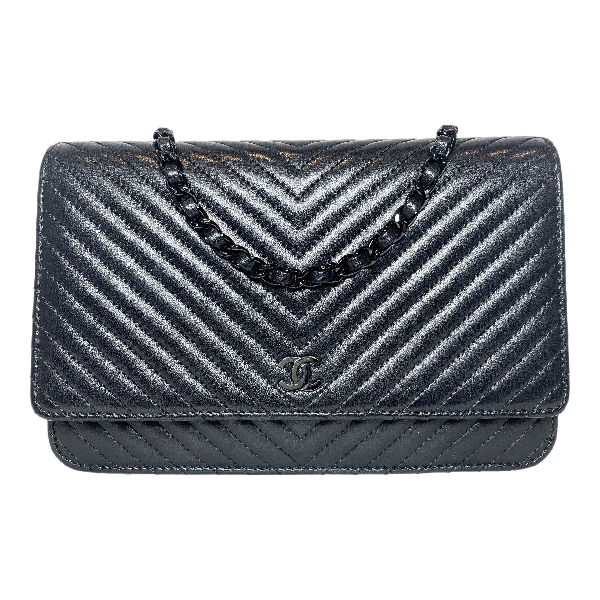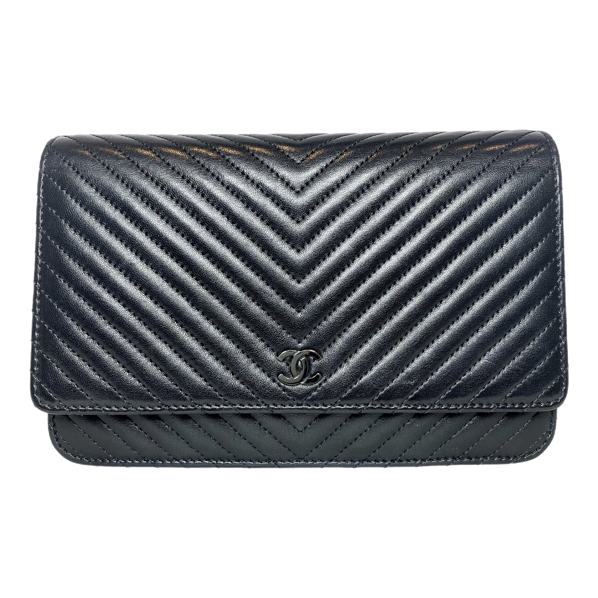 Chanel So Black Chevron Wallet on Chain